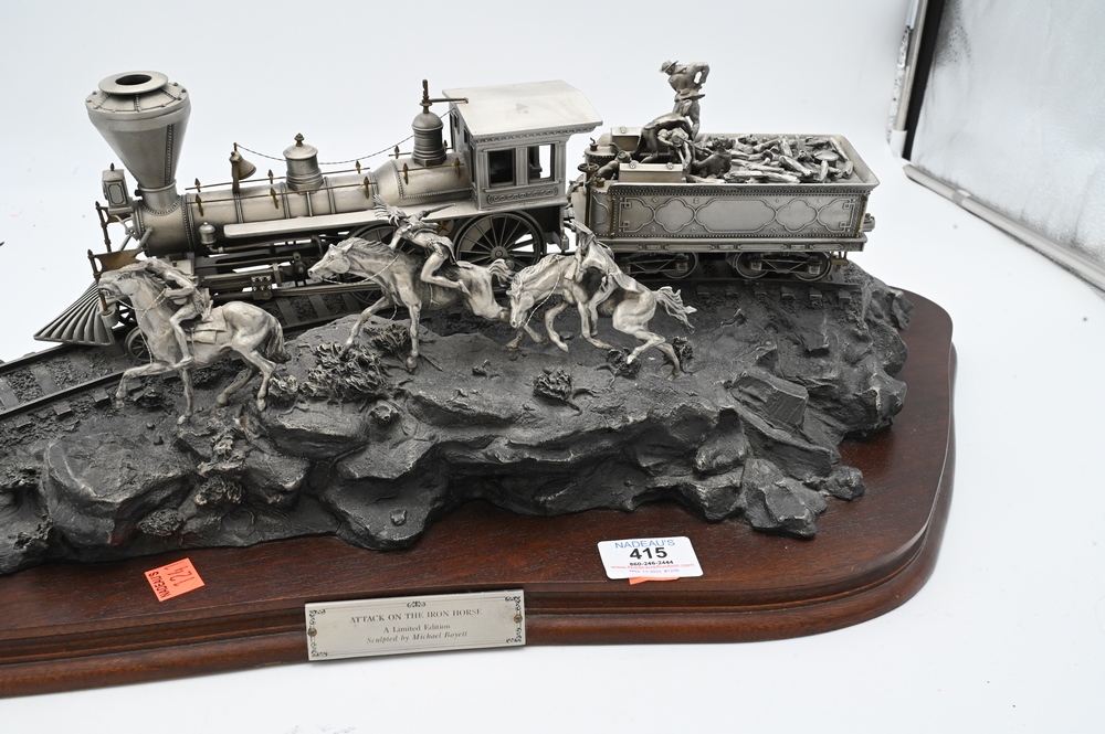 Michael Boyett Pewter Sculpture, Attack on the Iron Horse, limited edition sculpture, height 7 inches, length 25 1/2 inches. Provenance: Collections of Norma Reilly, New Jersey.
