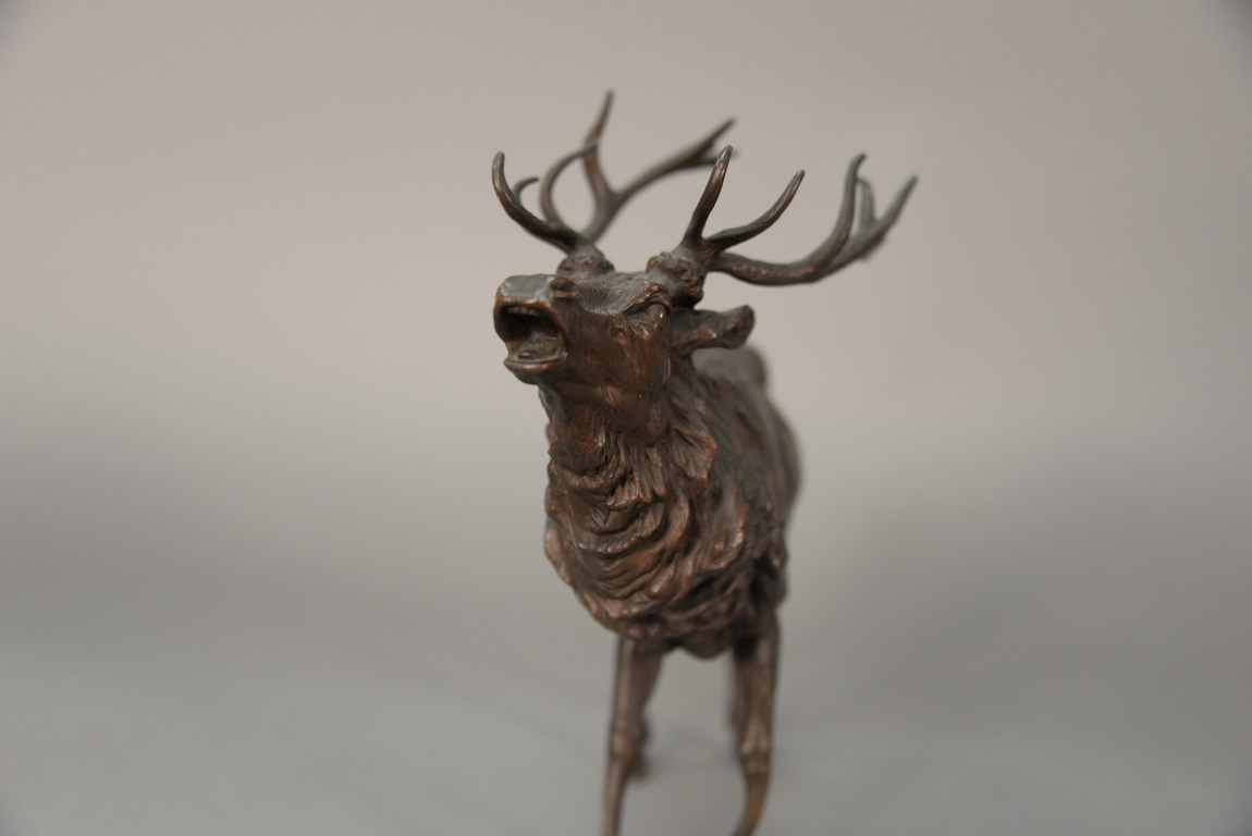 Lot 416: Austrian bronze bull elk signed Geschutzt 1 front leg slightly bent ht. 10 in. lg. 11 1/2 in.