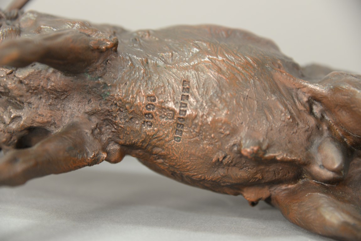 Austrian bronze bull elk signed Geschutzt 1 front leg slightly bent ht. 10 in. lg. 11 1/2 in.