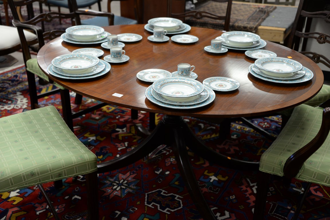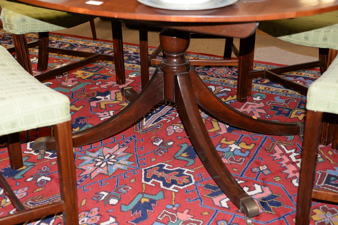 Lot 416: Baker cherry single pedestal oval dining table with three 14 inch leaves. ht. 28 in. closed: 46 x 54 open: 46 x 96