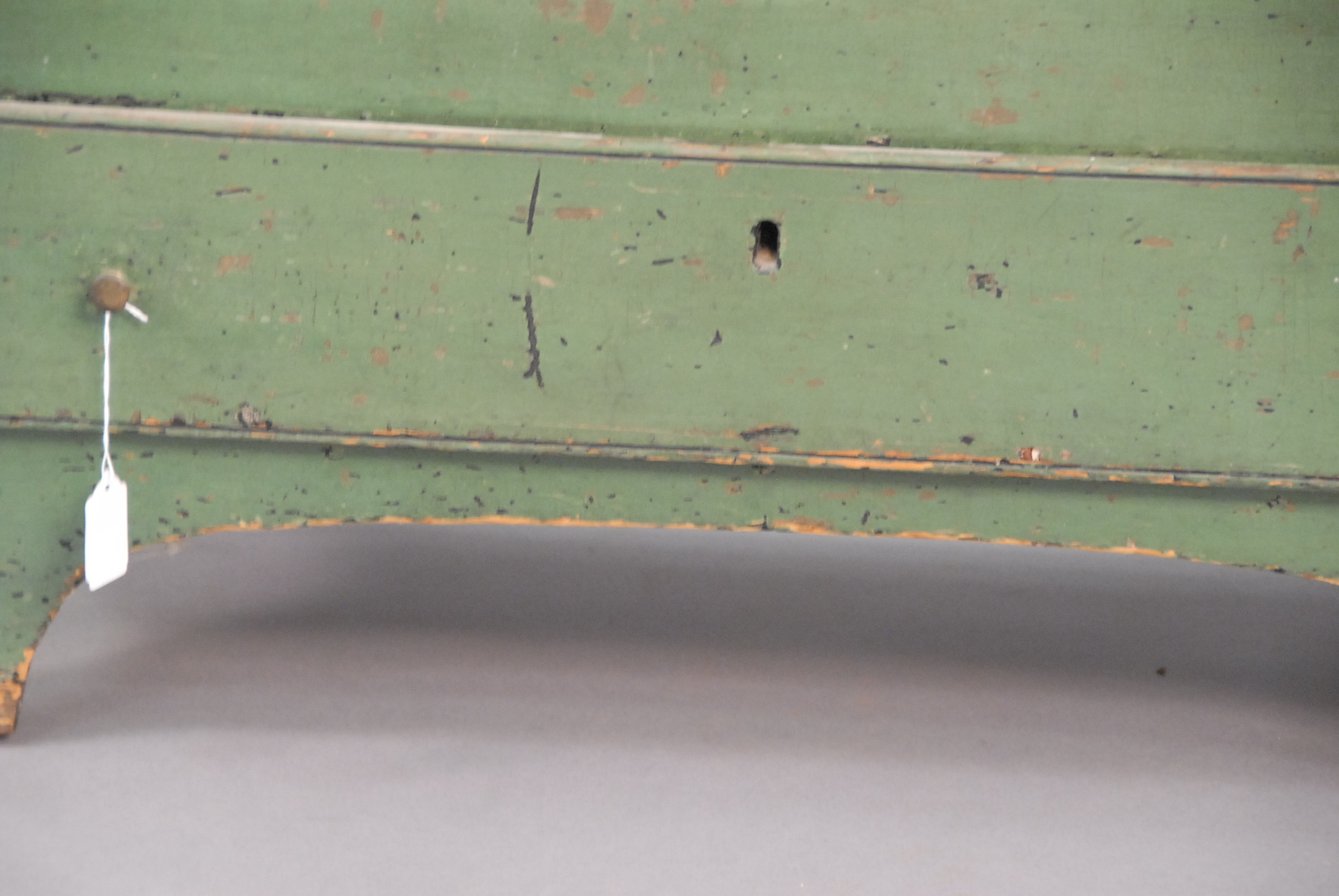 Diminutive blanket chest with lift top and one drawer on bracket base in old green paint.