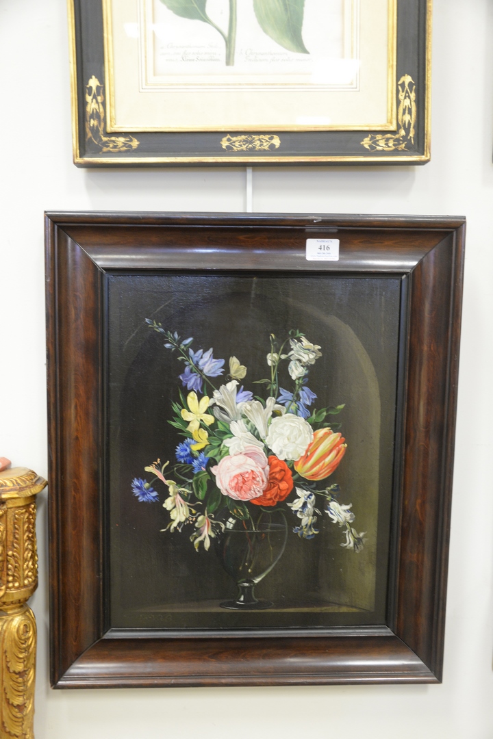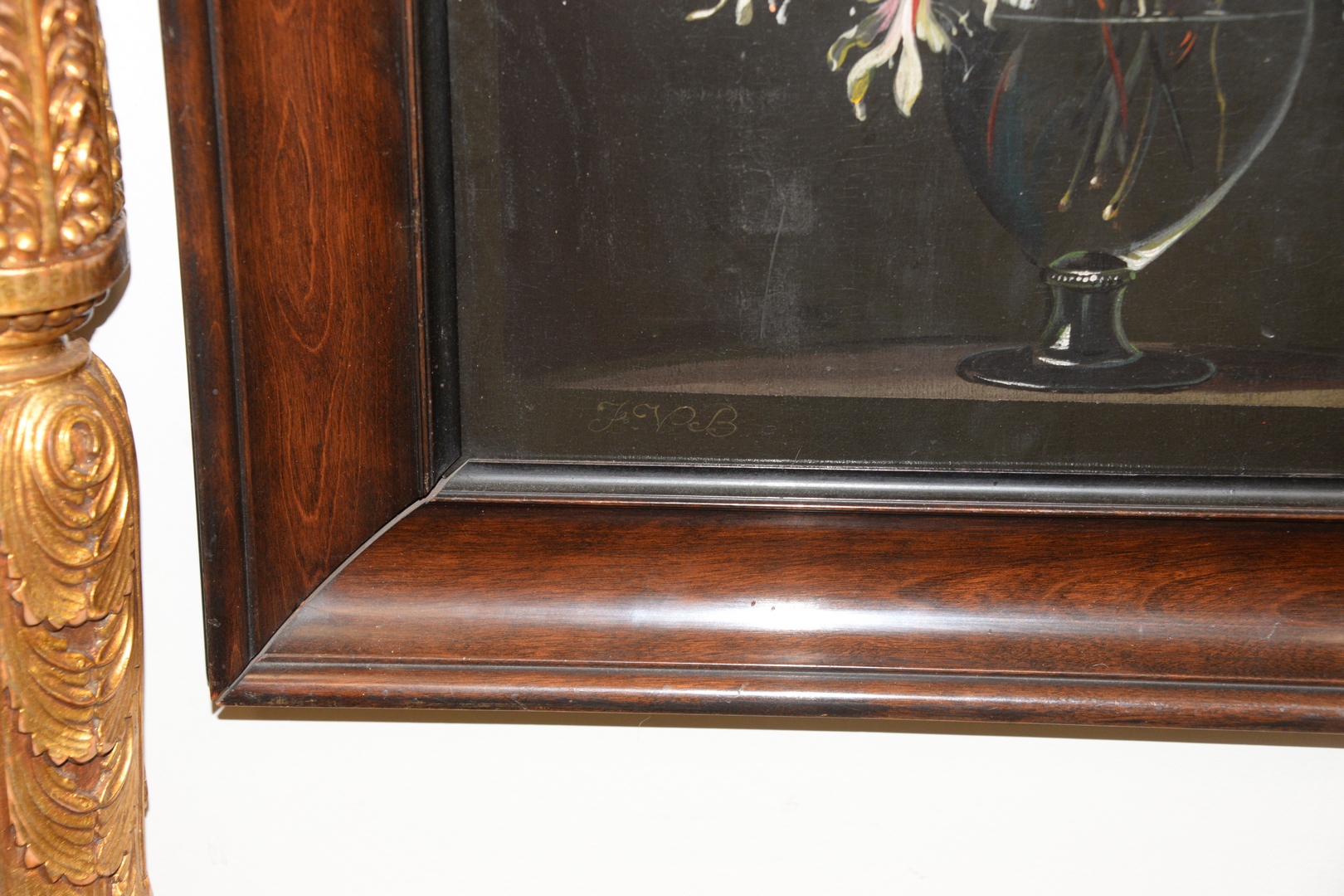 Lot 416: Frederick Victor Bailey 1919 – 1997, oil on board, still life vase of flowers, initialed lower left ‘FVB’, in wood frame, 17 x 13…