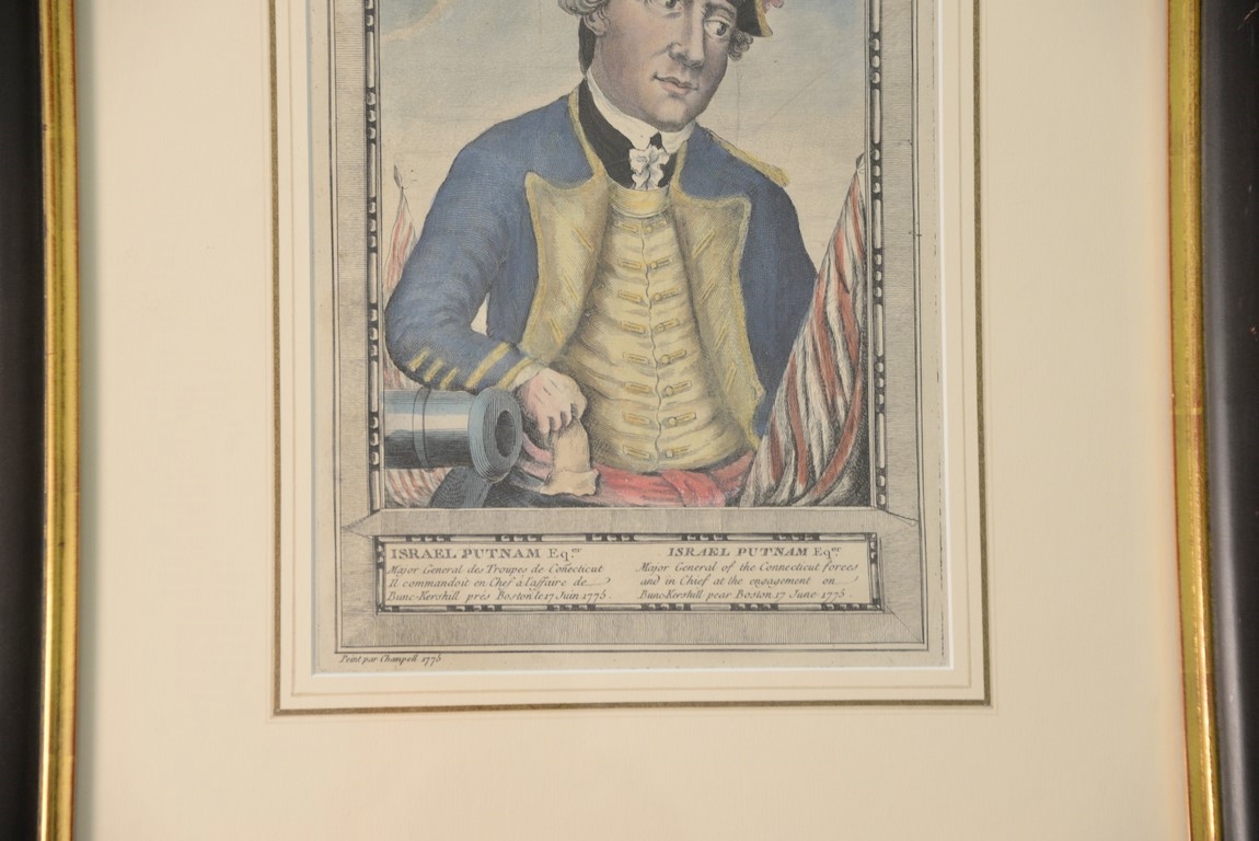 Lot 416: Pair of hand colored copper engravings Israel Putnam Major General of the Connecticut Forces and Chief at the Engagement of Bunc-…