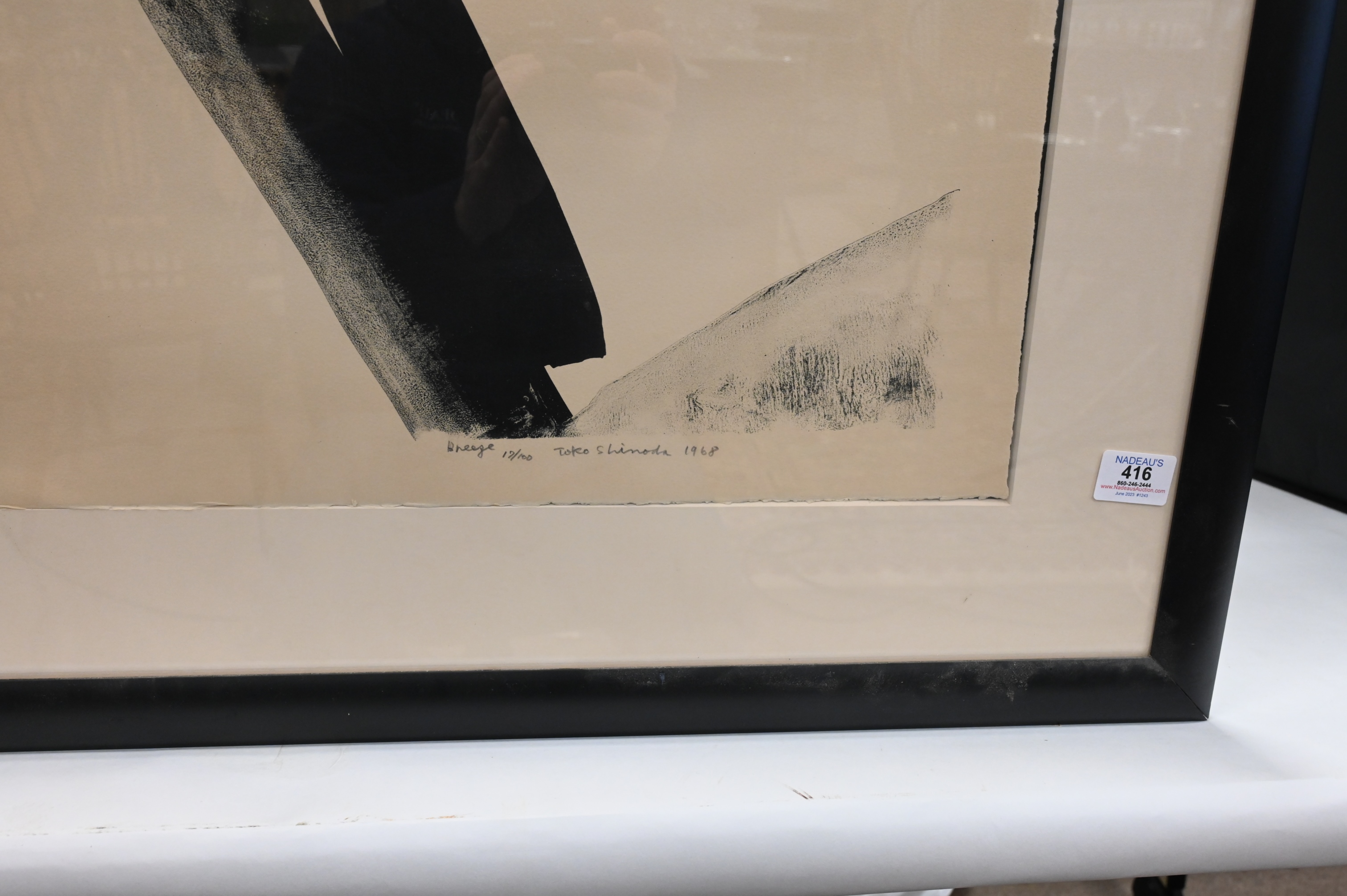 Toko Shinoda (Japanese 1931-2021) geometric abstraction artist “Breeze” lithograph edition 17/100 signed “Toko Shinoda 1968″ in lower margin 22 1/4″ x 18”
