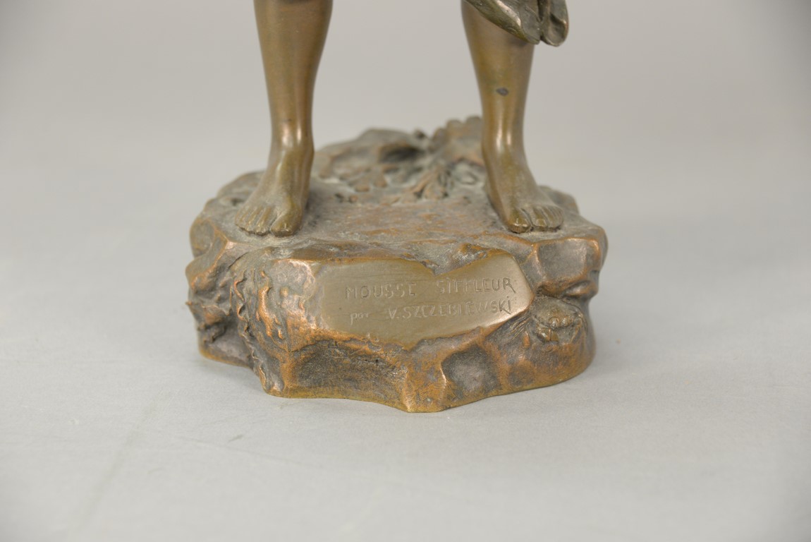 After Victor Szczeblewski bronze figure of Mousse Siffleur with foundry mark on bottom right side Bronze Garanti Au titre Deposee. ht. 17 1/2 in.