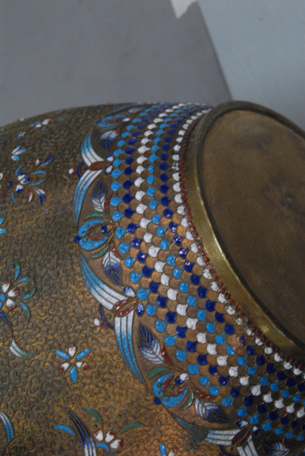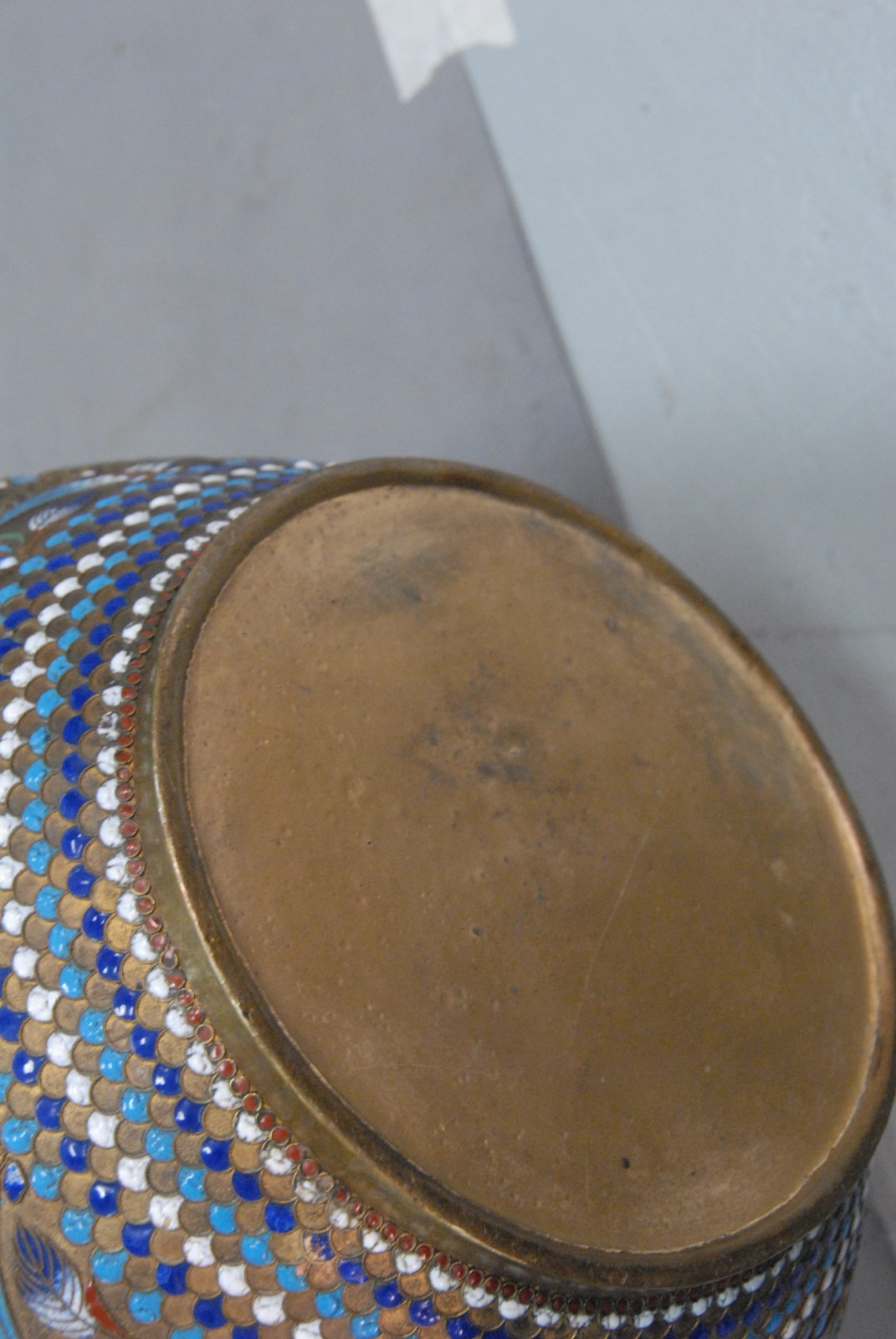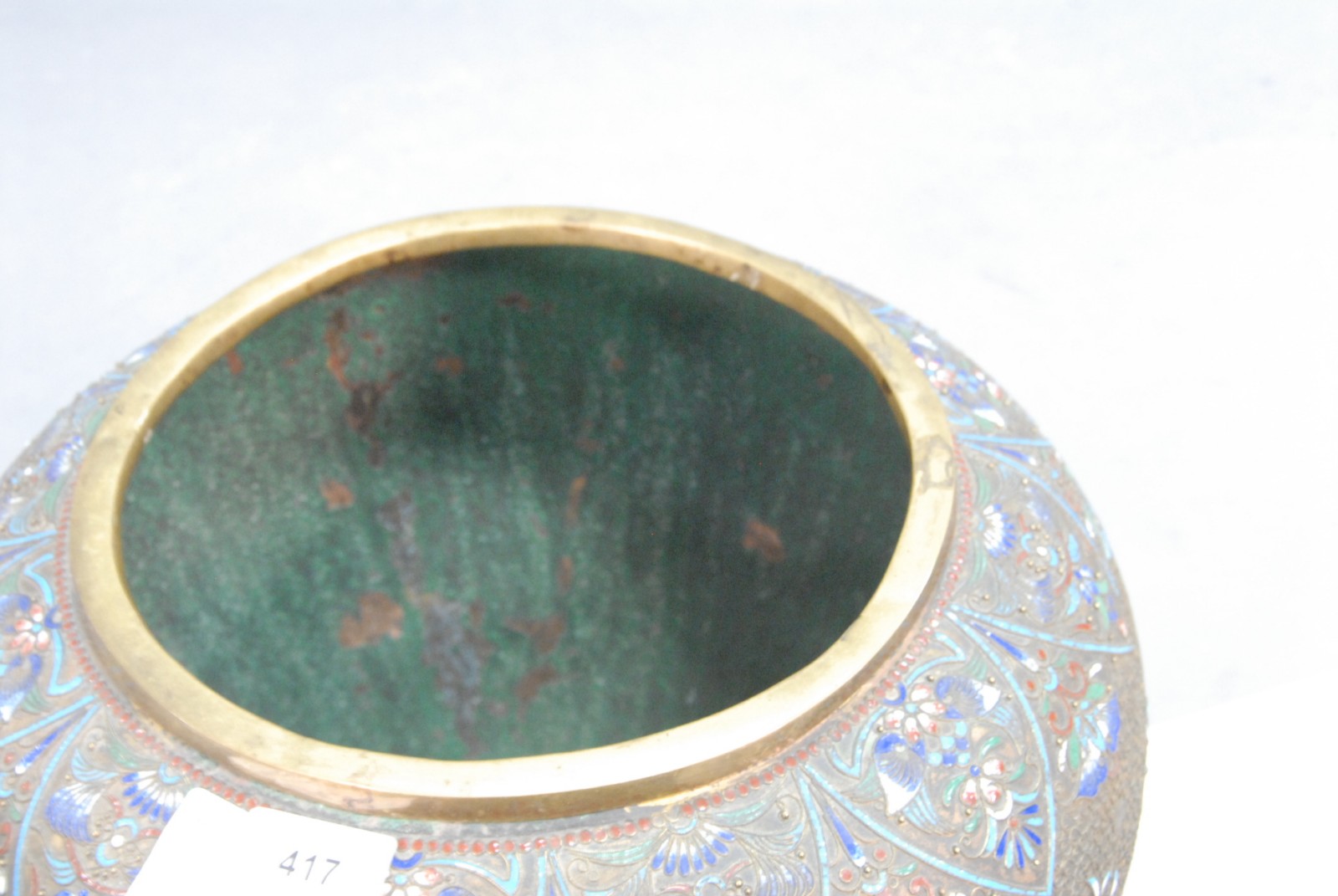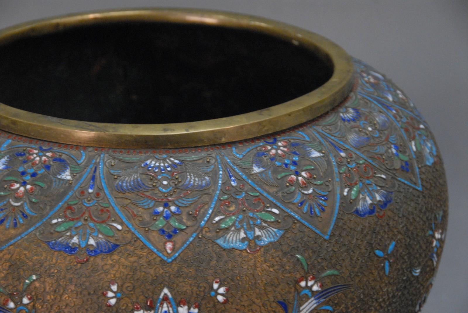 Brass and enameled vase, probably 19th century.