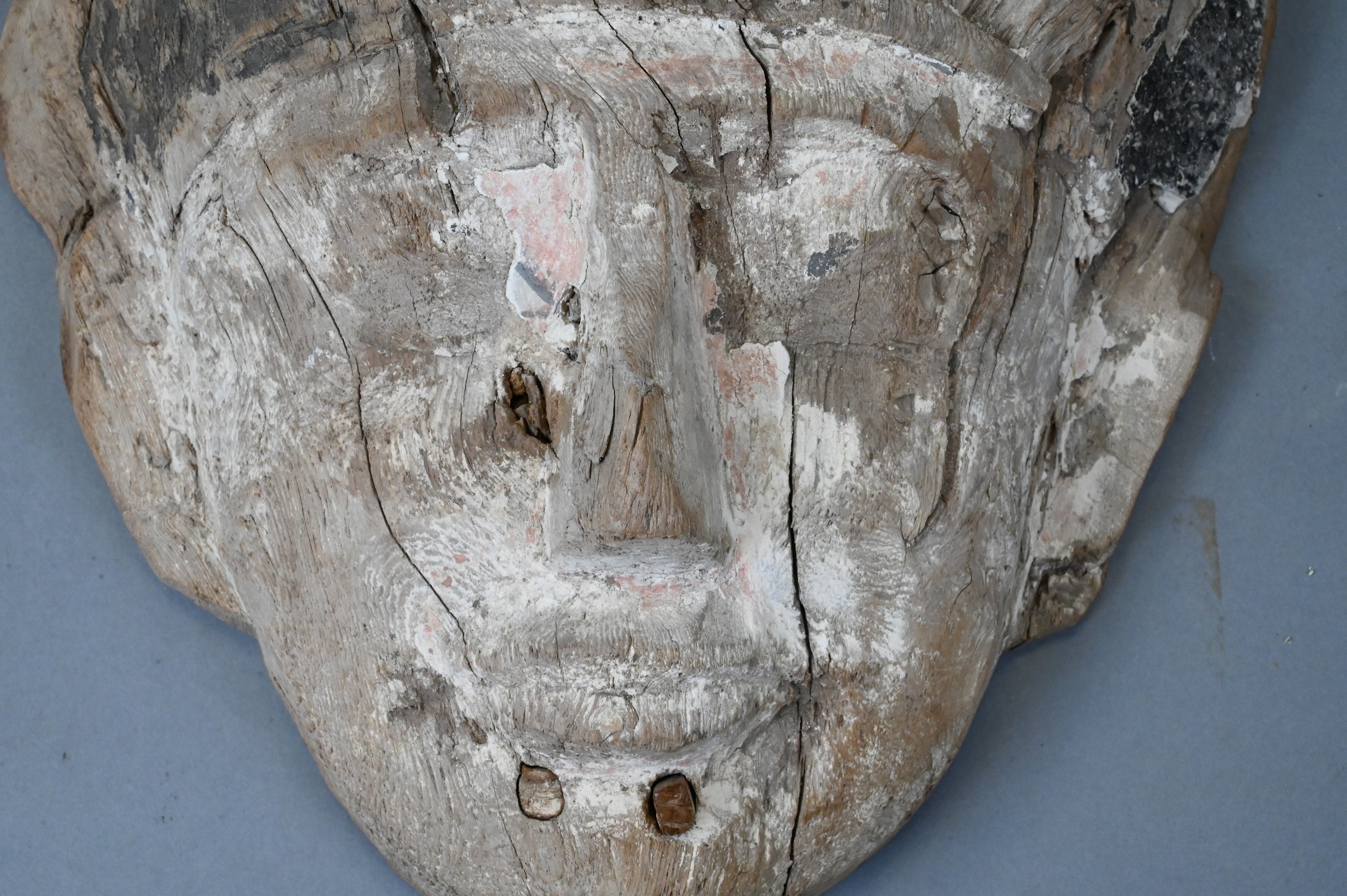 Lot 417: Egyptian Wood Mummy Mask (Late Period circa 712-30 B.C.)
