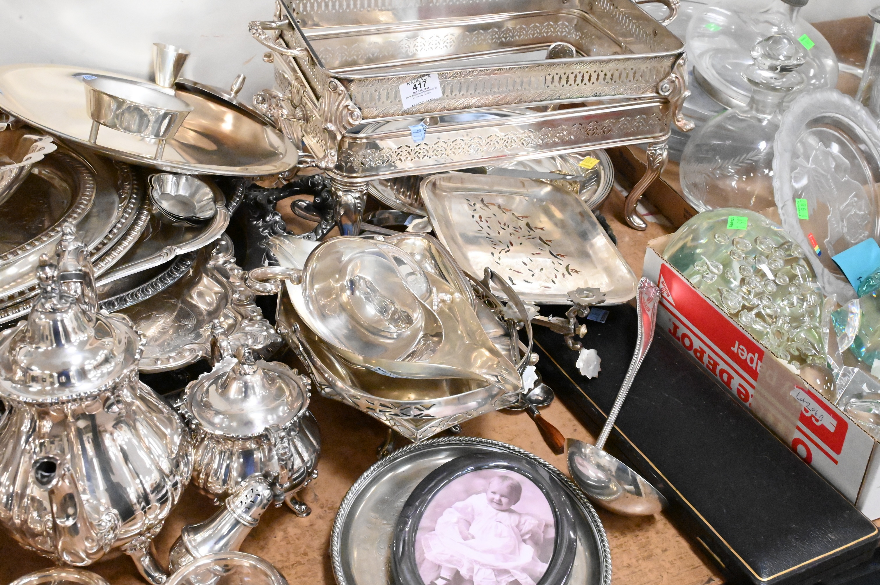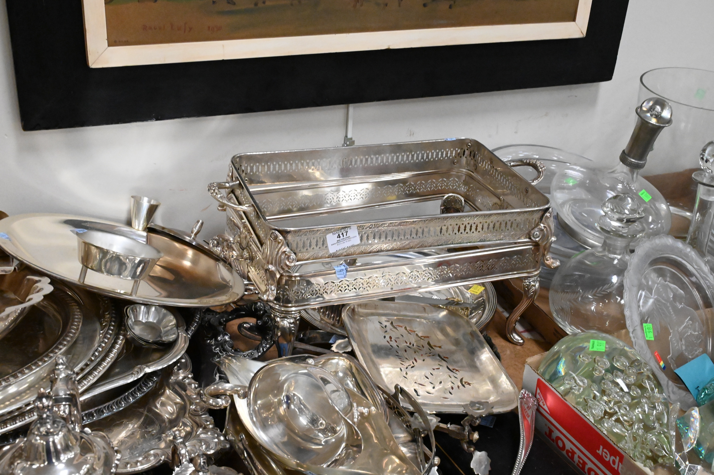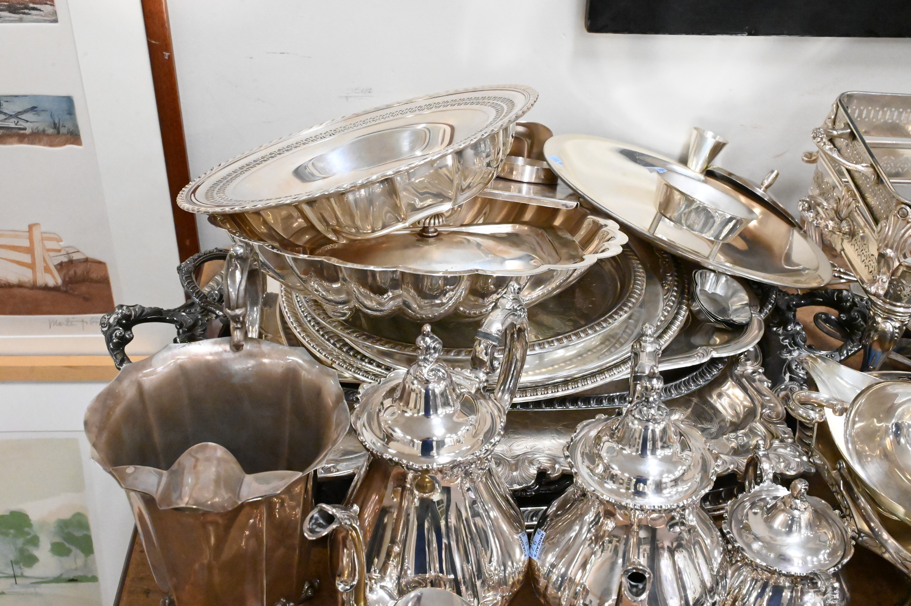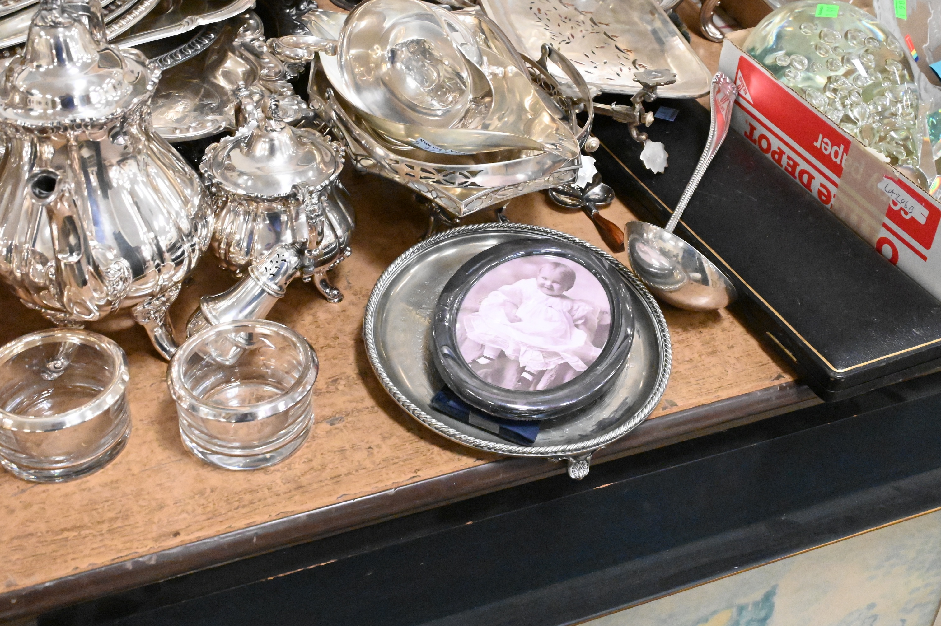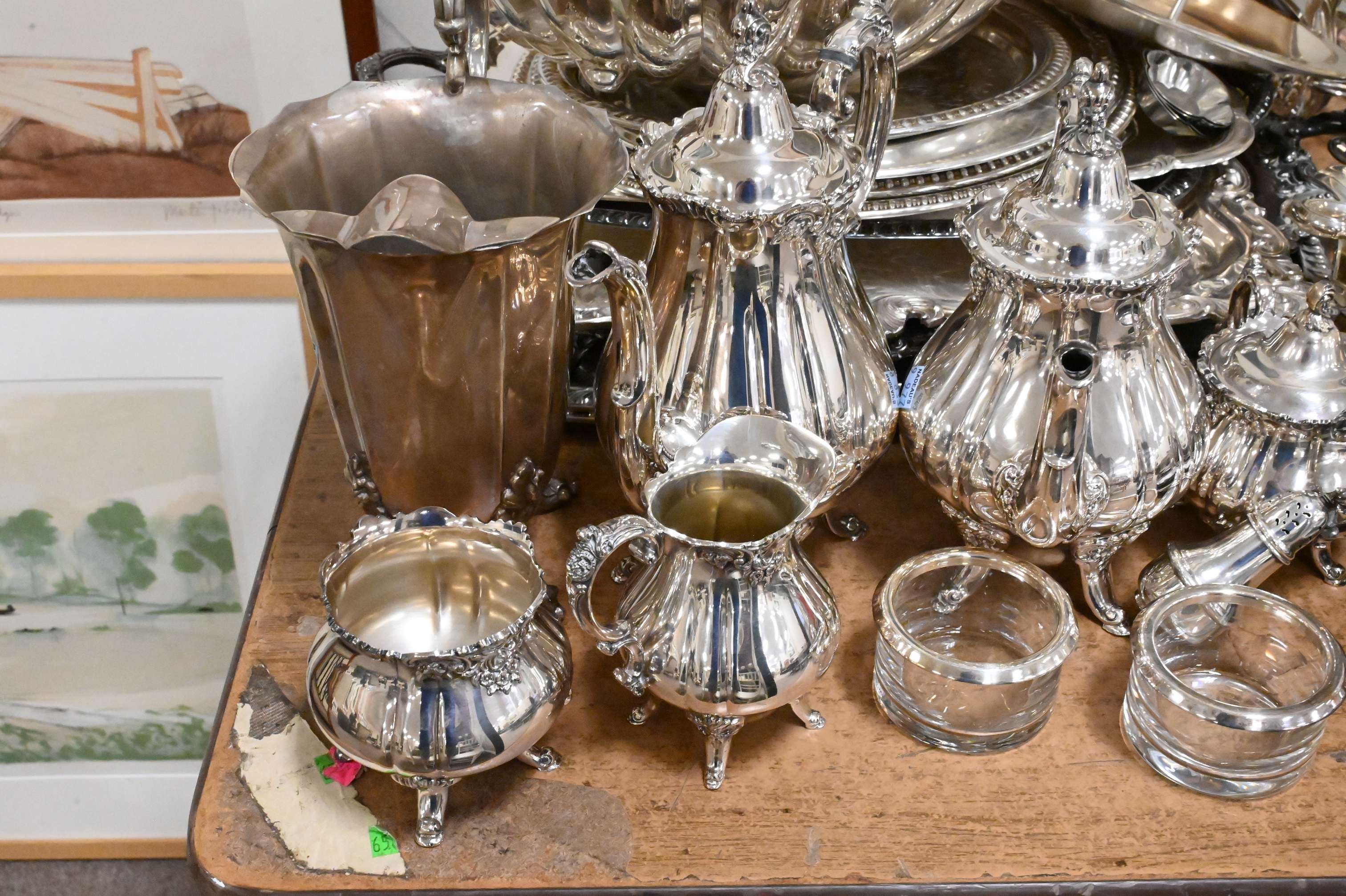 with large trays round and rectangle, tea and coffee set, basket, plates, etc.