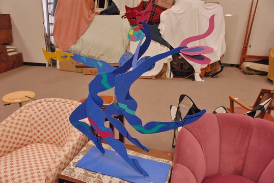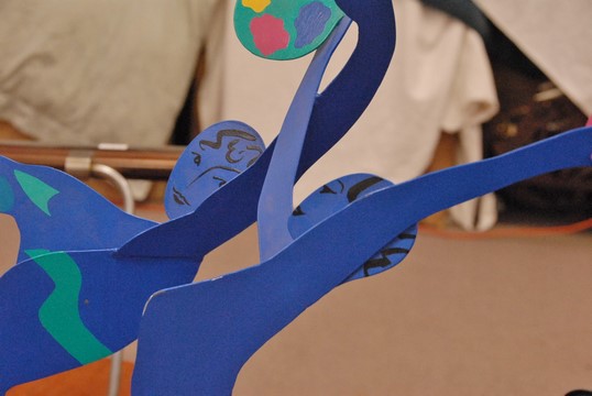Metal sculpture of two women signed Terry Lenox 1991, ht. 39 in.