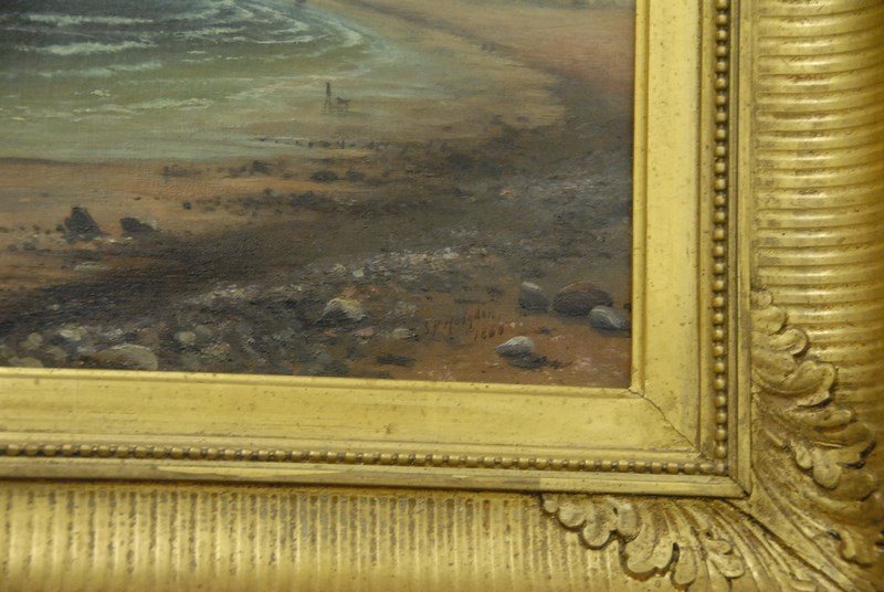 Sylvester Phelps Hodgdon 1830-1906 LONG BEACH COHASSET FROM NATURE oil on canvas signed lower right S.P. Hodgdon 1830-1906 16 x 40
