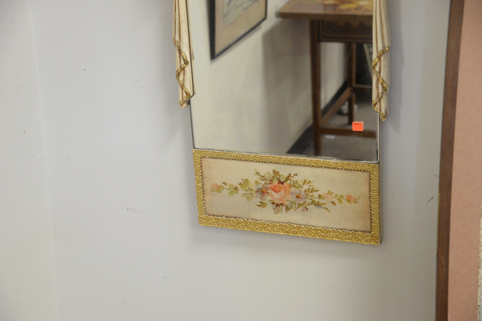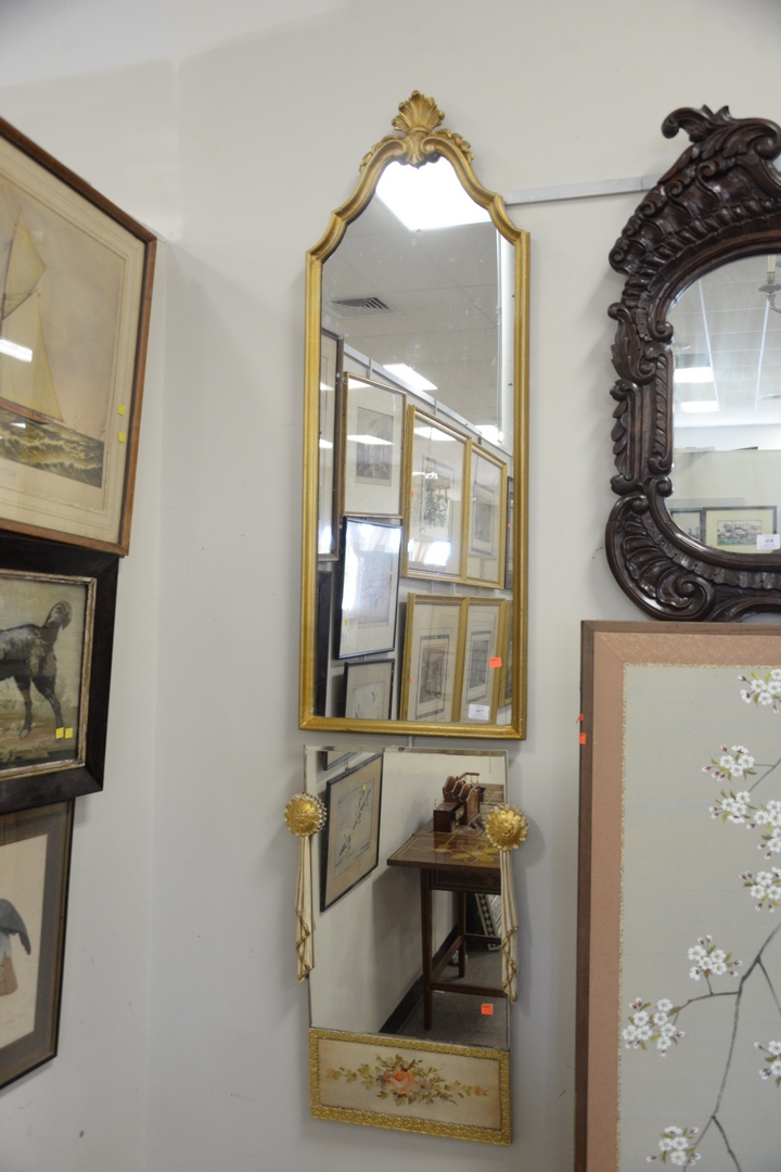 Lot 417: Three Piece Group, to include two carved detail mirrors, along with one Japanese painted silk screen, height 64 1/2 inches, width 72…