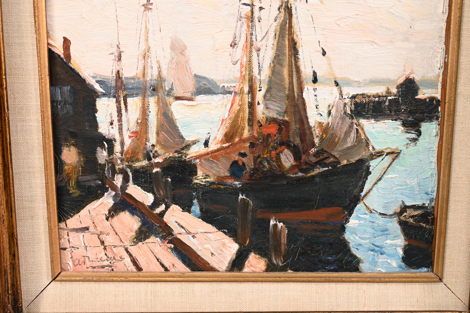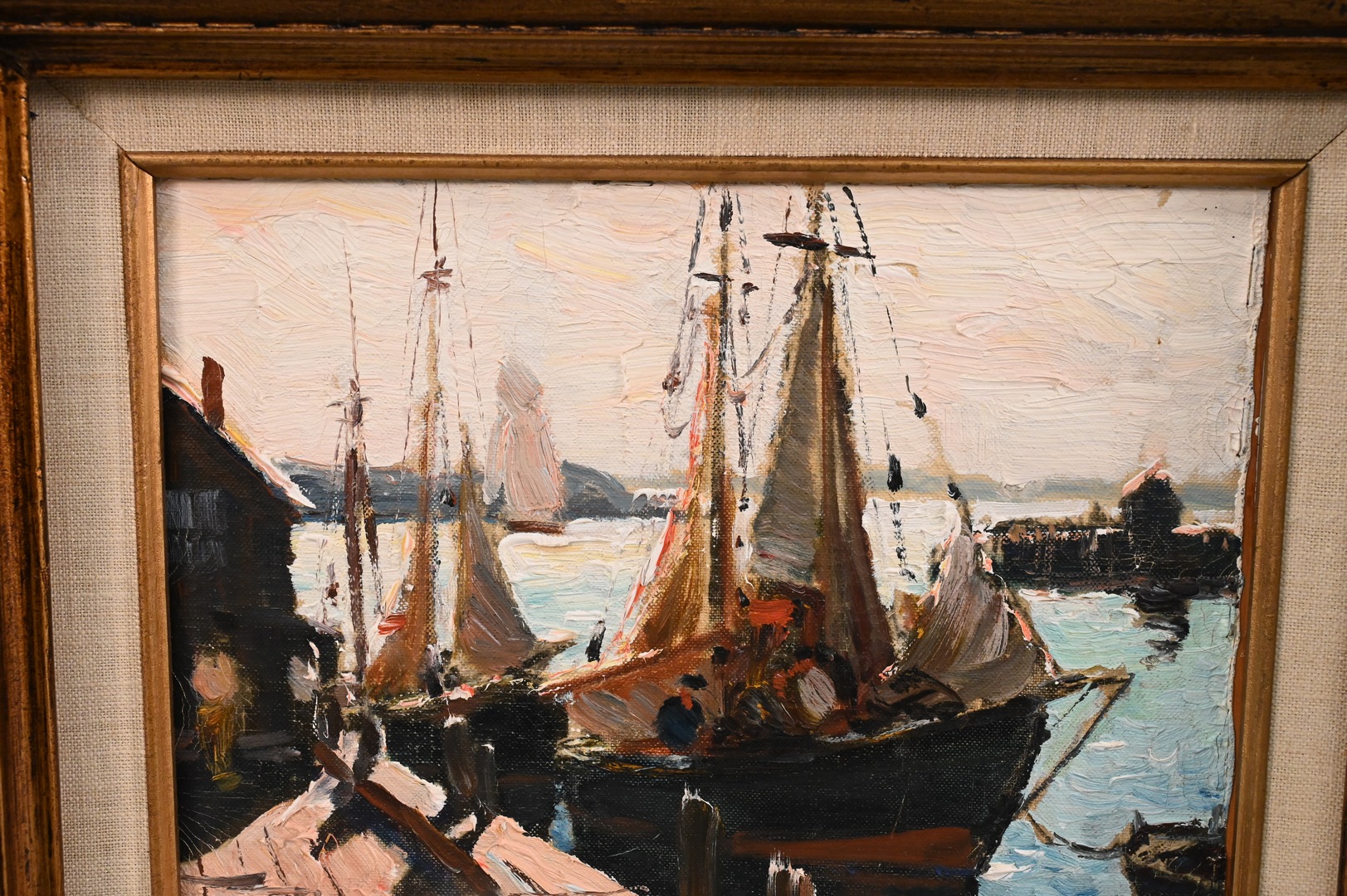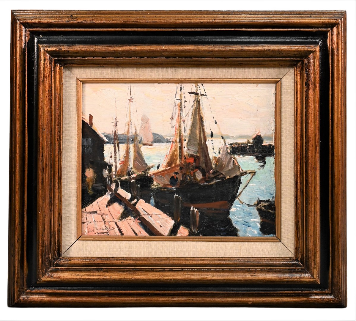 Anthony Thieme (1888-1954) “Morning Light, Rockport” oil on canvas titled on back, signed lower left A. Thieme 8″ x 10″ Condition: Good condition, with minor craquelure. Good under black light