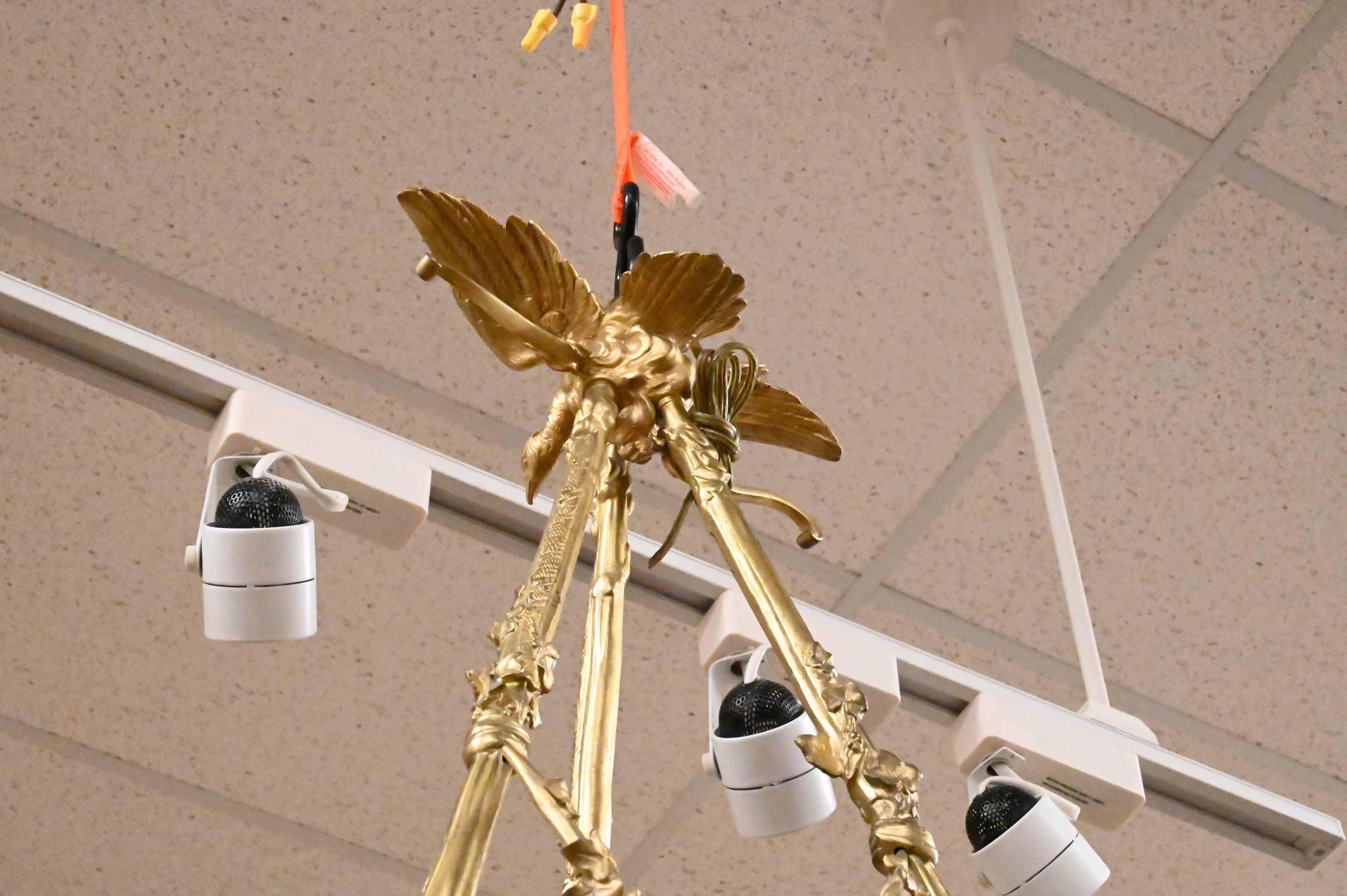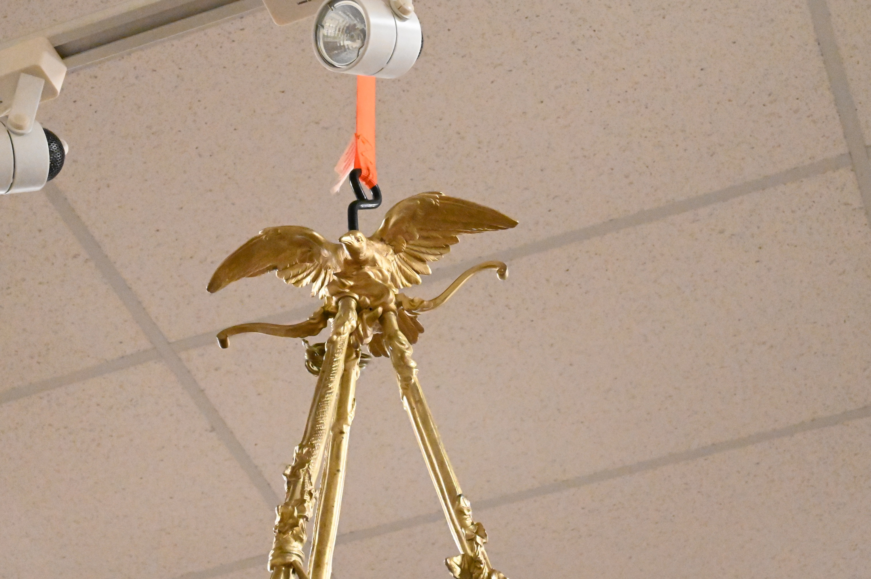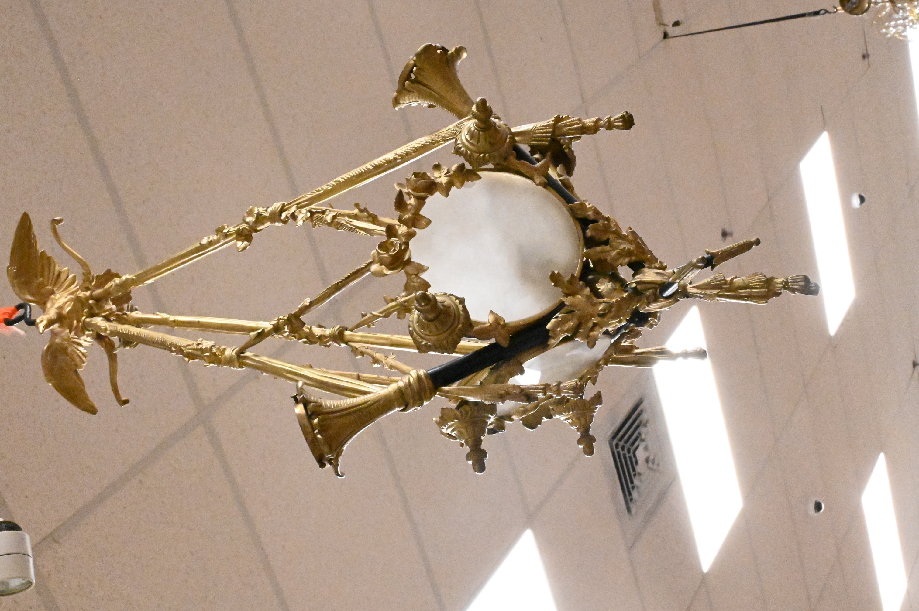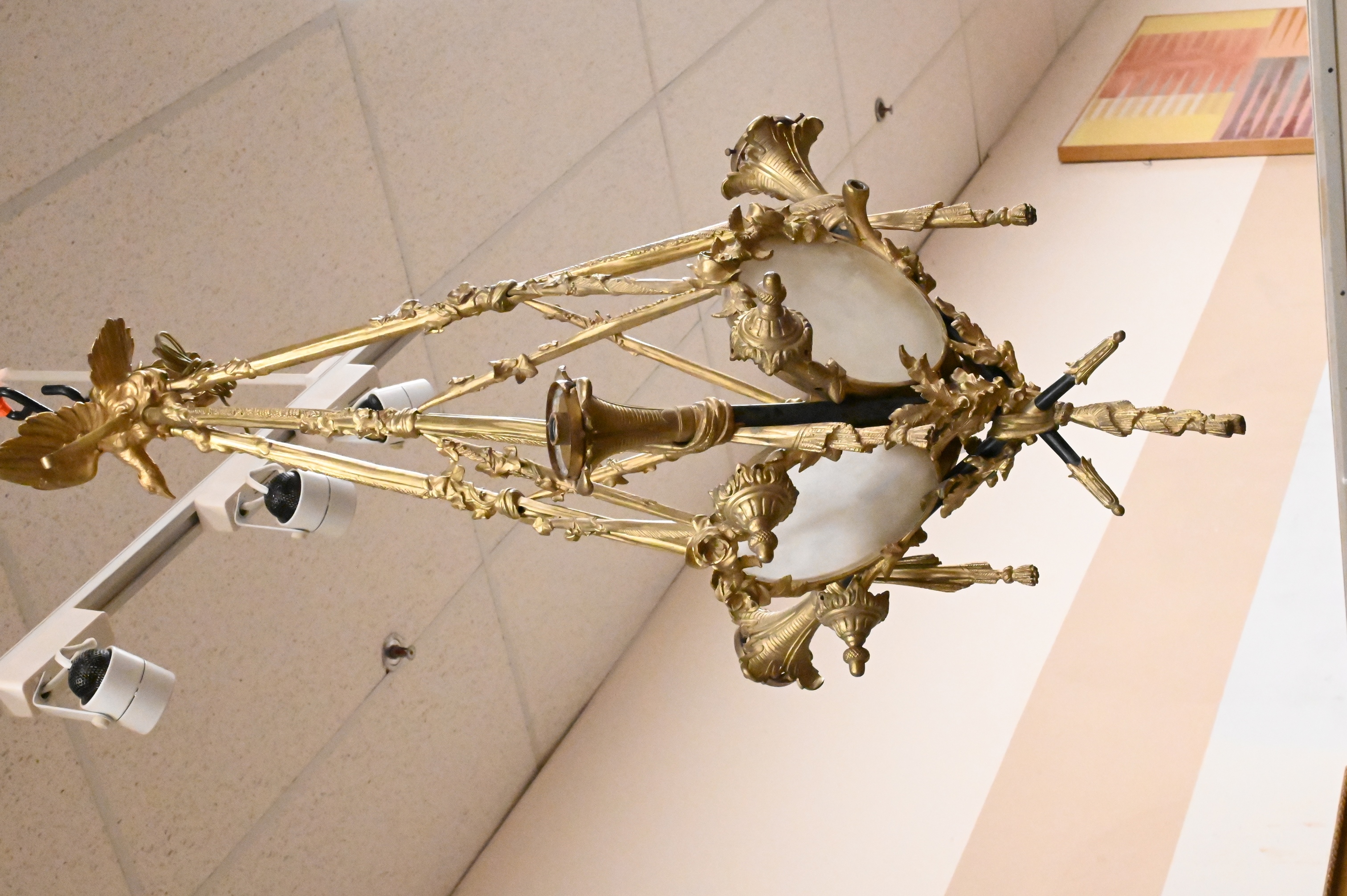 Condition: presents well, minor chipping to inside border of glass, two holes at bottom of light, possibly missing elements, no prisms present, rod out of joint and cap broken off but present