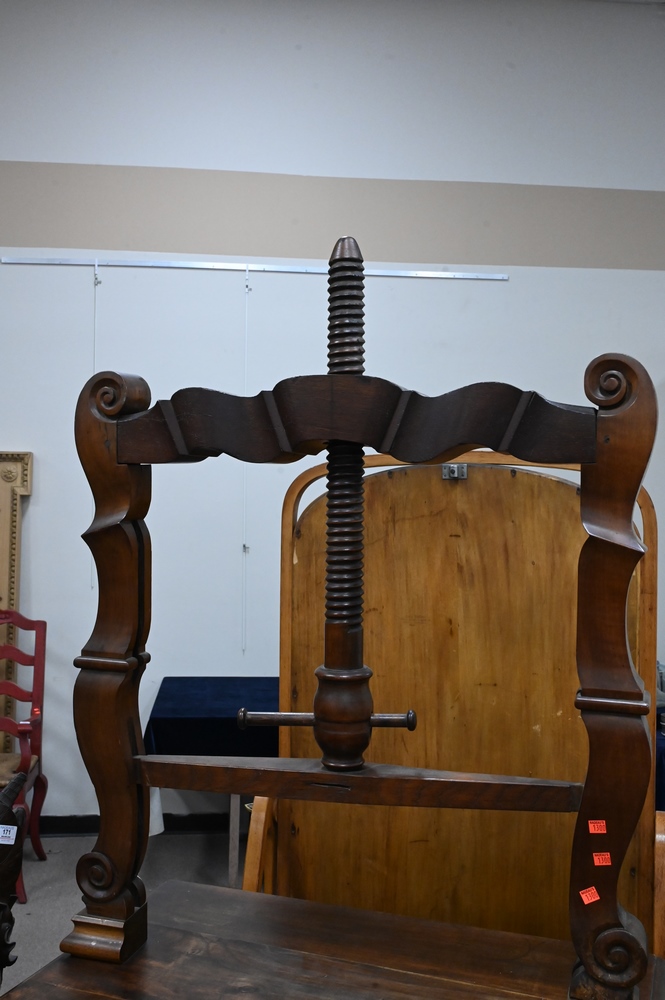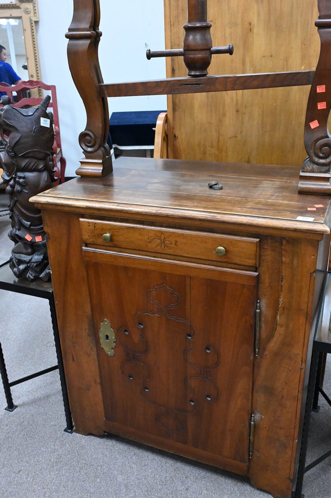 Continental Bookpress/Cabinet, having door and drawer, height 76 inches, width 34 inches.