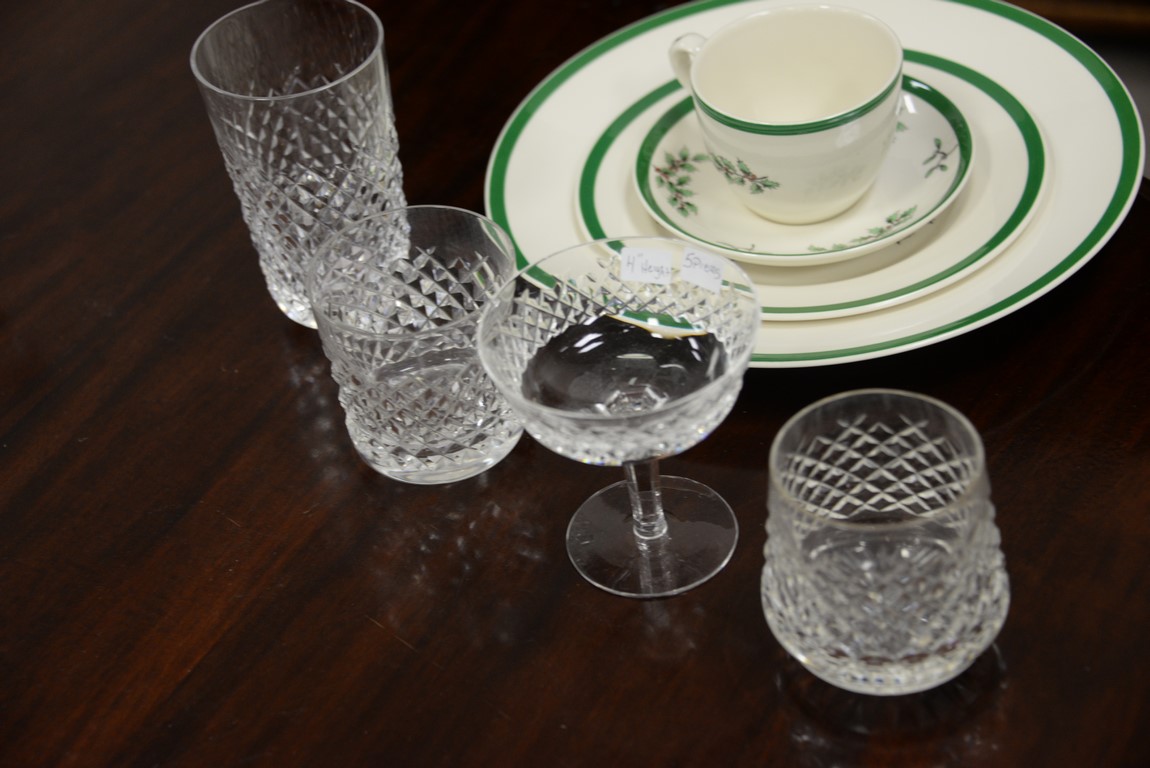 Lot 418: Four sets of five Waterford Alana pattern glasses, Roly Poly, Old Fashion set, tumblers, and sherbets or Champagne.