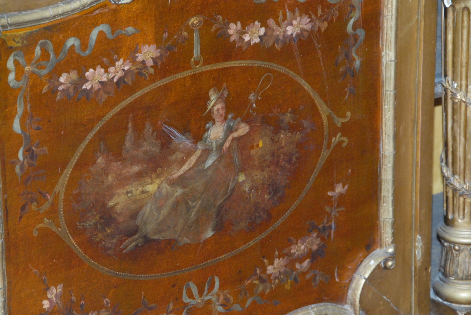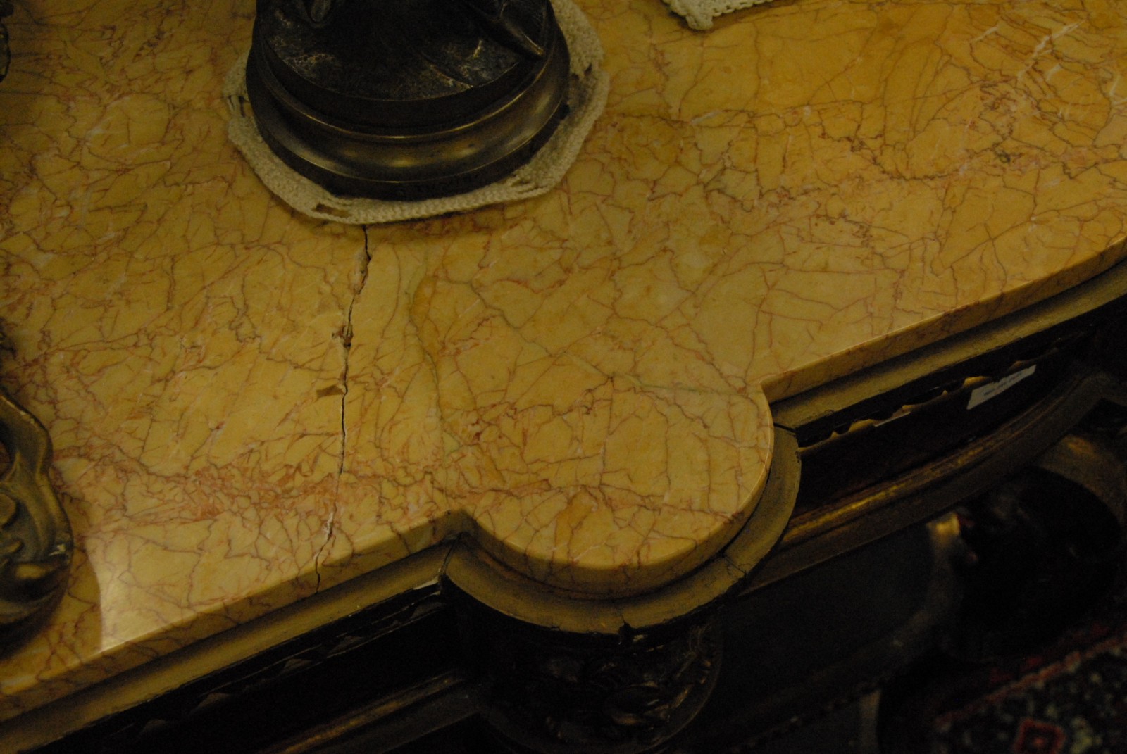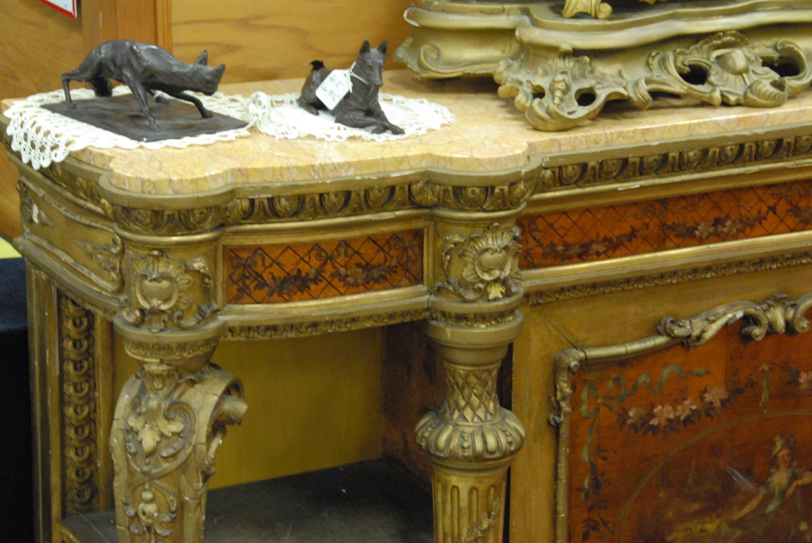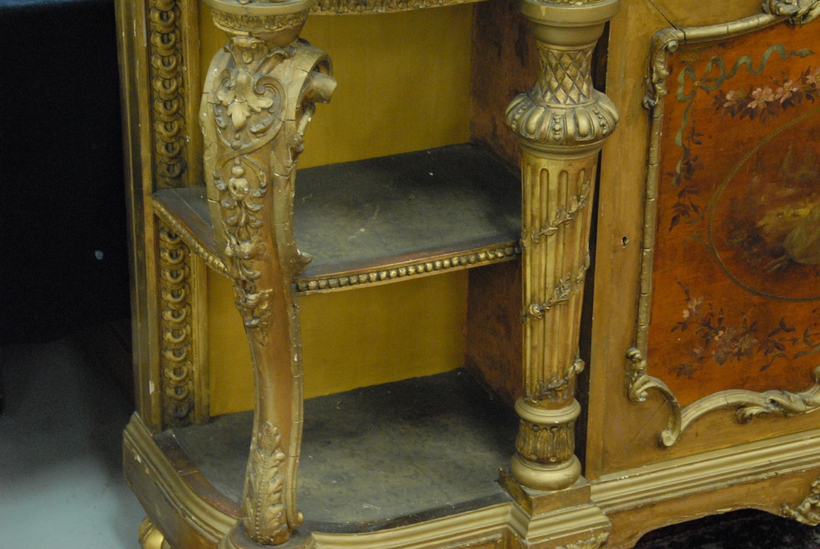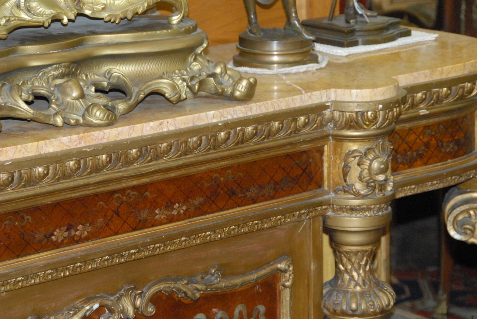 French style gold decorated marble top sideboard with hand painted door marble cracked.
