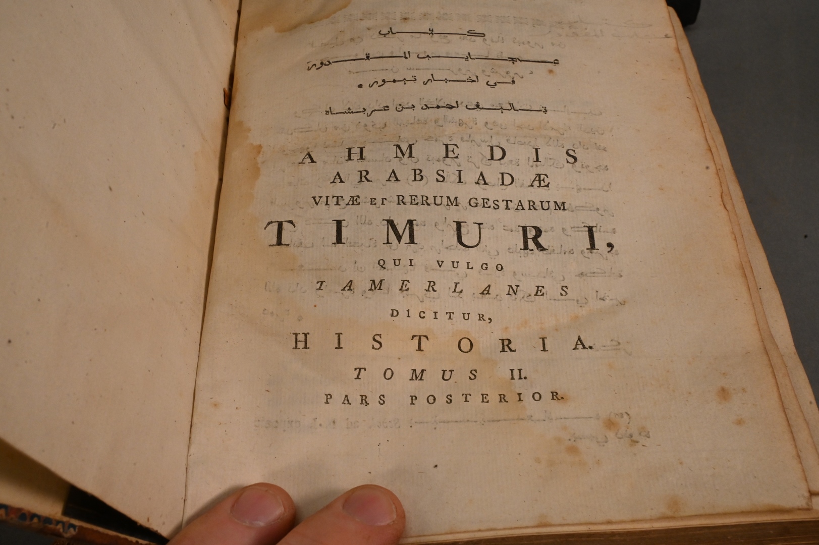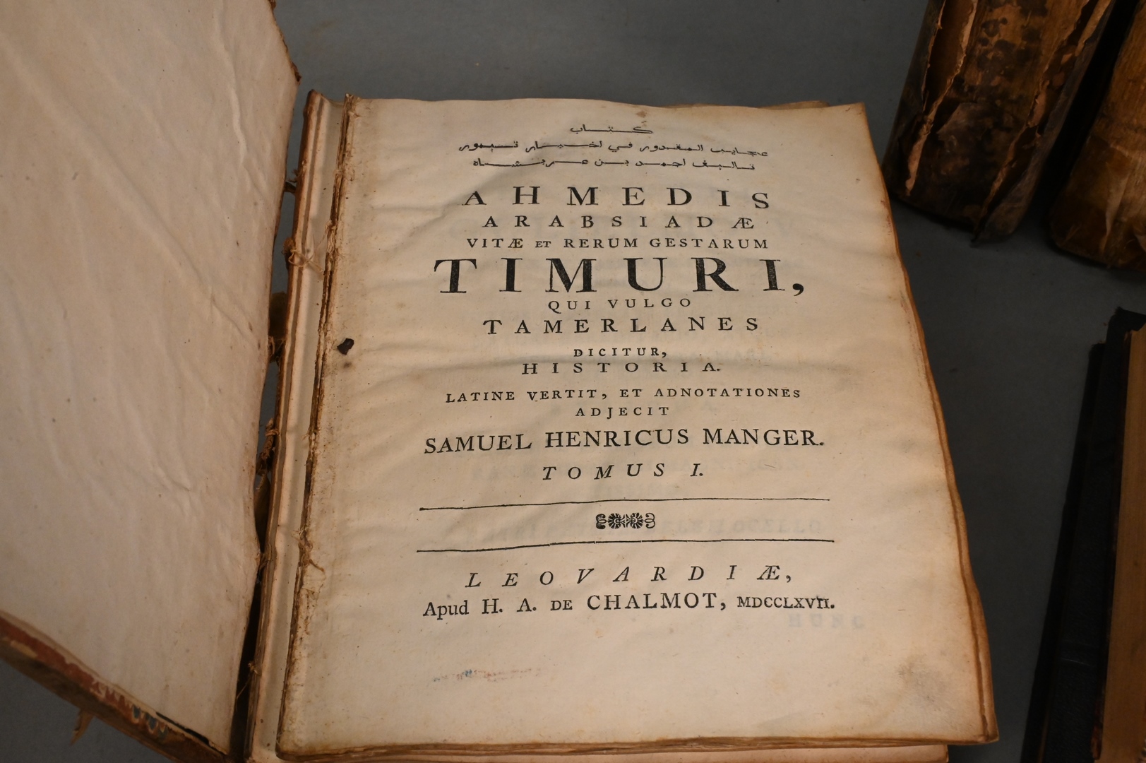 Group of 12 Persian Books, to include Ahmedis Arabsiadae Timuri, bibliotheque Orentale Dictionnaire Universal, L’ Histoire DV Grand Tamerlan, etc.