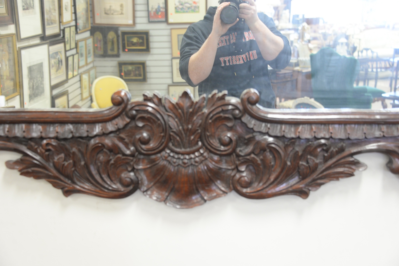 Large French Style Mirror with carved frame, height 47 inches. width 58 inches.