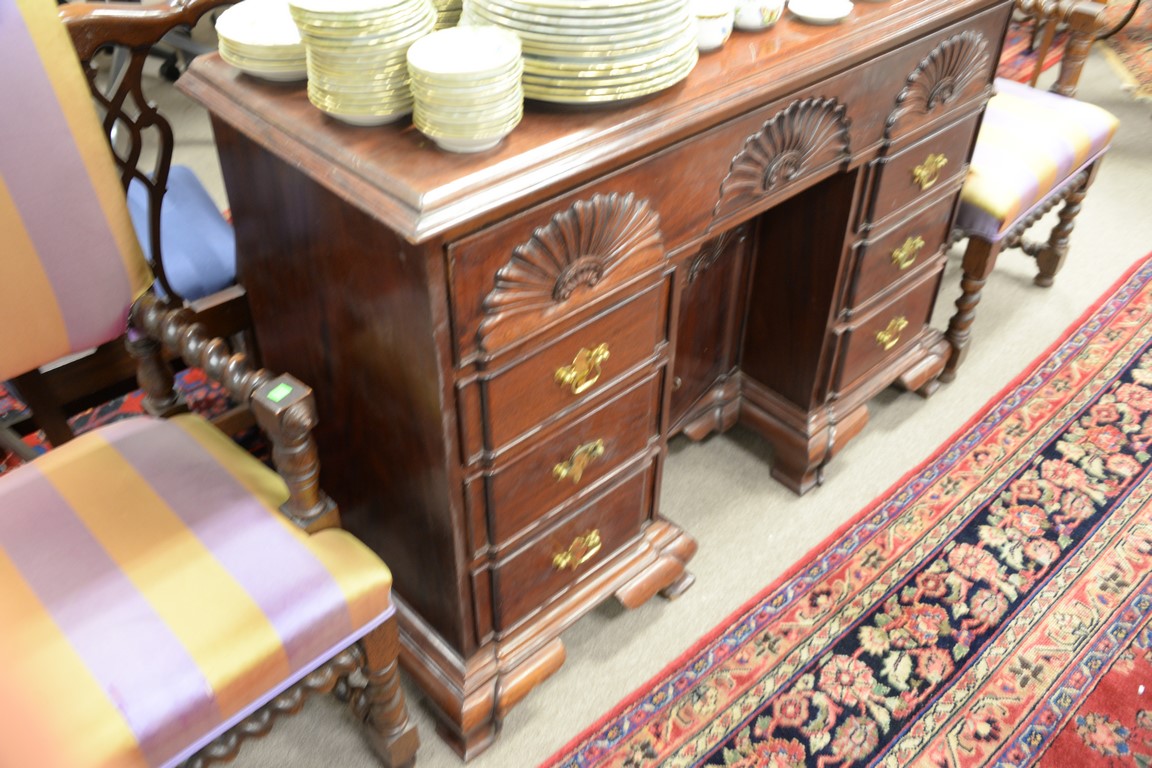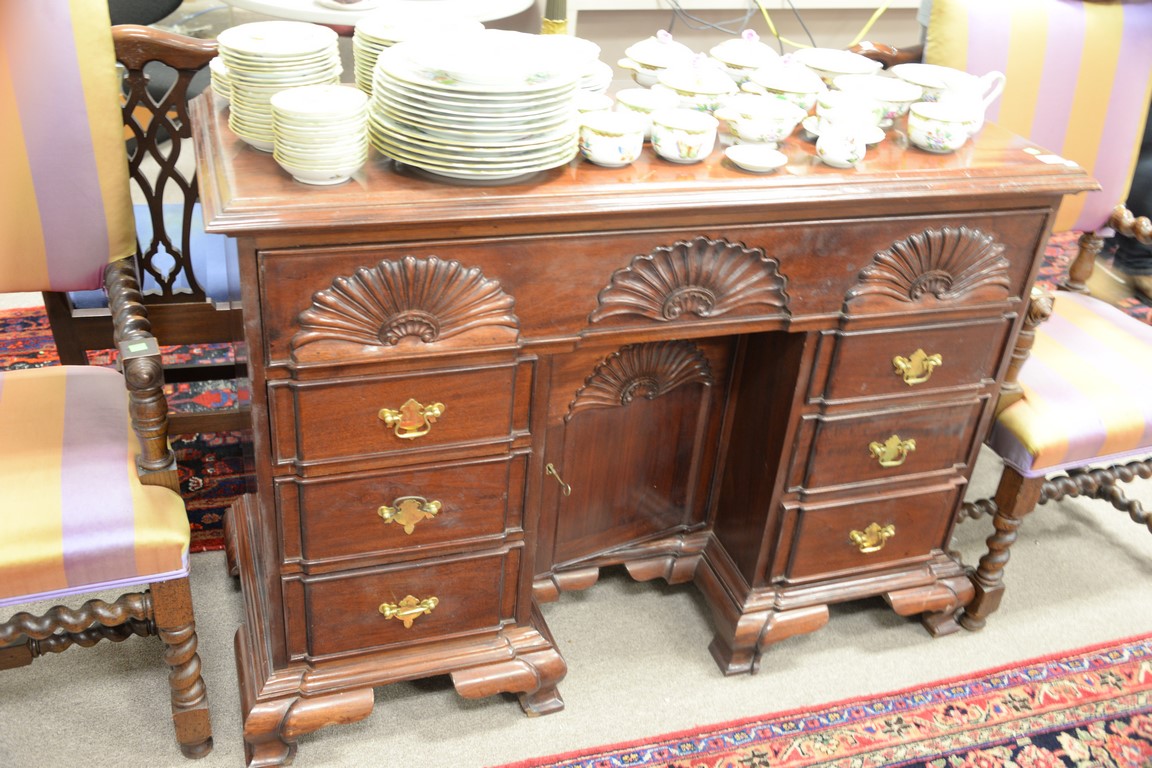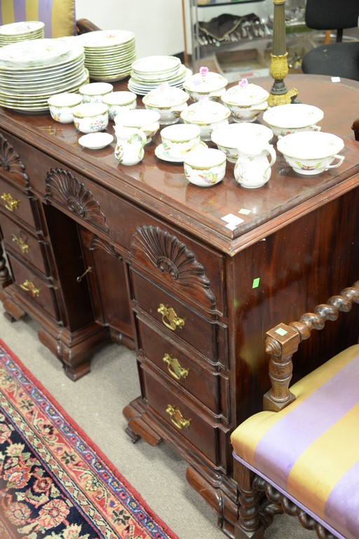 Mahogany Newport style block front desk. ht. 35 1/2in., wd. 49in.