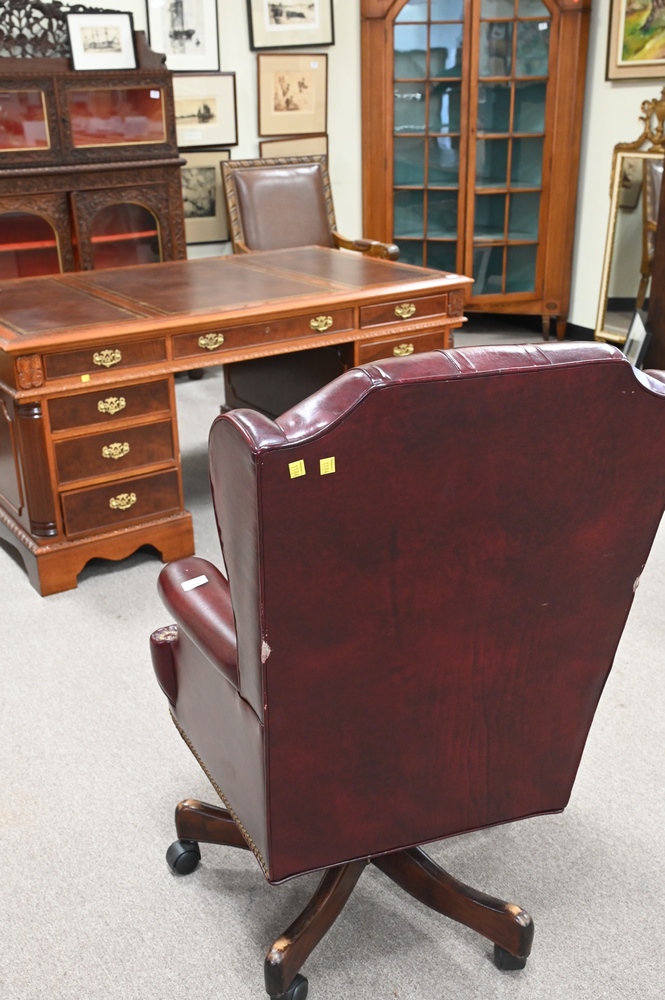 Lot 418: Schaefer Maroon Leather Executive Swivel Chair, having tufted back and seat, (back has two imperfections on edges), height 43 inches.