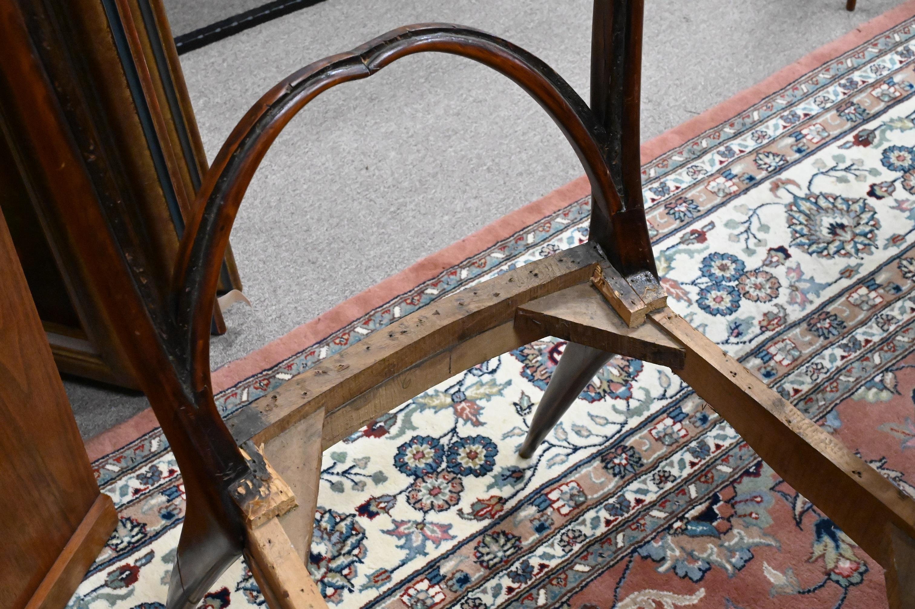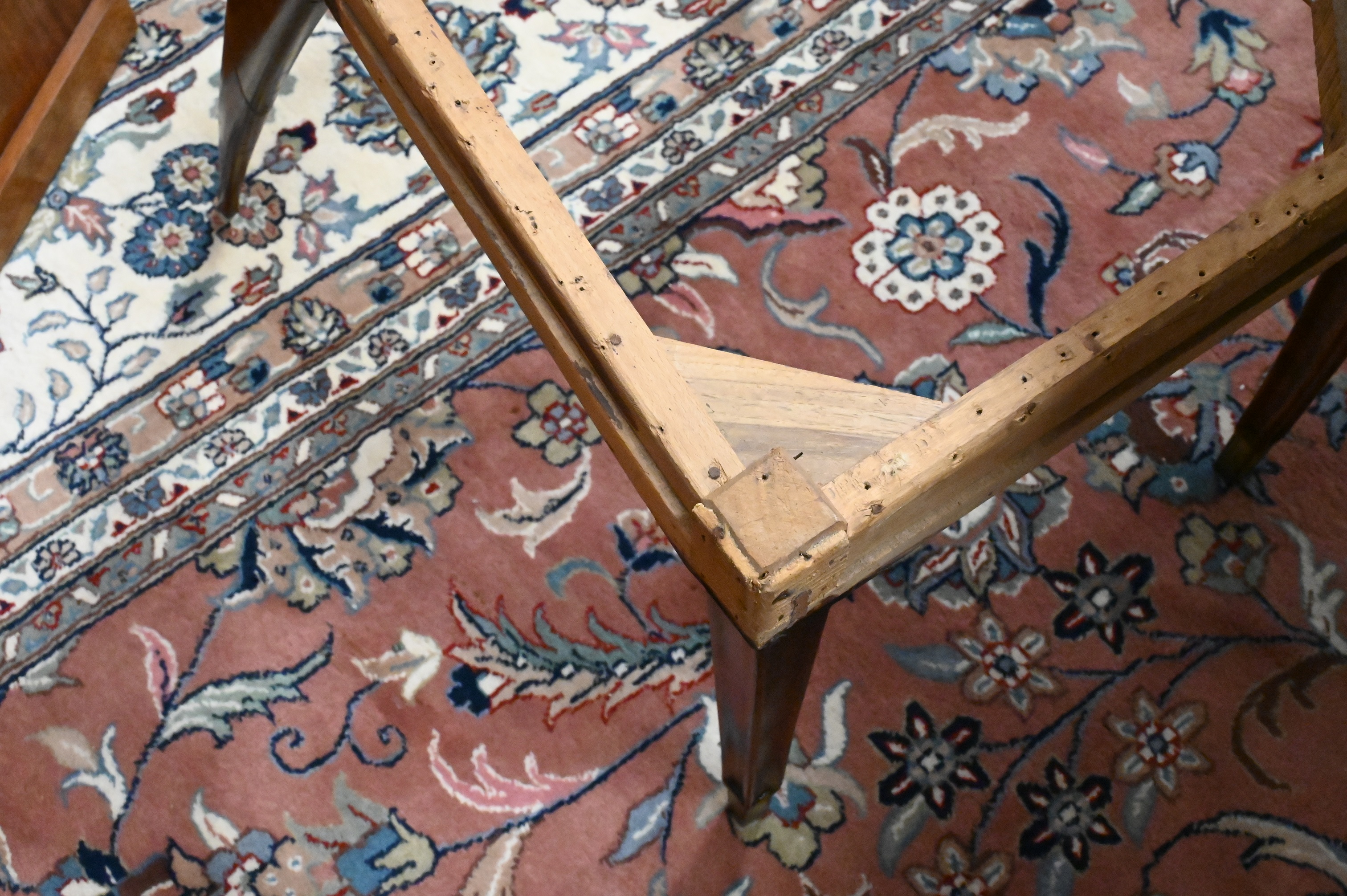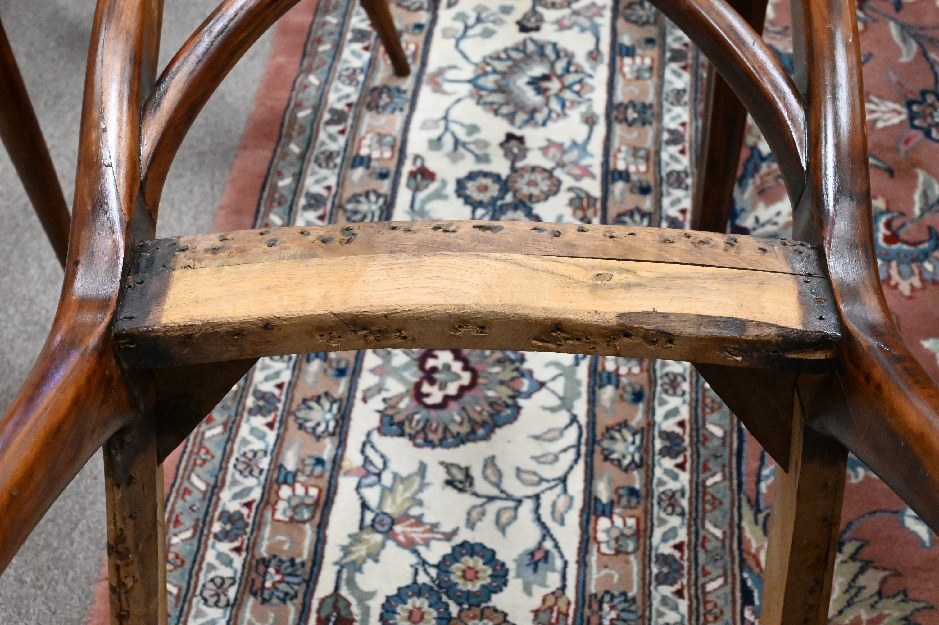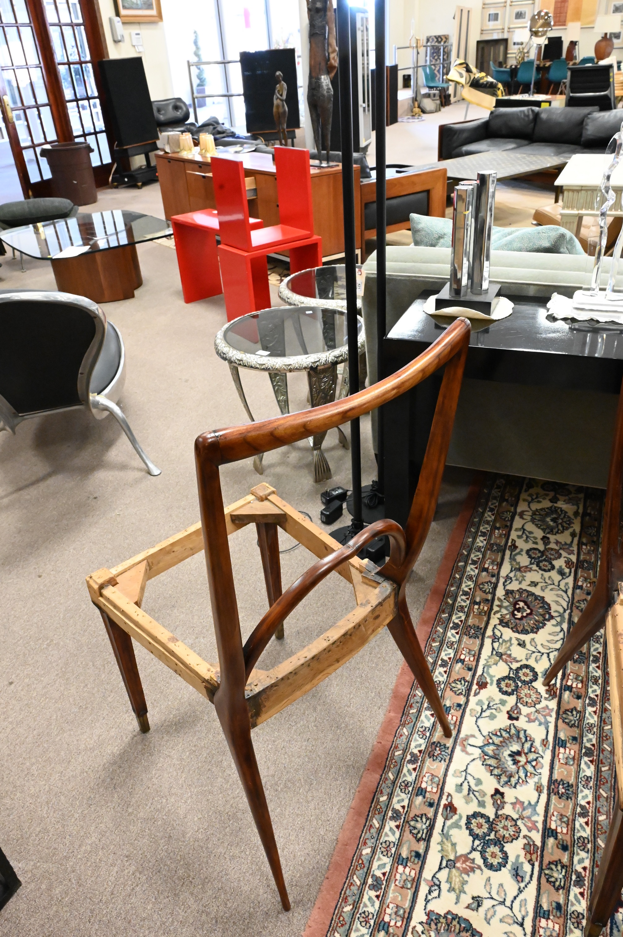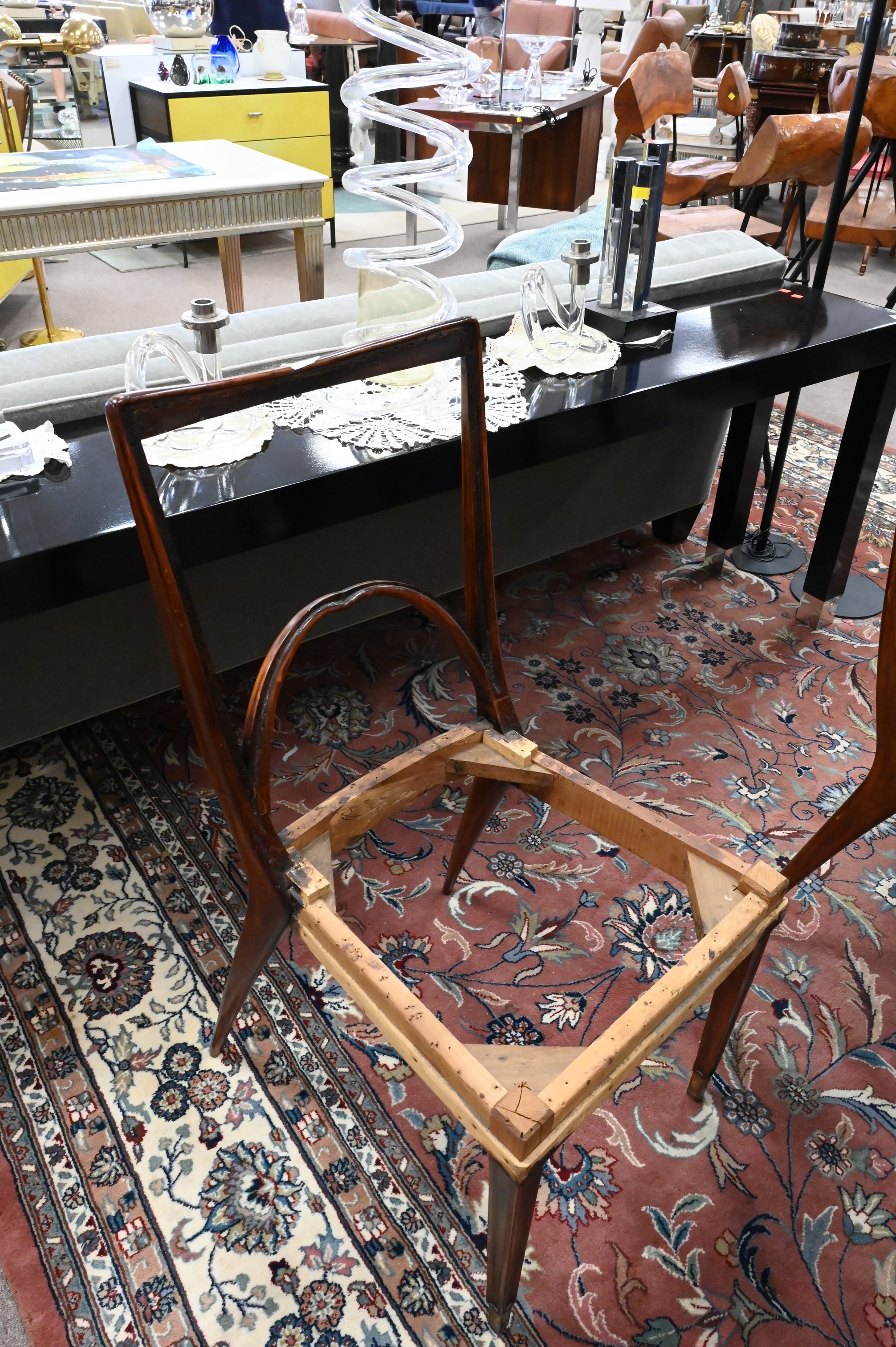 Set of Six Mid Century Modern 1950’s Italian Dining Chairs, no upholstery, formally had caned backs, height 37 inches, seat height 17 1/2 inches.