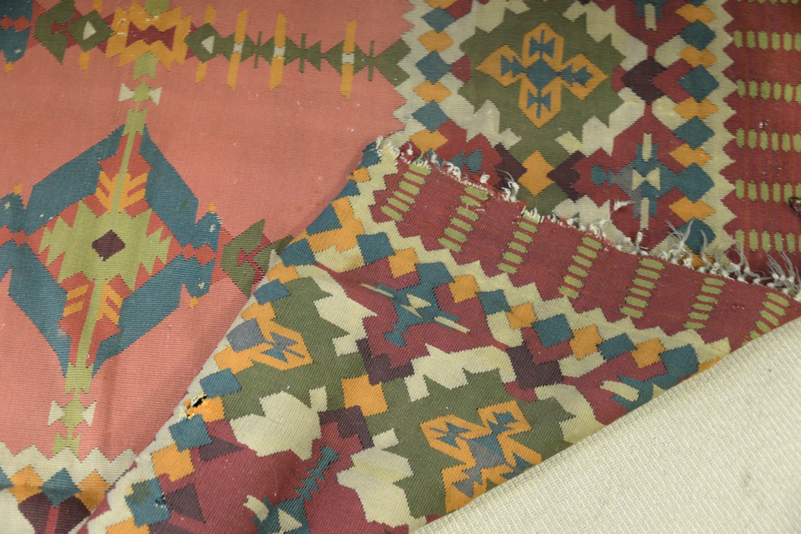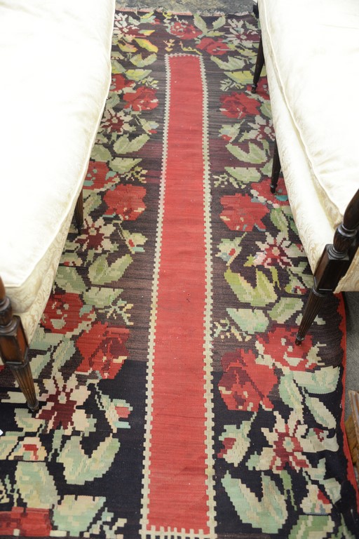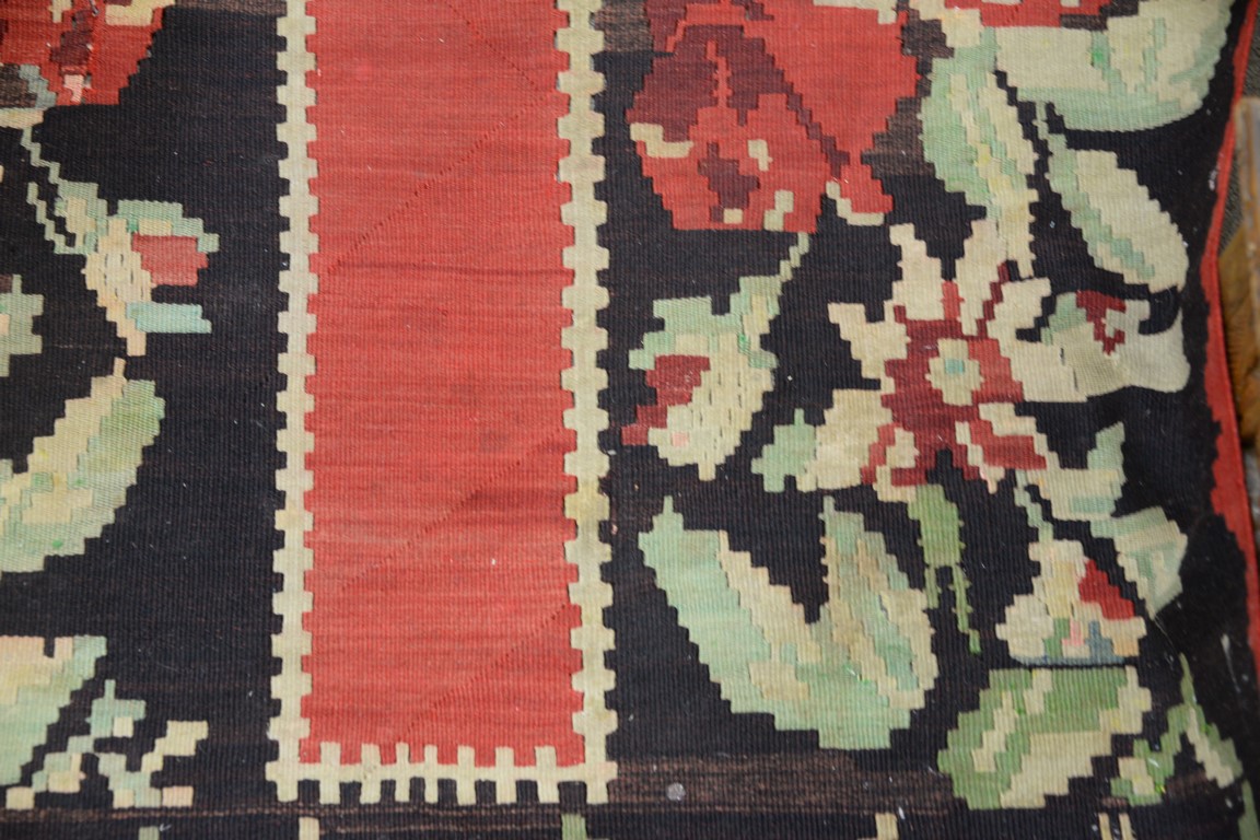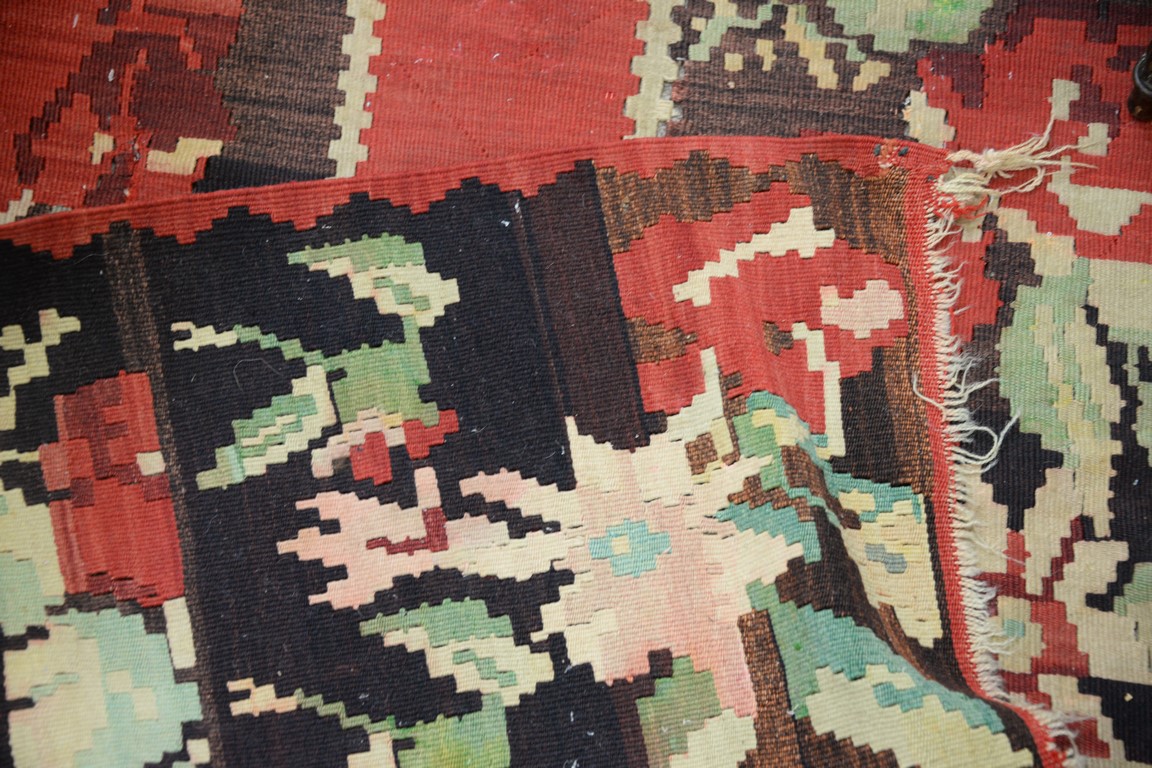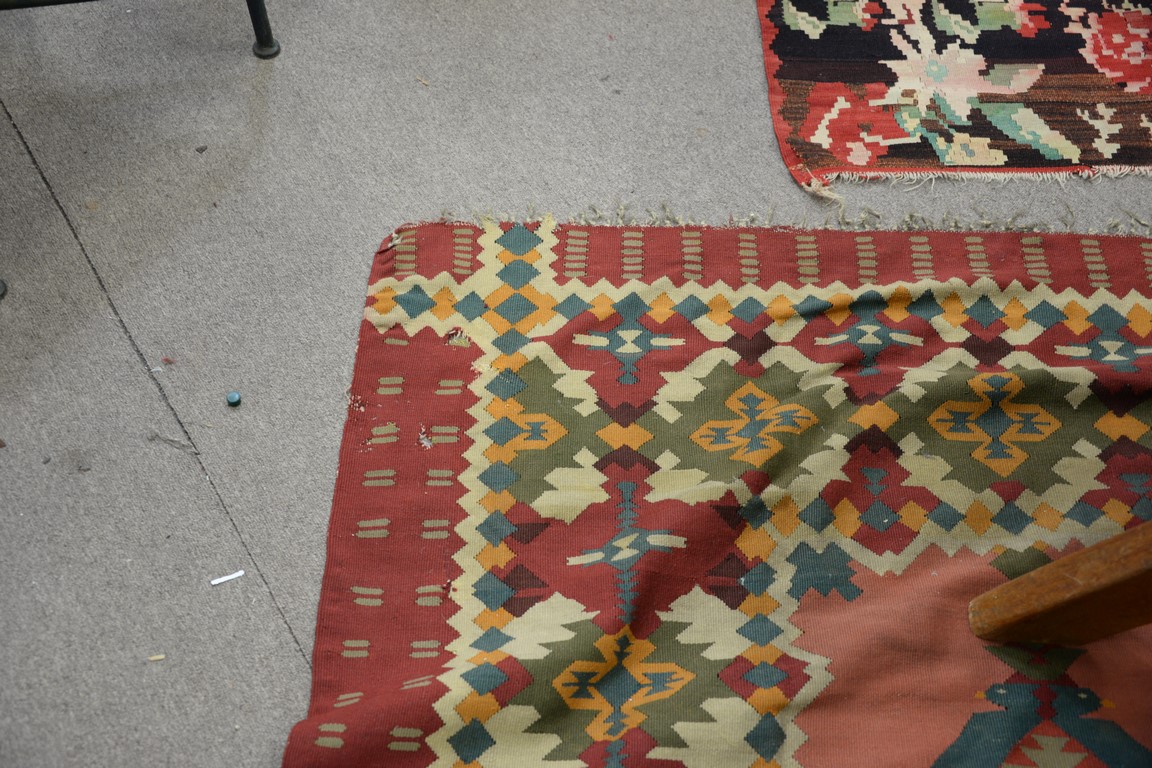 Two wool flat weave Oriental rugs including a runner and an area rug. 6’5 x 9’10 and 3’2 x 9′