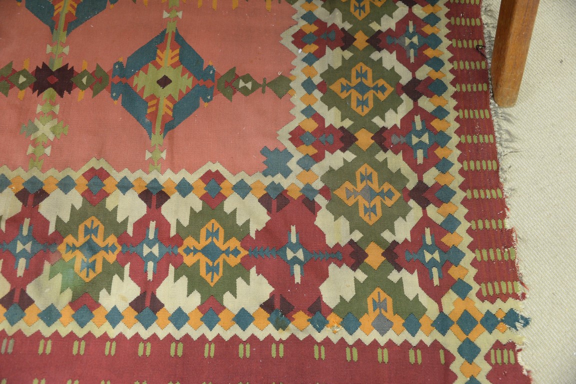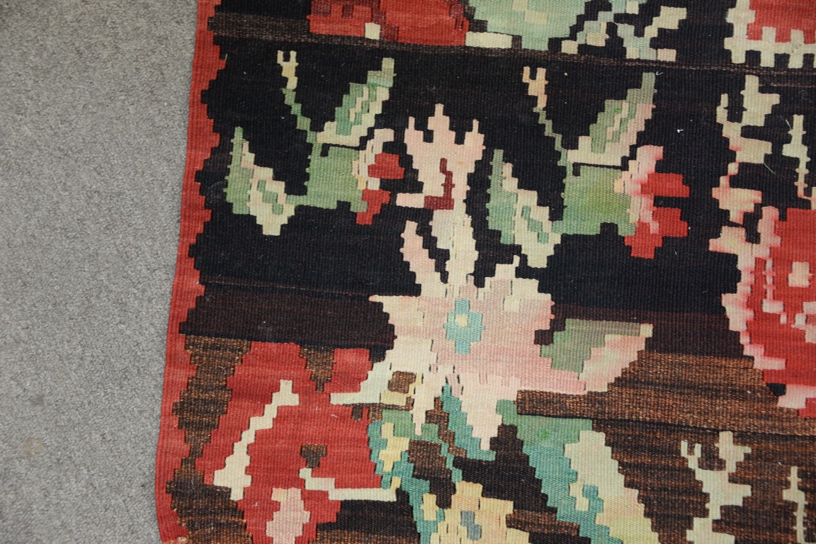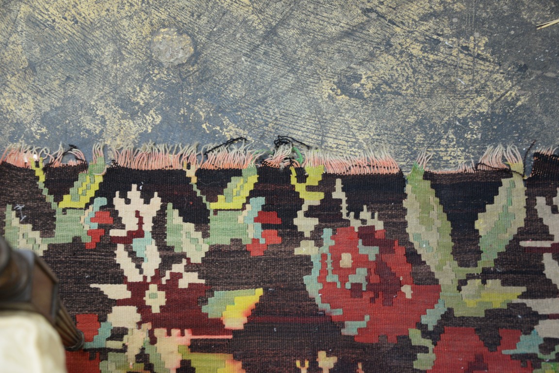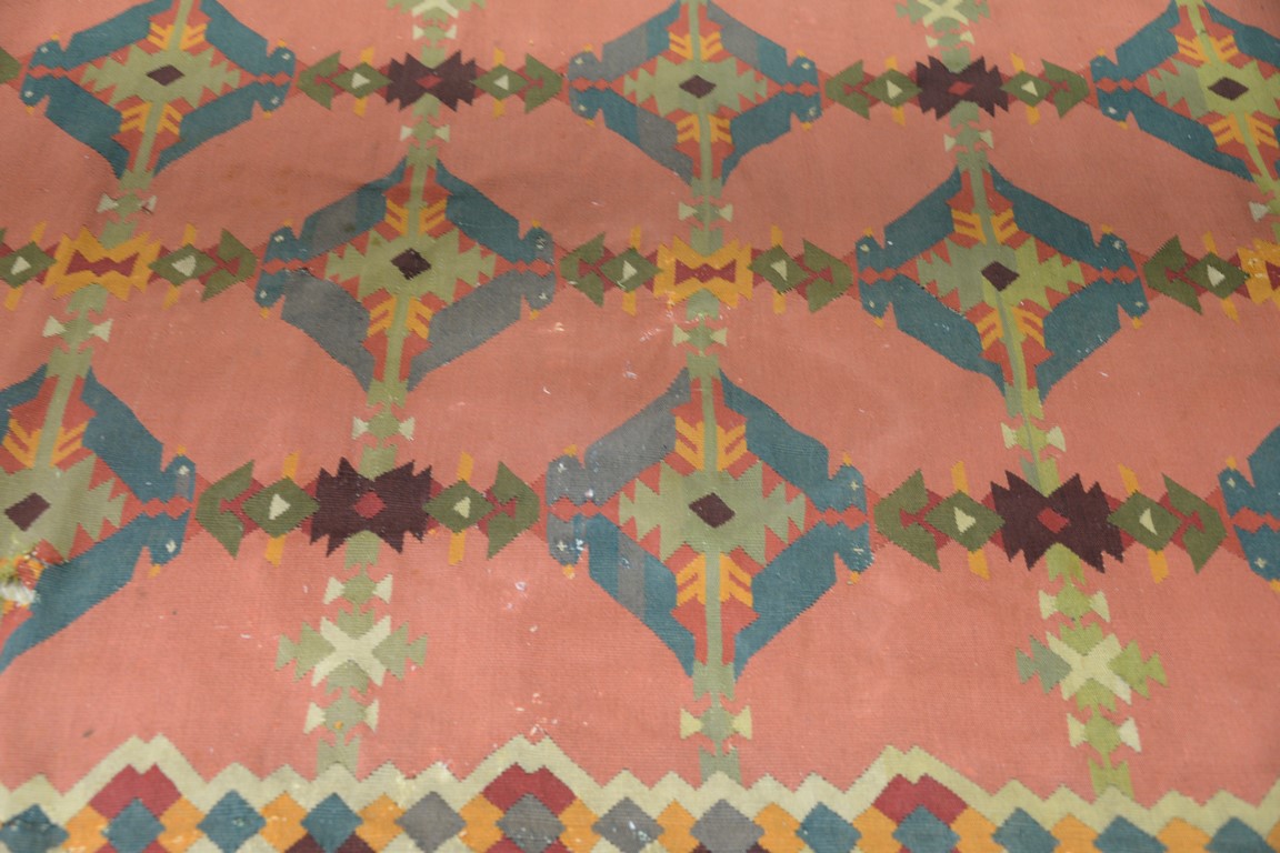 Two wool flat weave Oriental rugs including a runner and an area rug. 6’5 x 9’10 and 3’2 x 9′