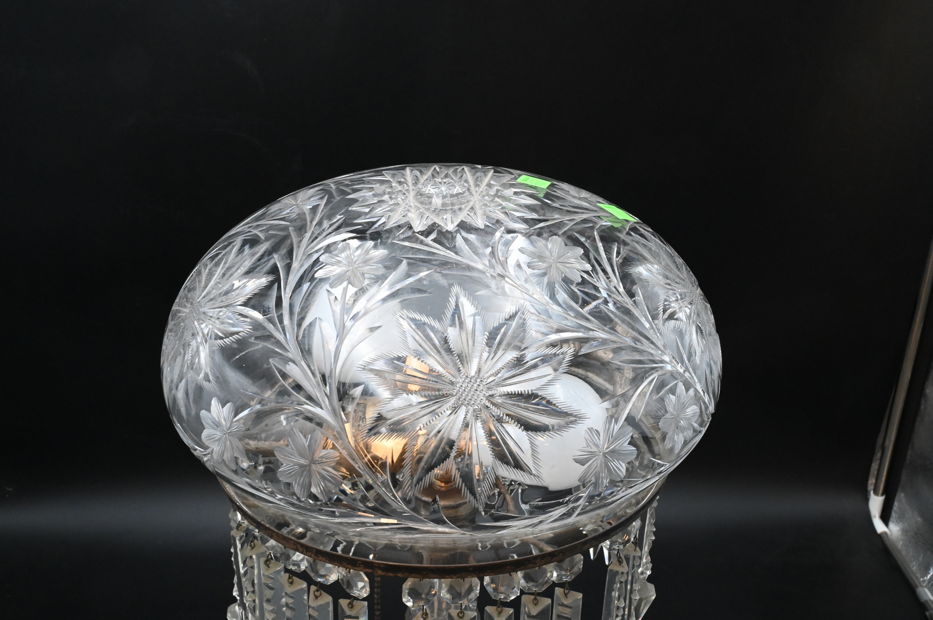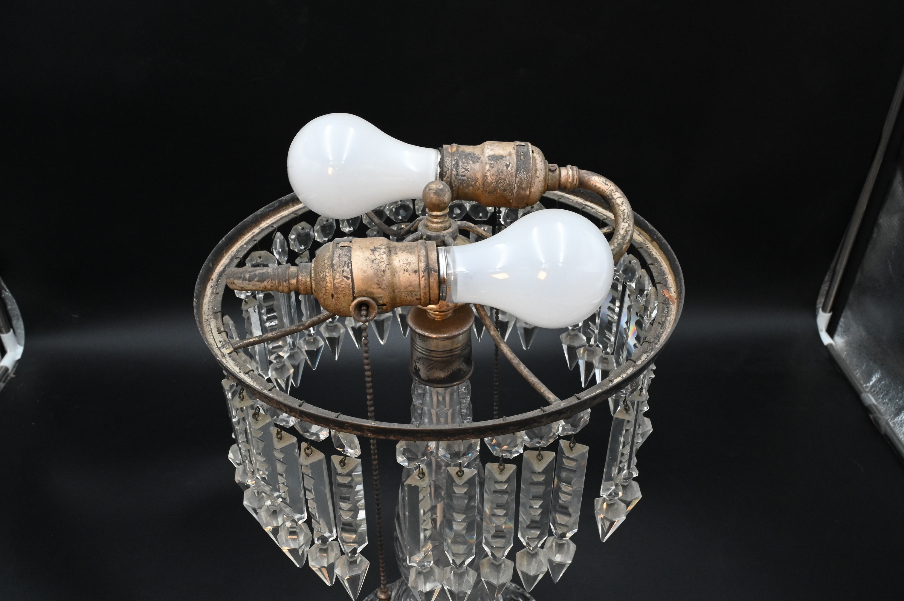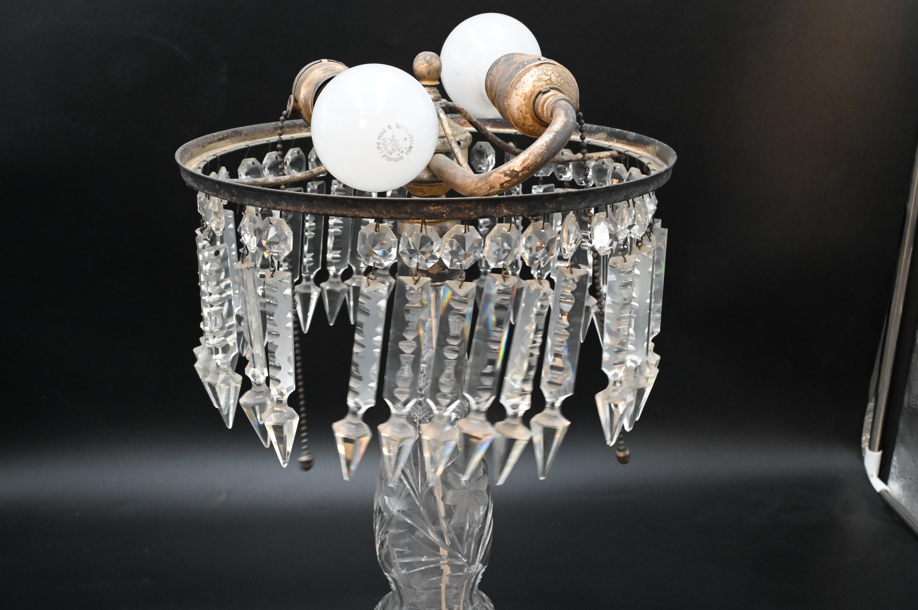 Condition: presents well, two prisms missing, chips to base, tarnish to silver