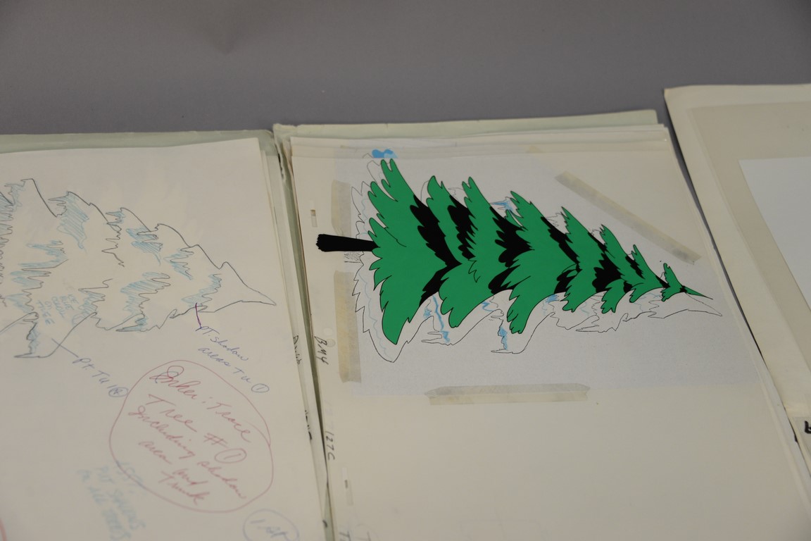 Lot 419: Lot of ten Filmation Associates portfolios to include animal cels, sketches, notes, etc. from various Filmation productions.