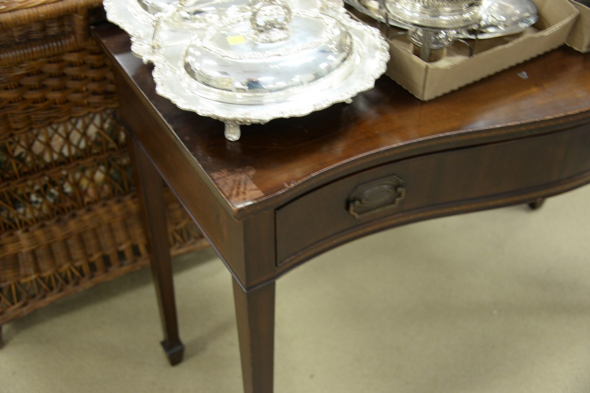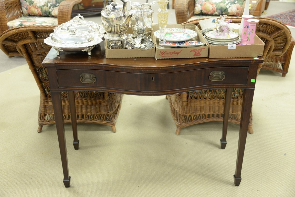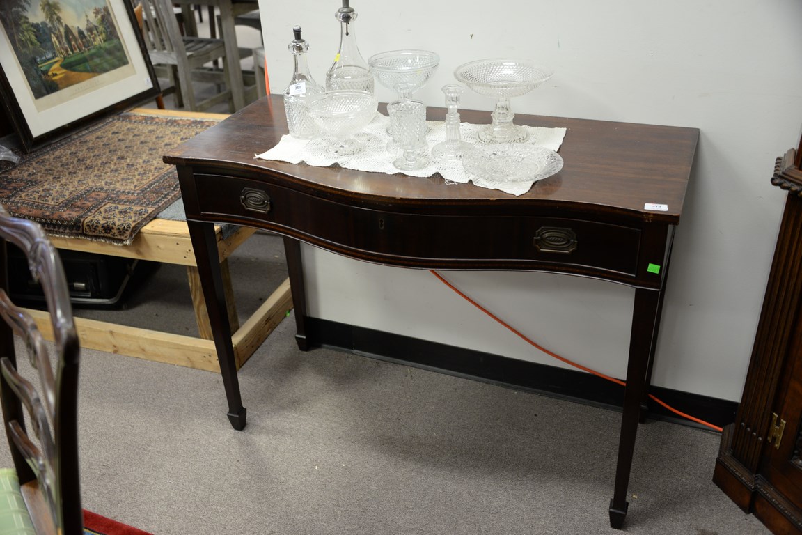 Margolis mahogany Federal style server with one drawer and bow front. ht. 52 in. wd. 43 1/ 2in.