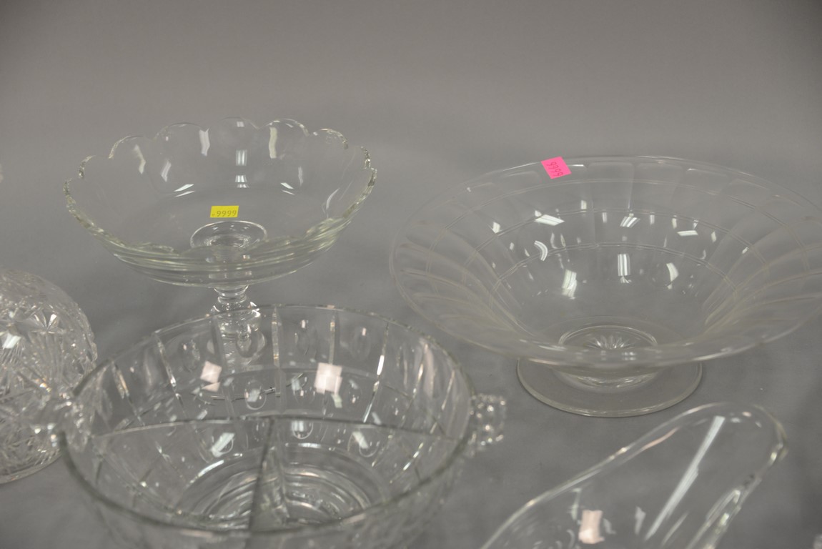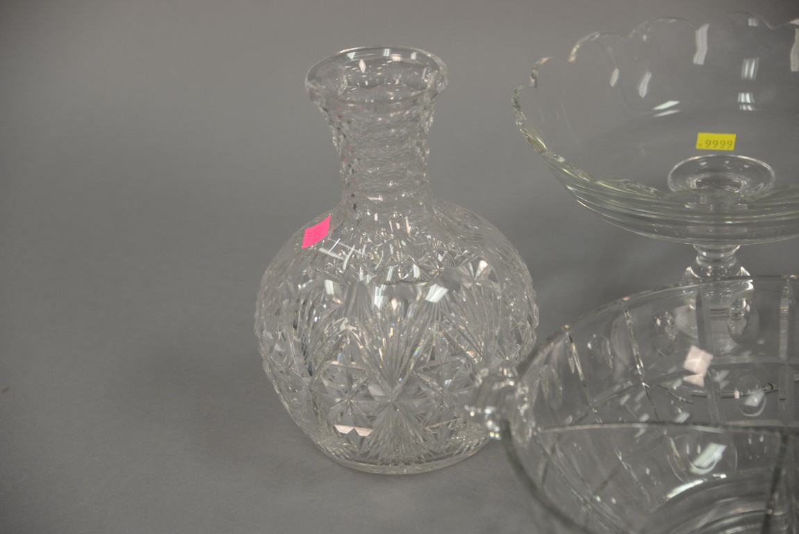 Seven crystal bowls and vases to include Steuben dish, Daum France dish, Val St. Lambert compote, cut glass dish and vase, etc.