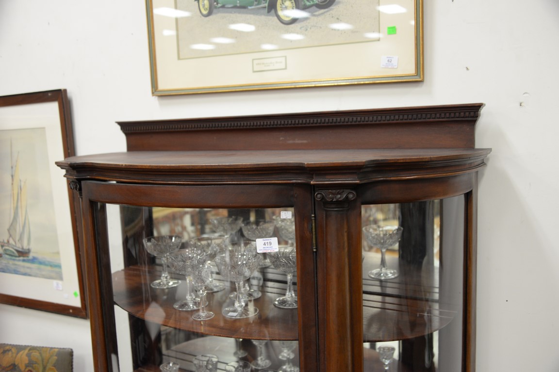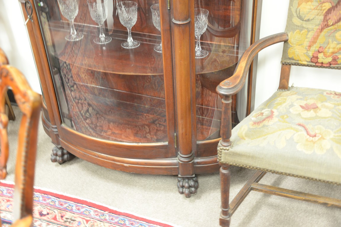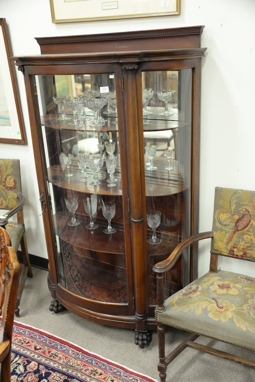 Victorian mahogany bowed glass china cabinet. ht. 65in., wd. 41in., dp. 18in.