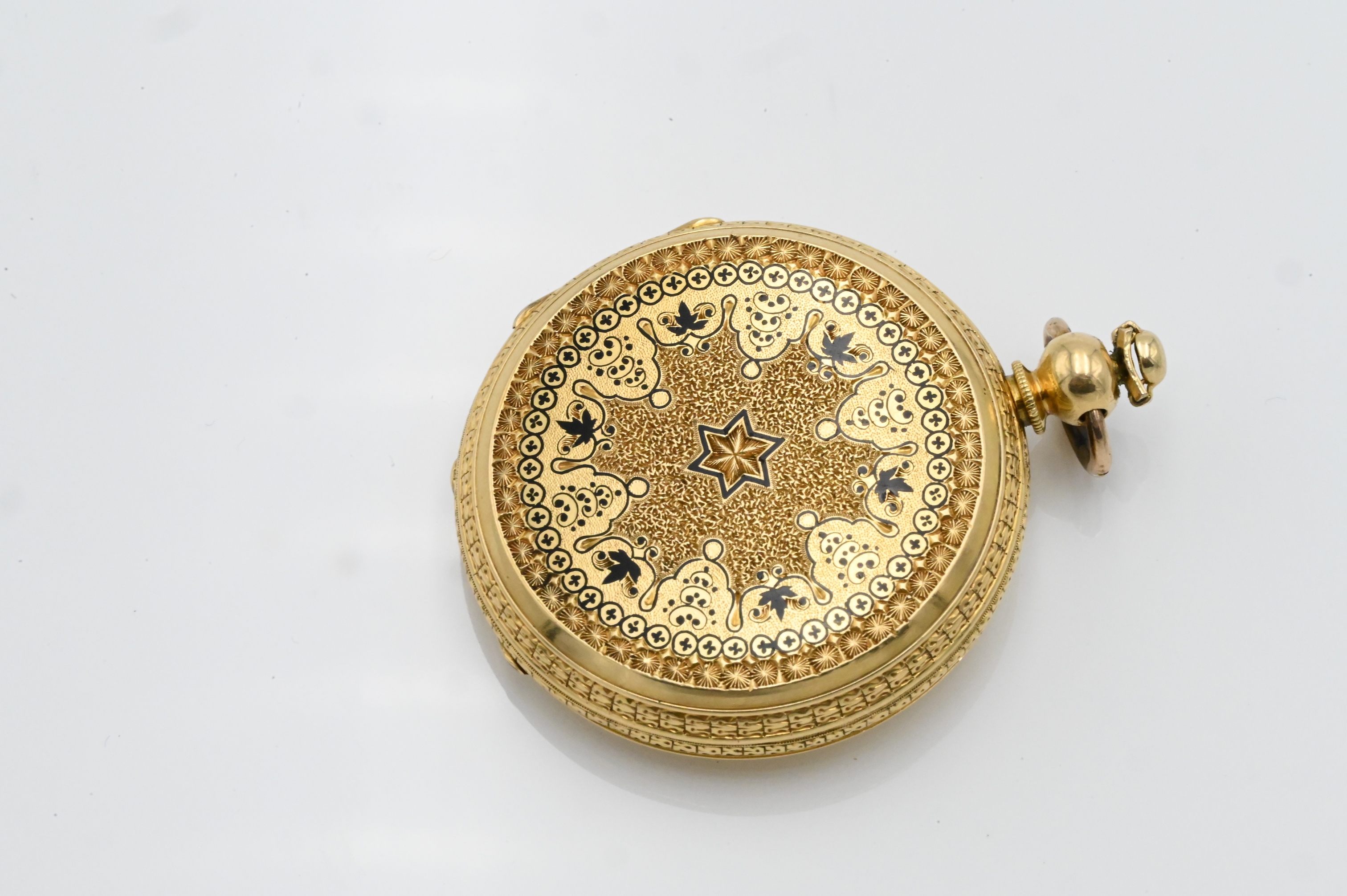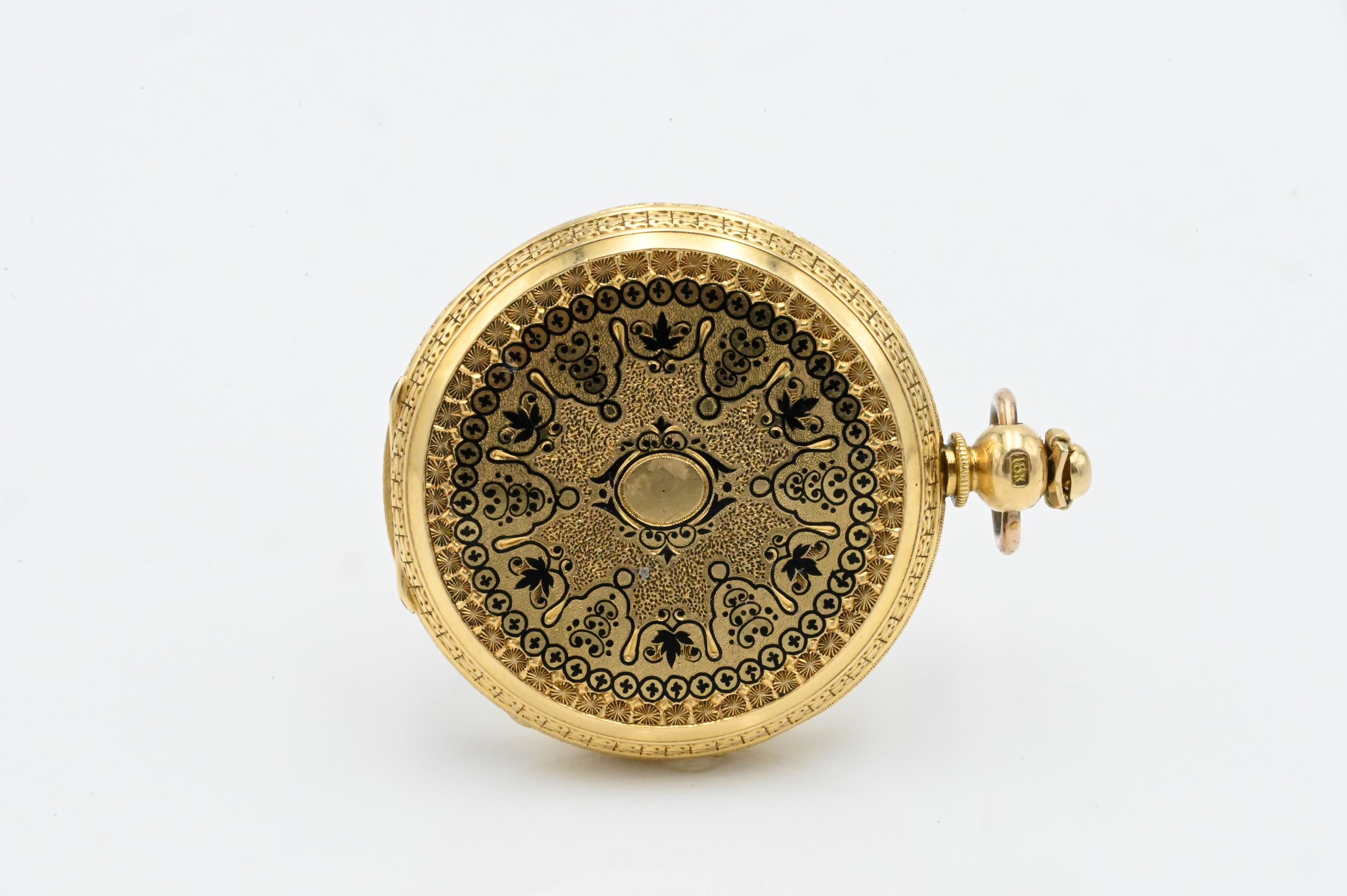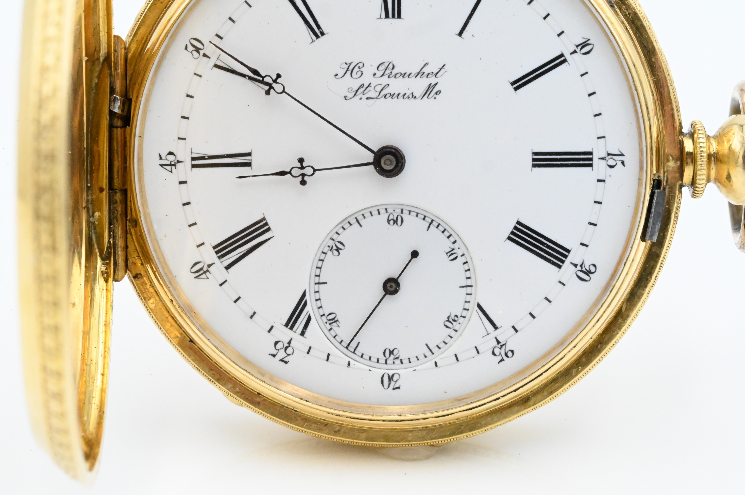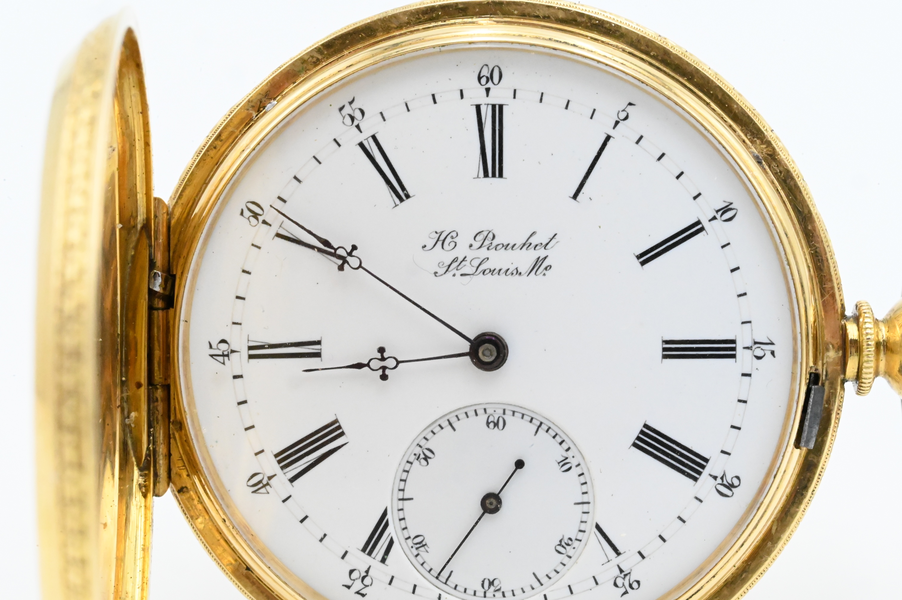 with 19 jewel key wind movement, face and case marked H. Provhet St Louis, case decorated with black enamel