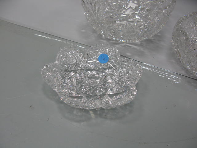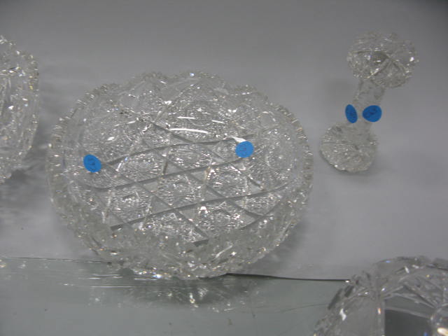 Five piece cut glass lot to include shallow bowl, center bowl, small dish, knife rest and butter dish cover
