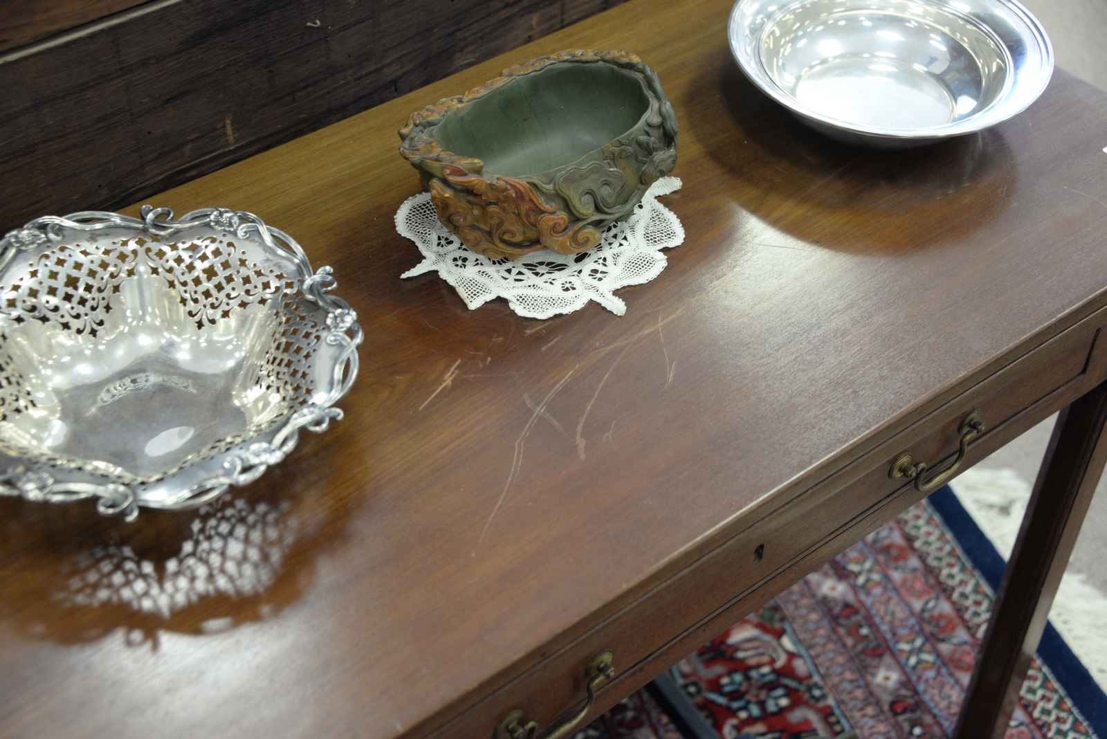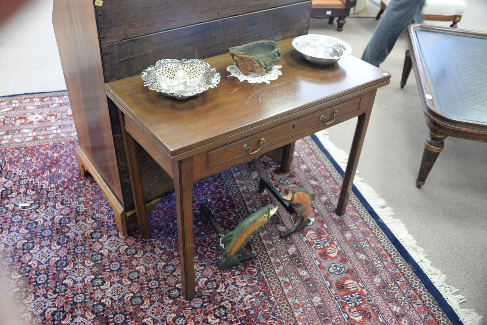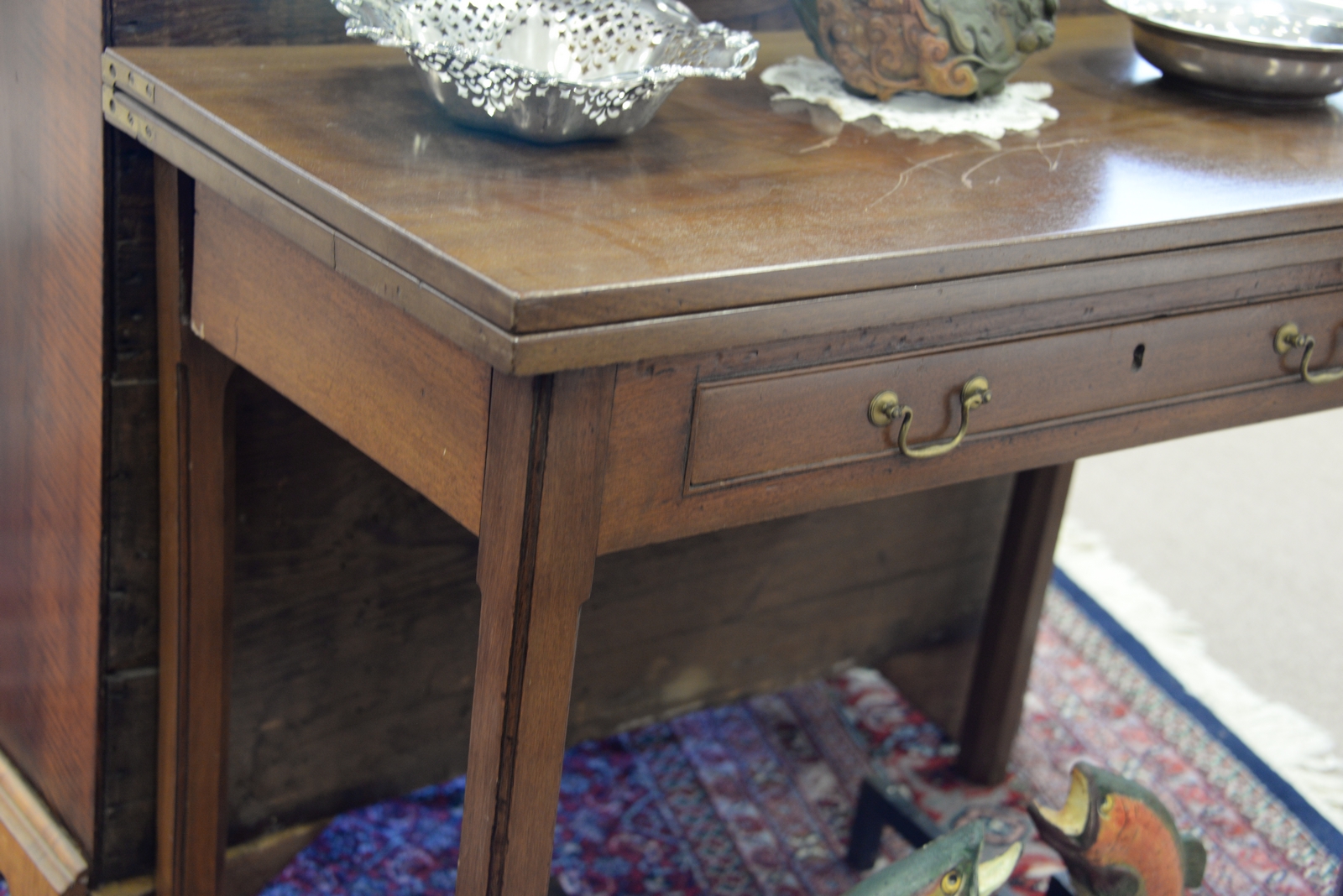 George III mahogany games table with drawer, 18th century. ht. 28in., top closed: 18 x 36