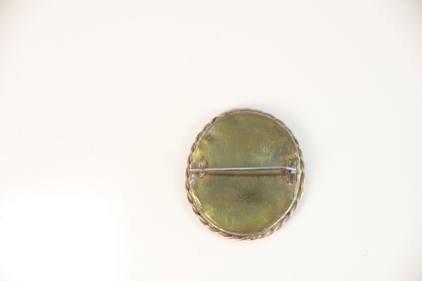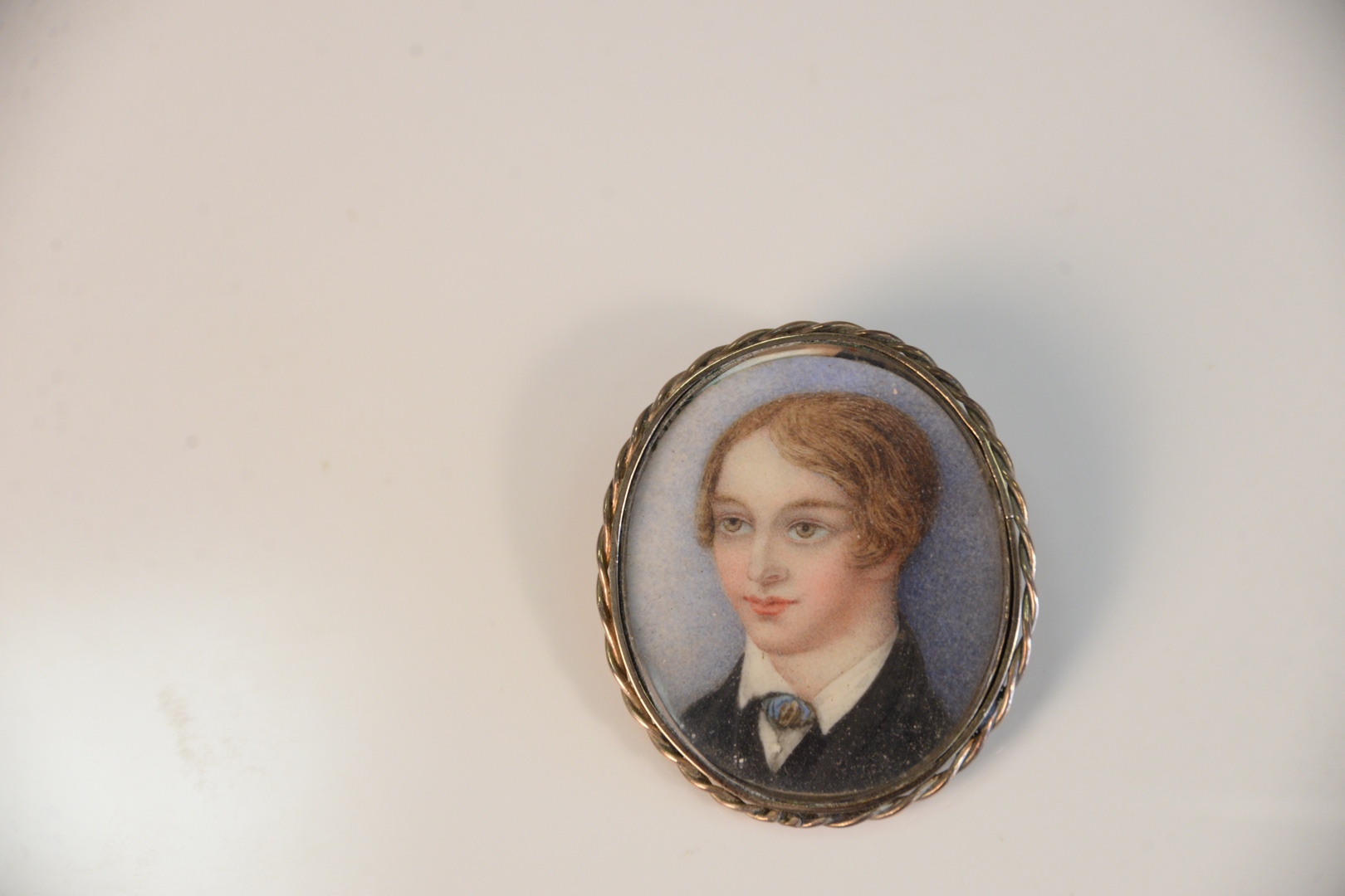 Gold case pin having miniature portrait of a boy inside Length: 1-1/4