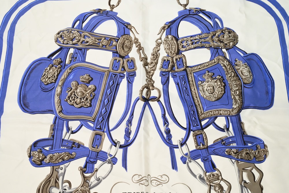 Lot 42: Hermes Silk Scarf, titled “Brides de Gala”, made for Henry Miller, Hartford, label attached, 35″ x 35″, in excellent condition.