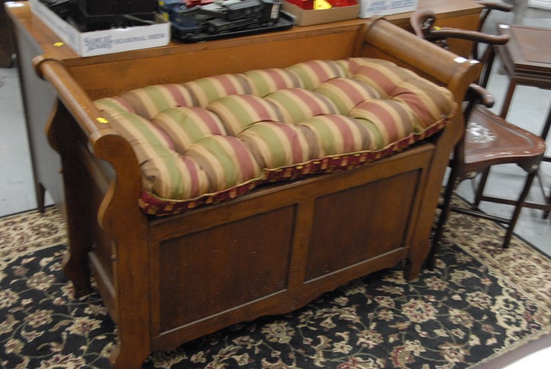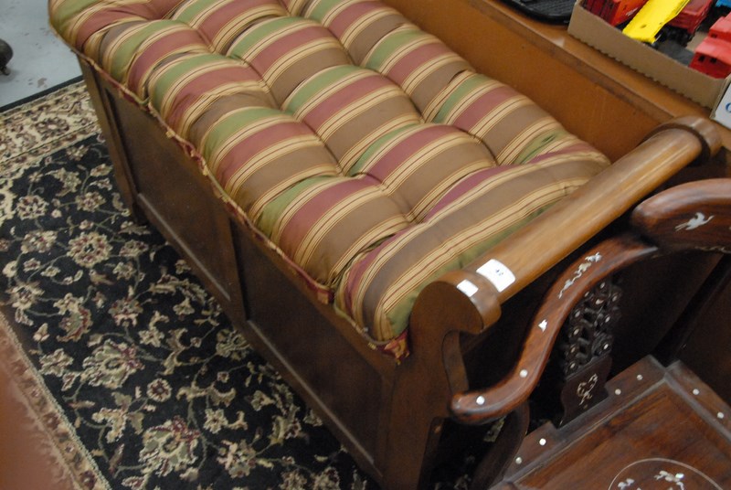 Lot 42: Small lift top bench with cushion seat, lg. 46 in.