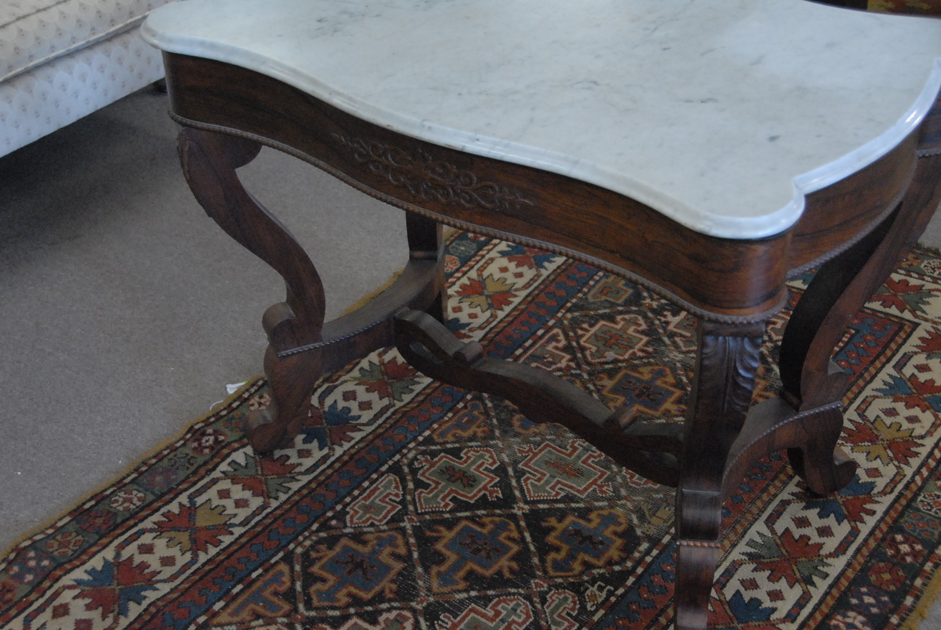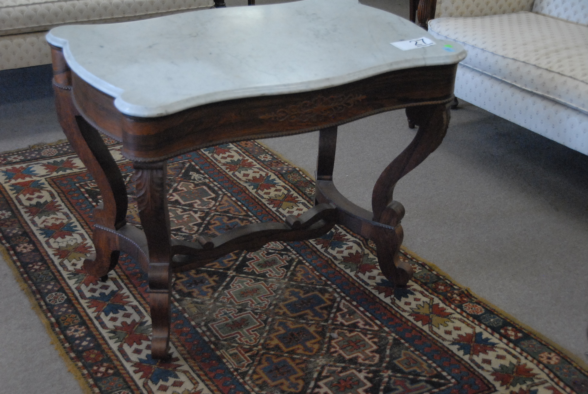 Victorian rosewood shaped marble top center table, ht. 29in. wd. 24in. lg. 3ft.