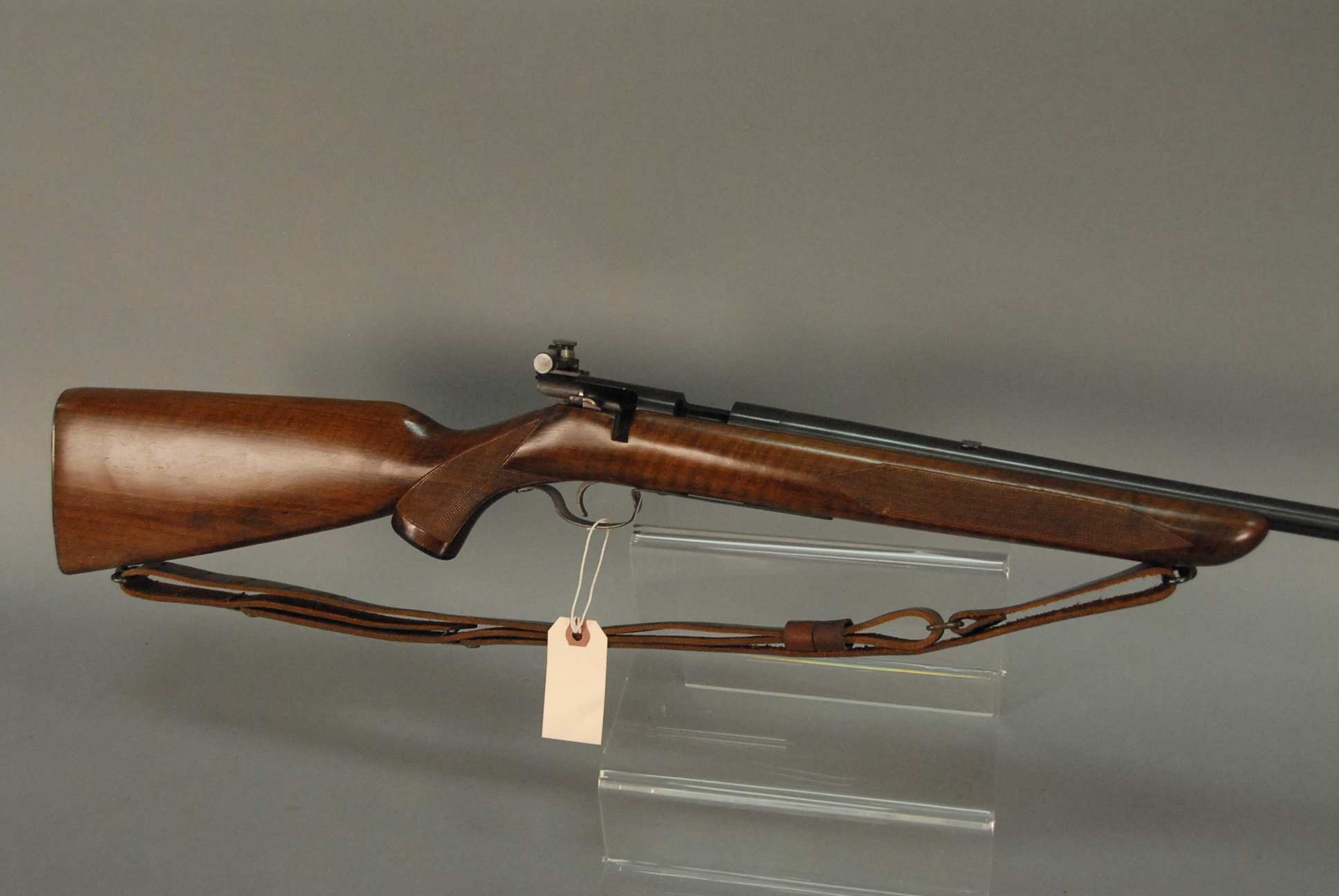 Lot 42: Winchester target rifle, model 75, 22 caliber bolt action with original box, 23 1/2 barrel, s/n 41059 440.