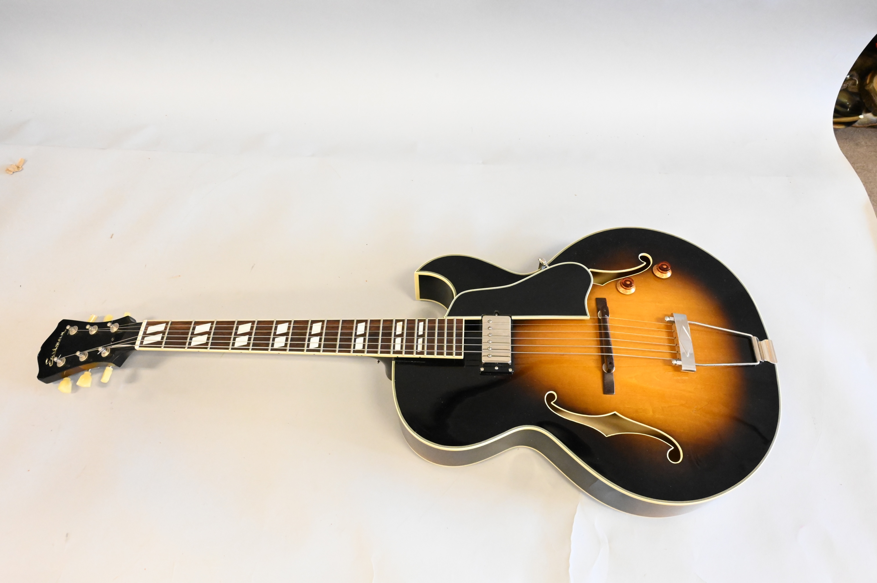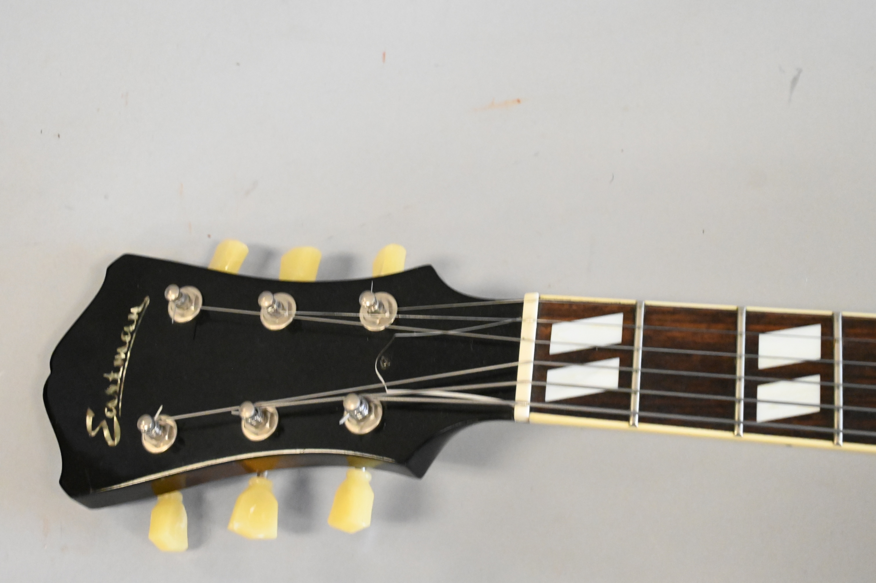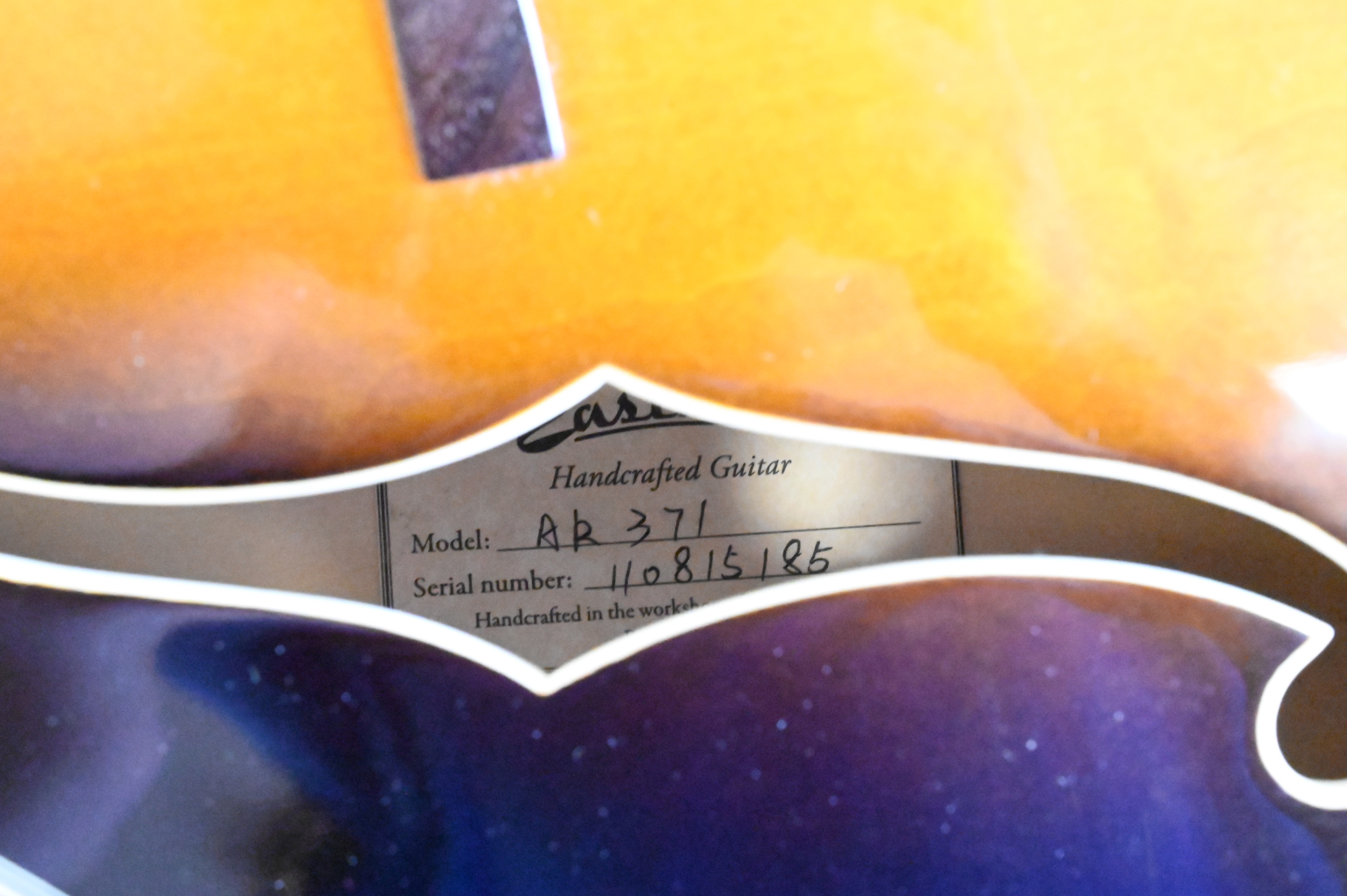 2011 Eastman AR-371 CE Guitar, serial #110815185, in sunburst with a hard shell case.