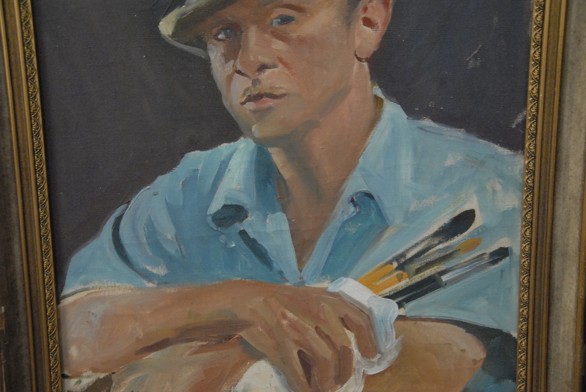 Lot 420: Margaret Fitzhugh Browne 1884-1972 PORTRAIT OF A MAN WITH PAINT BRUSHES oil on canvas written on back, 20 x 24.