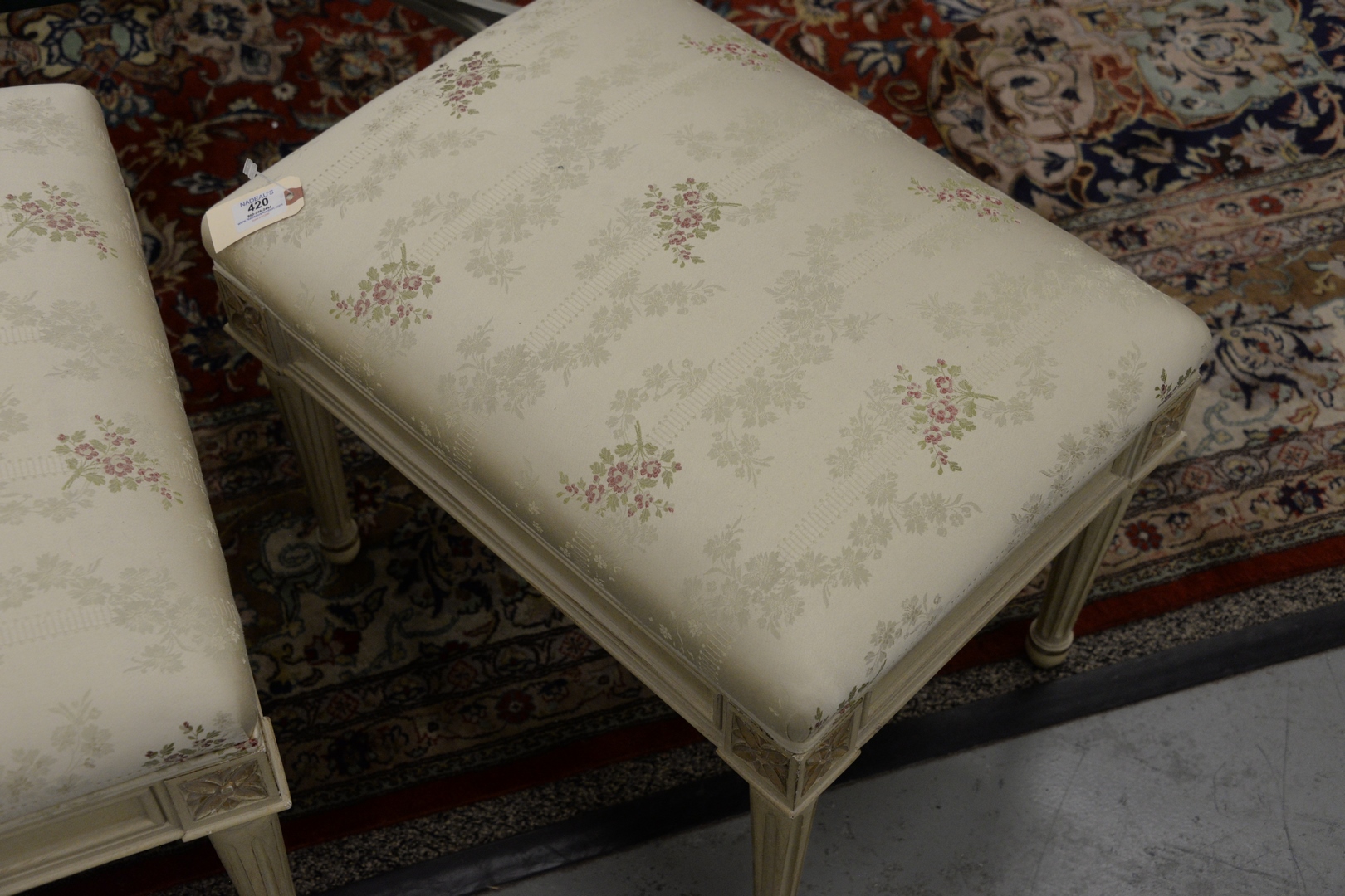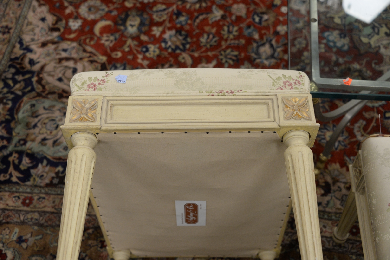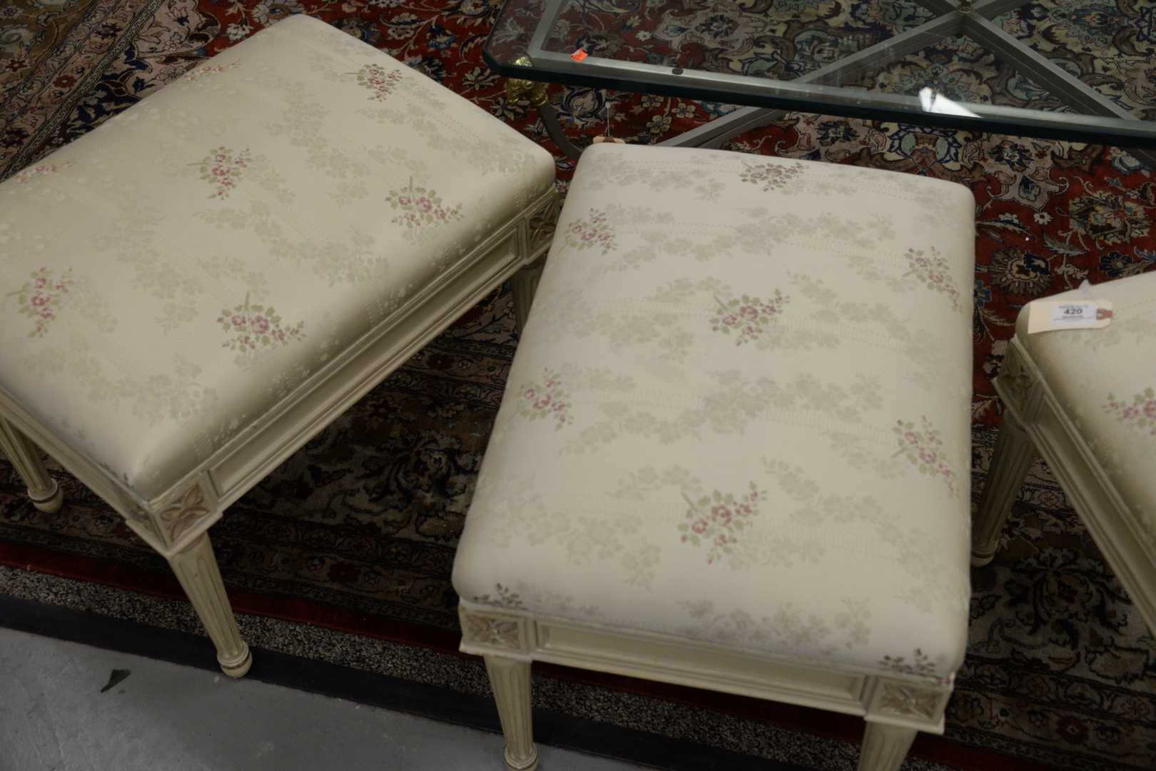 Lot 420: Three Auffray and Company Louis XVI Style Ottomans, all having silk floral upholstery, height 17 inches, top 16 1/2 x 22.