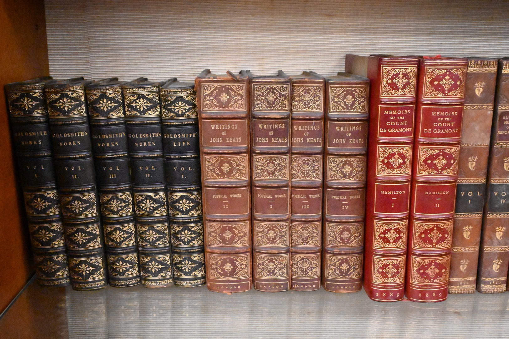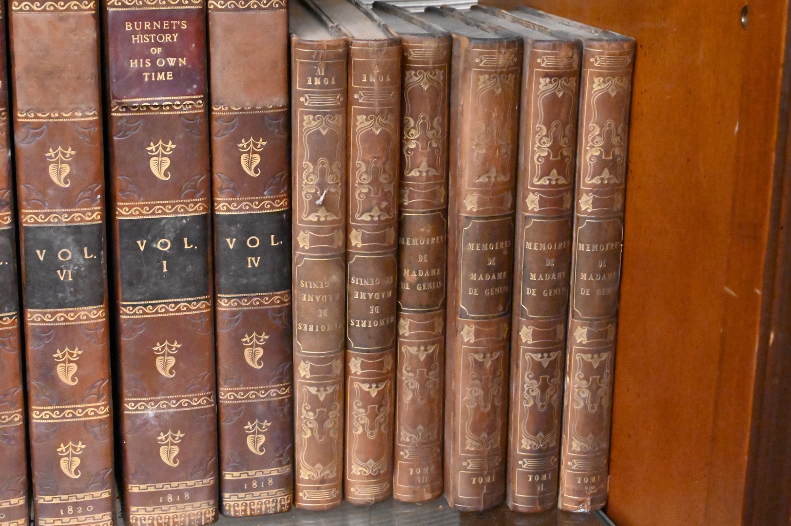 Approximately 69 Leatherbound Books, to include a complete 12 volume set of Alfred Tennyson’s works, 10 volumes of Burnet’s History of the Reformation, 17 volumes of “Writings of J. L. Motley”, etc.., Provenance: Estate of Cyril H. Moore Jr, Kent, Connecticut.