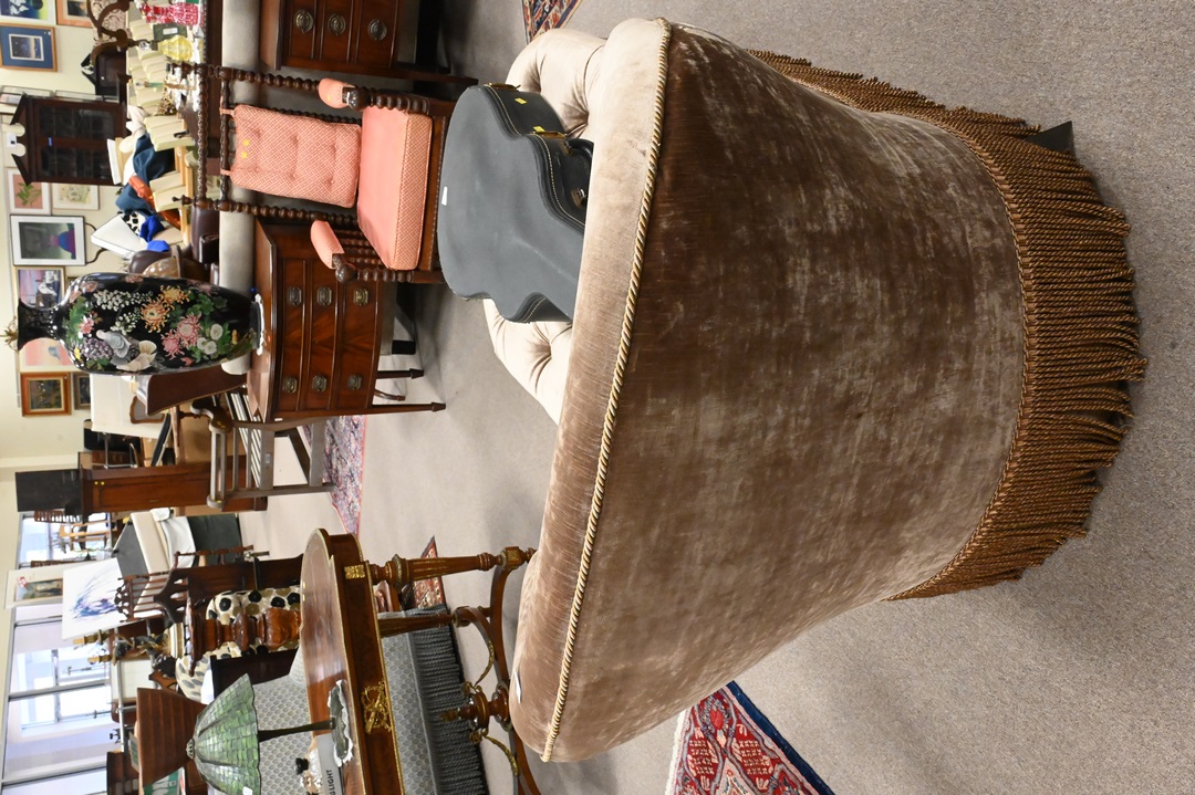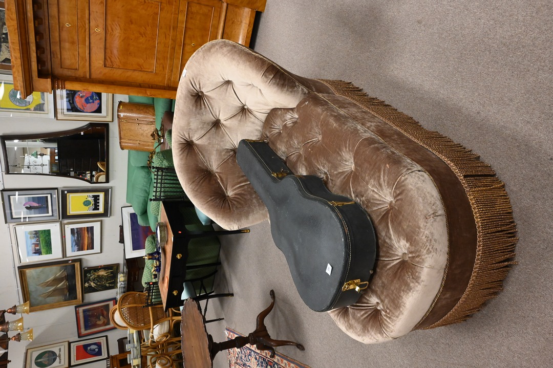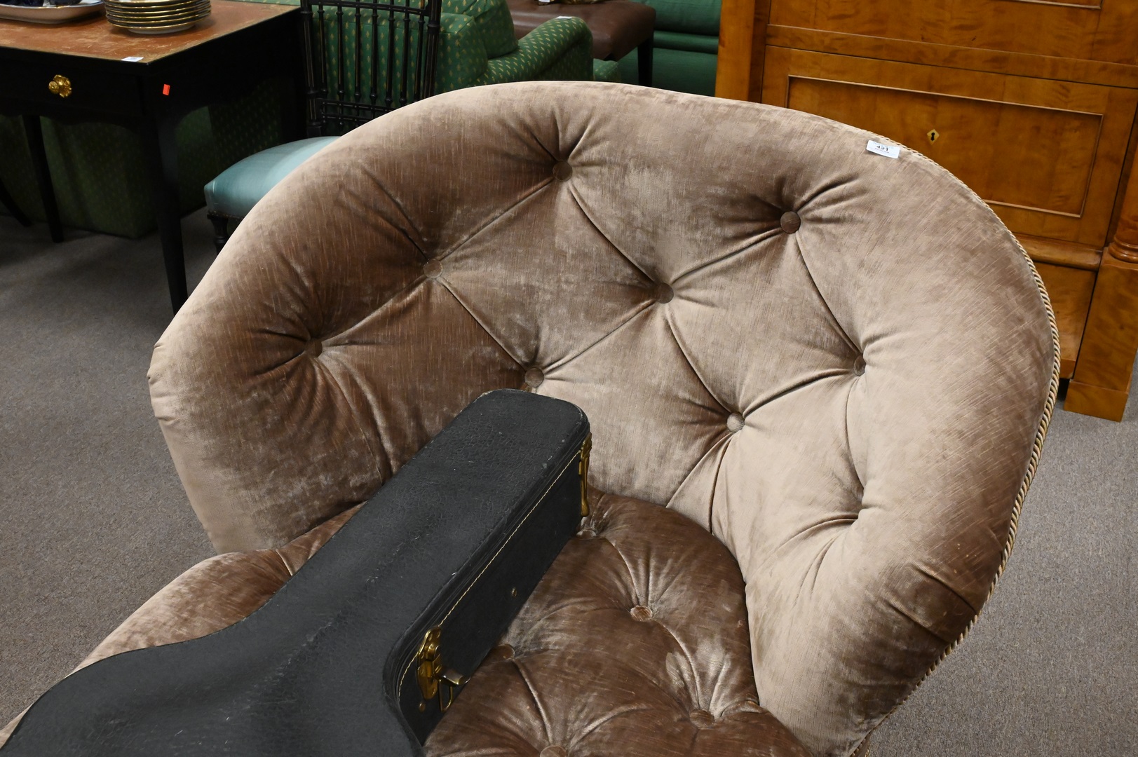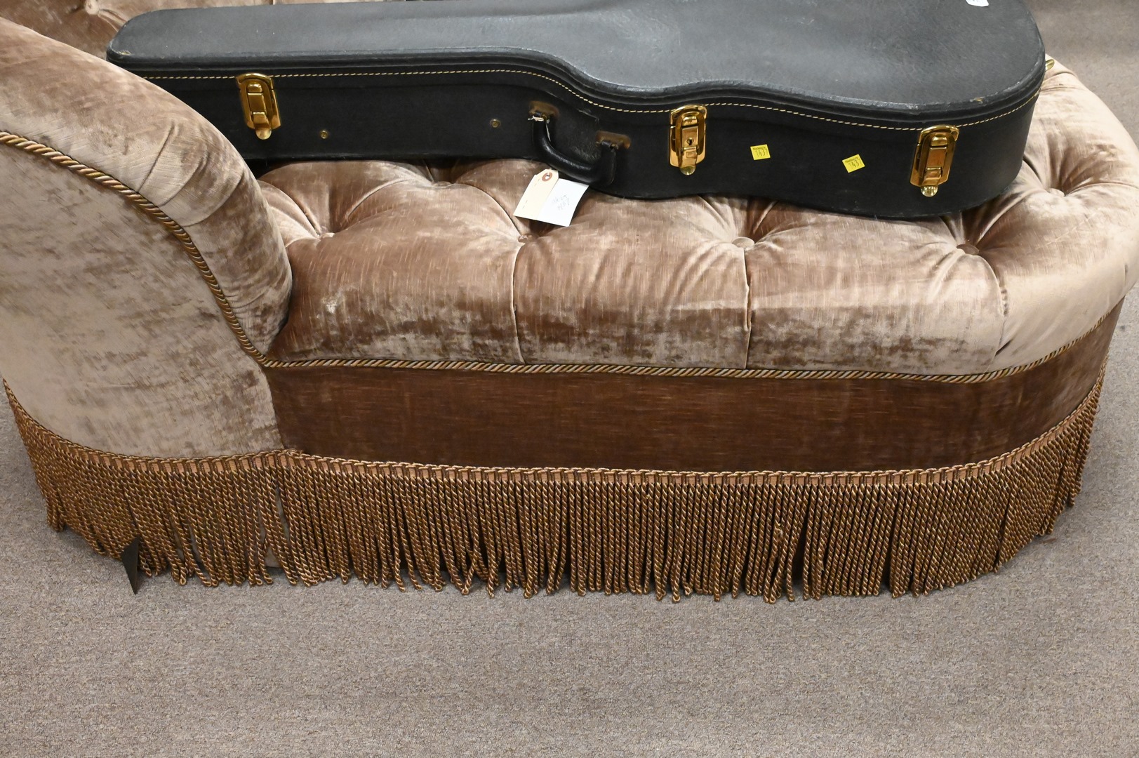 Custom Upholstered Chaise Lounge, having tufted cut velvet upholstery, height 36 inches, width 39 inches, length 64 inches.