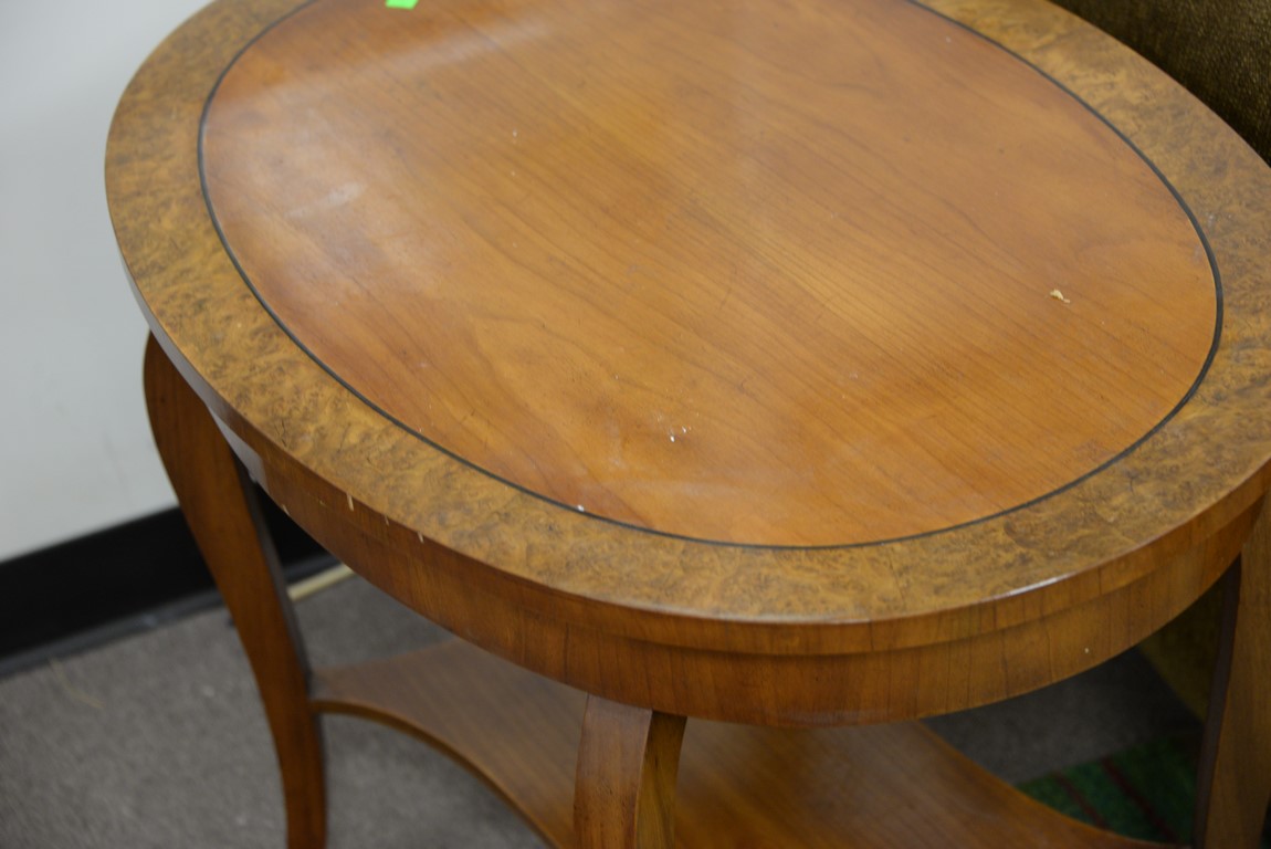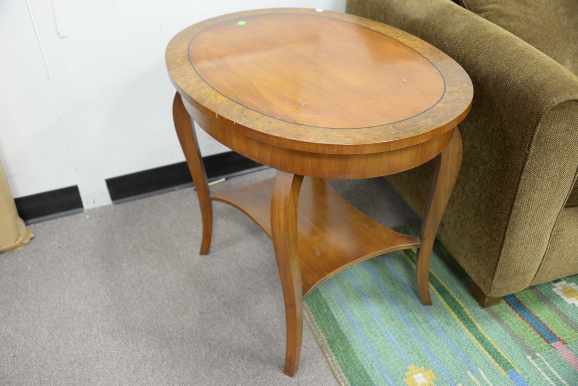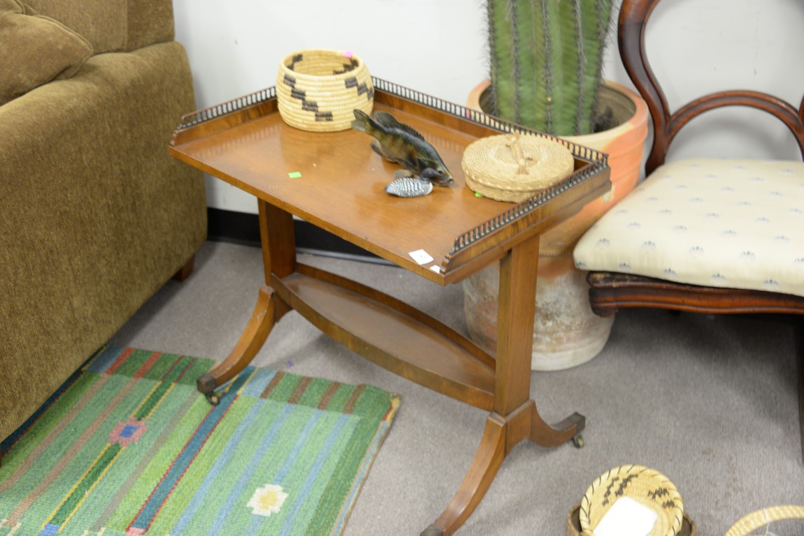 Two tables, one with gallery. ht. 27 in. top: 28 x 17 1/2 and ht. 25 1/2 in. top: 30 x 22