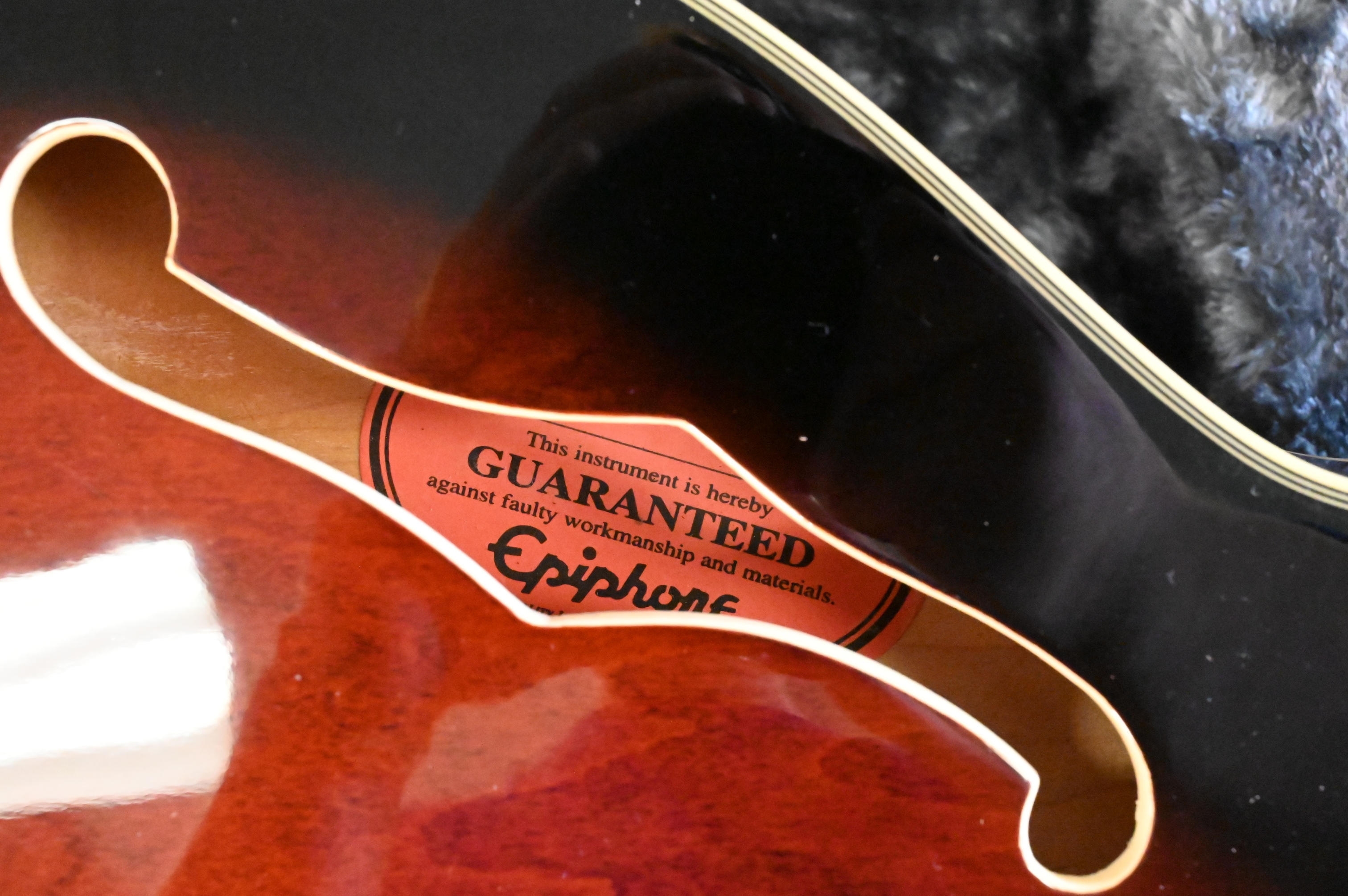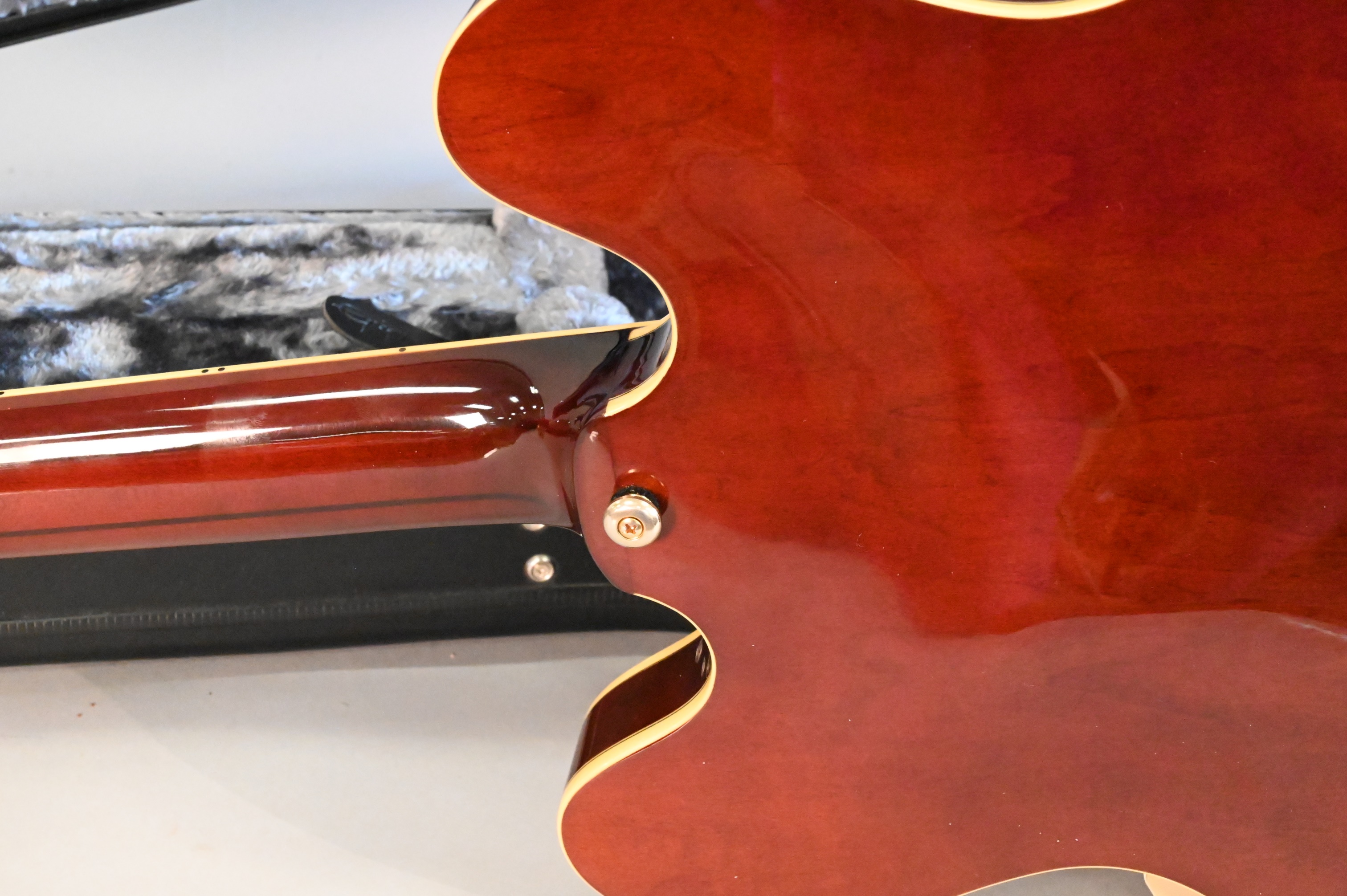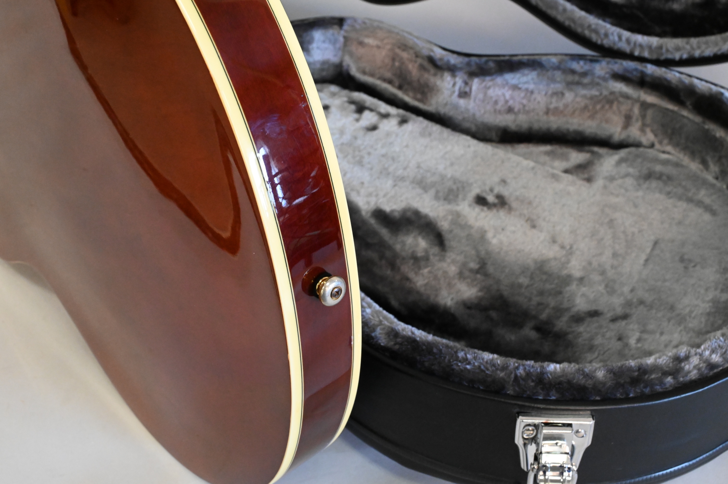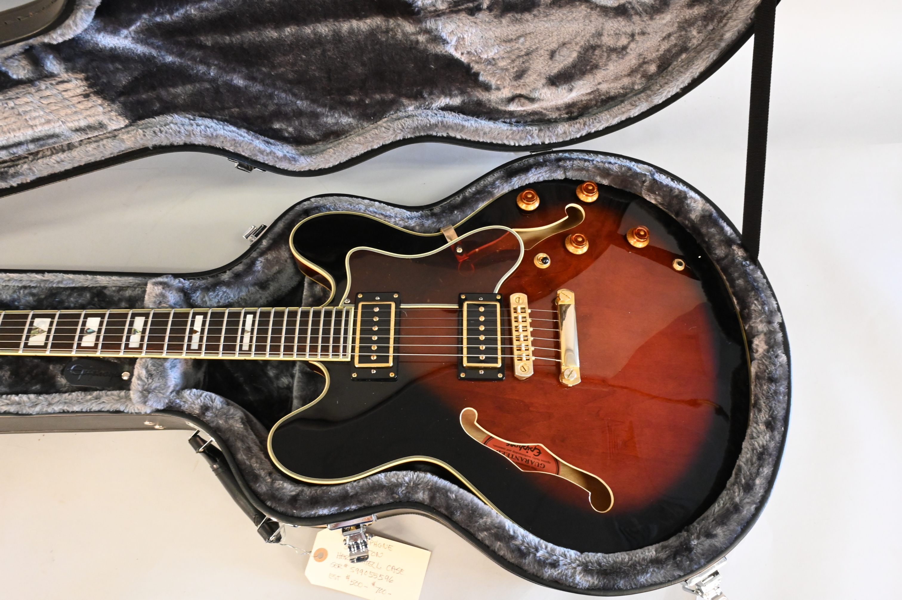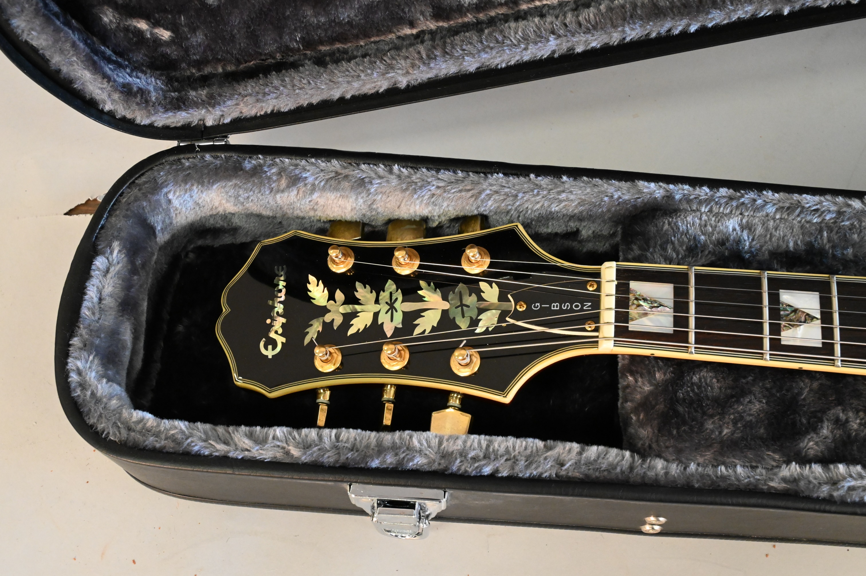 1999 Epiphone Sheraton Guitar, serial #S99055596, with mother of pearl inlay and hard case.