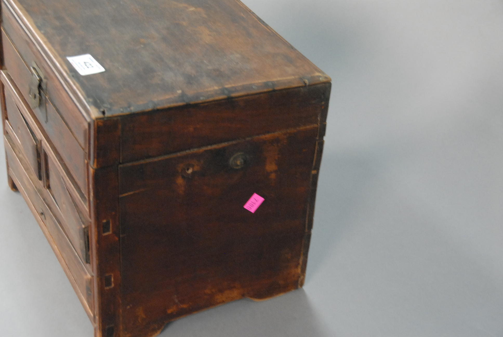 Chinese box with lift top and two over one drawer, 18th – 19th century. ht. 12in. wd. 14in.