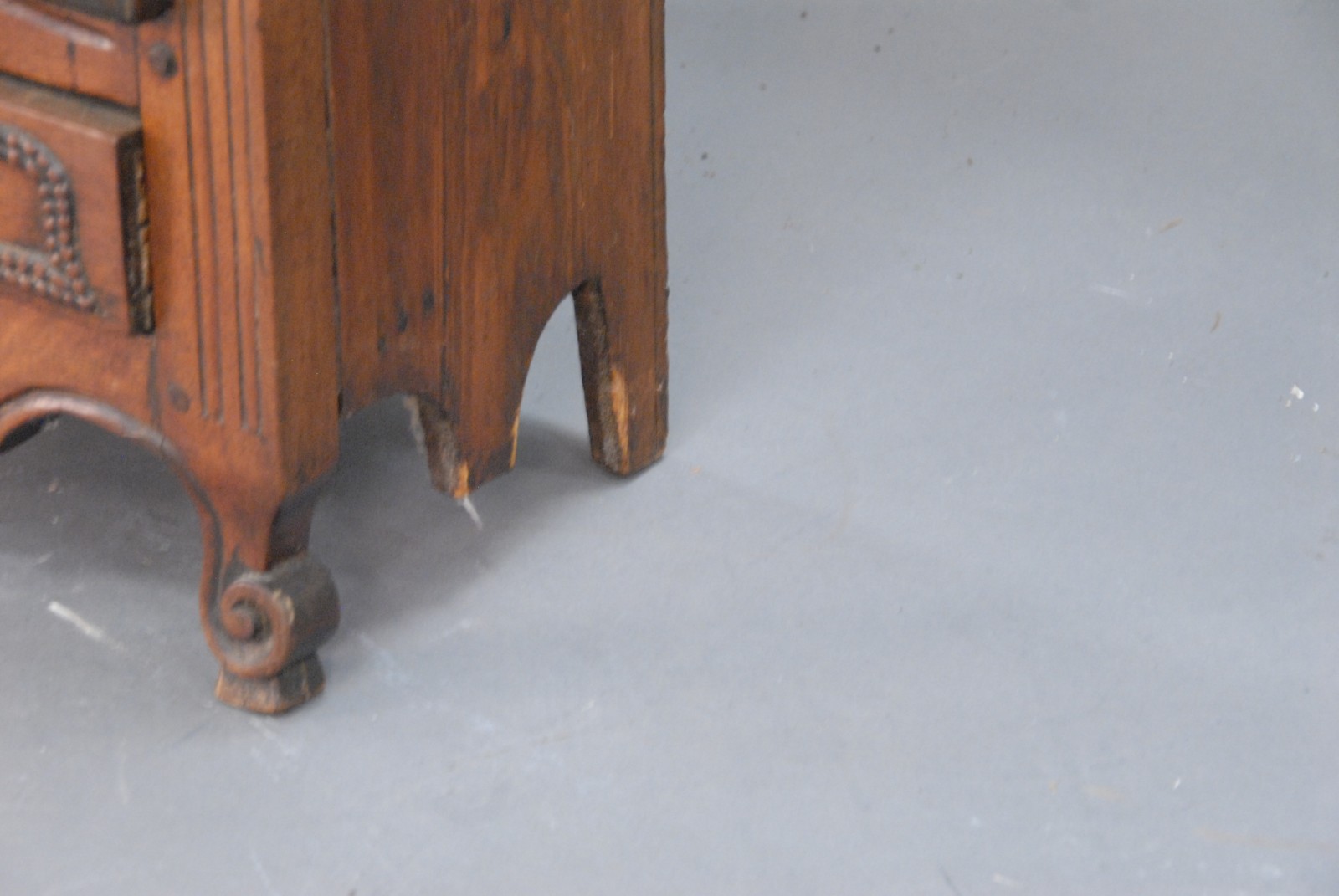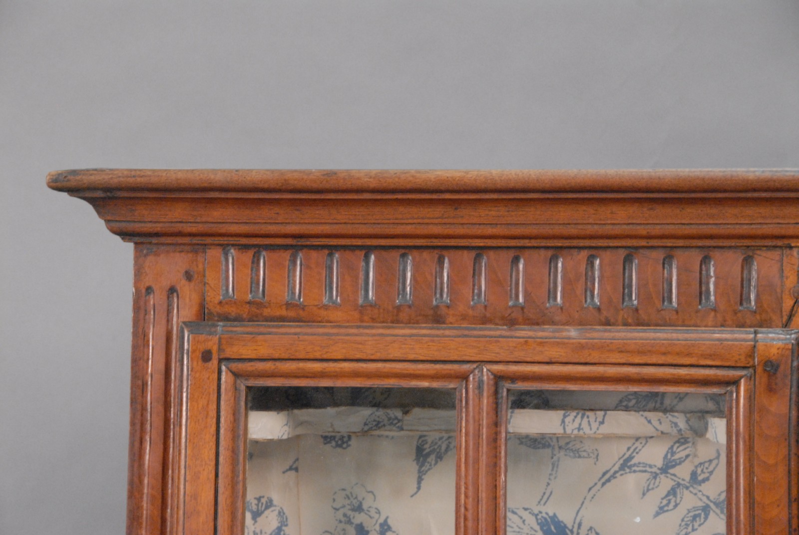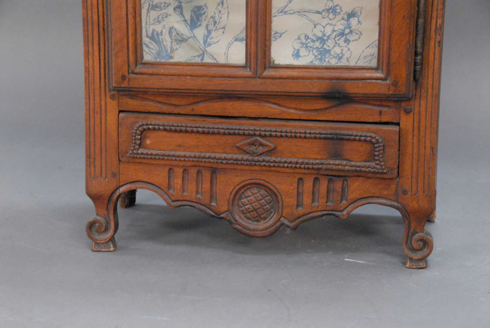 Diminutive Louis XV walnut curio cabinet with glass door over one drawer on cabriole legs 18th century.