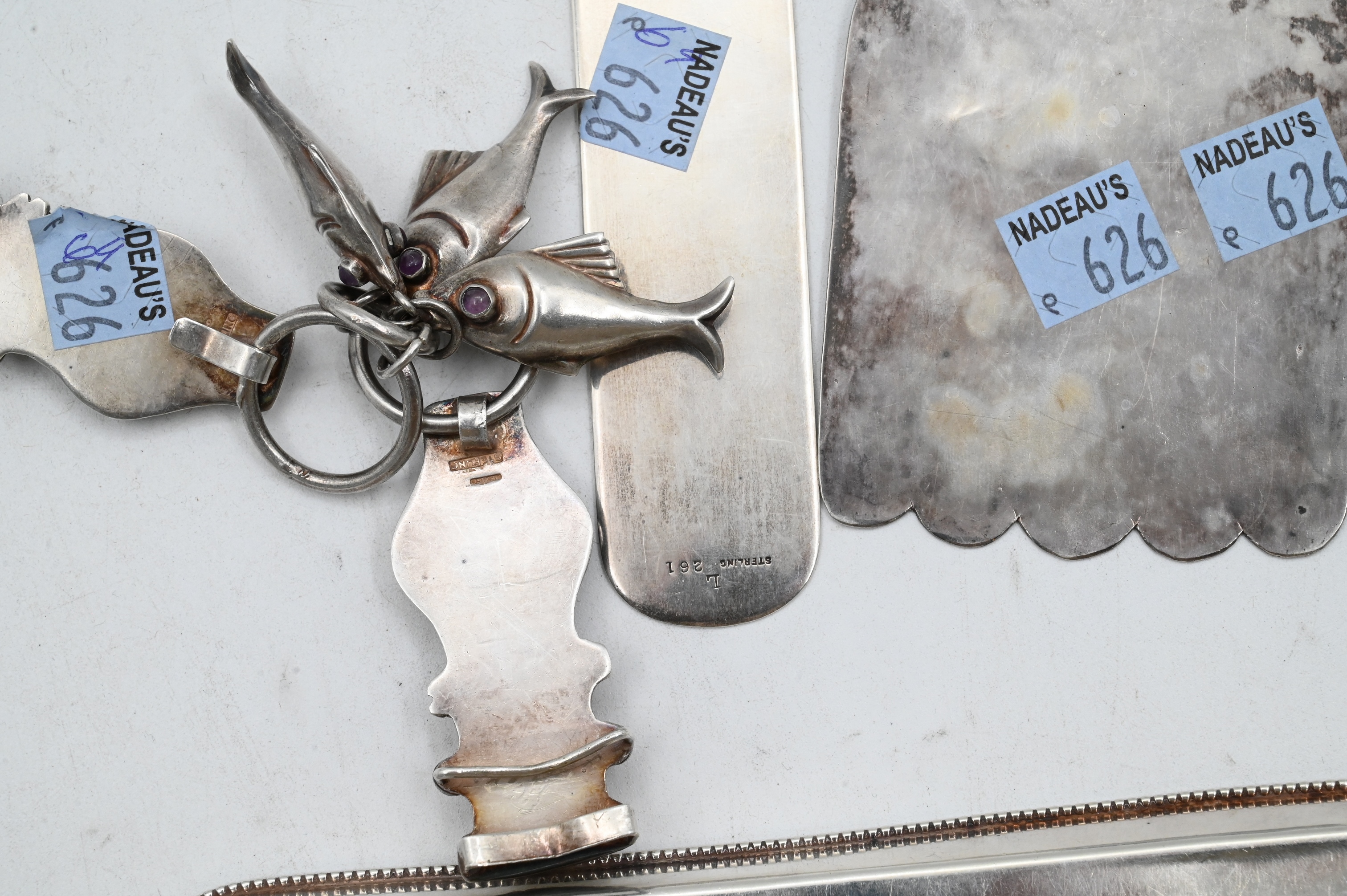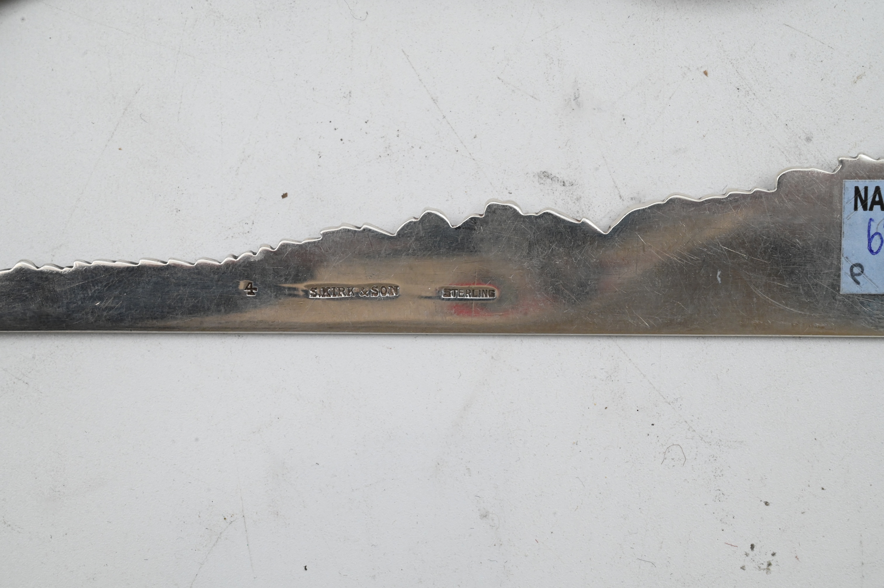 to include S. Kirk and Son, page turner, small oval tray, necklace with lizard, key chain, and serving piece with strawberry